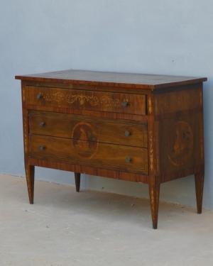 • Comò cassettone tre cassetti st.Luigi XVI intarsiato, primi ‘900 – L108,5 cm!