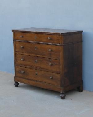 • Comò cassettone scantonato in legno massello di noce, fine ‘800 – L 110 cm!