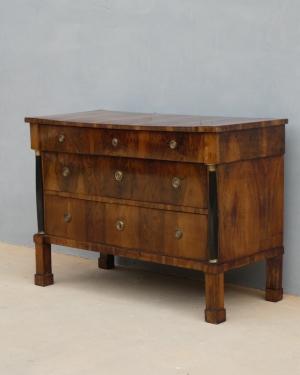 • Comò cassettone Impero ‘mezza colonna’ italiano, lastronato in noce, ‘800!