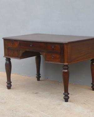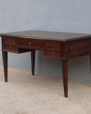 • Scrittoio scrivania 5 cassetti st.Luigi XVI in noce, ‘900 – L 141,5 x P 76 cm!