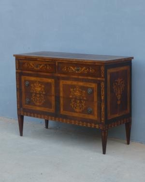 • Comò cassettone st.Luigi XVI intarsiato, ‘900 – L 120,5 cm!