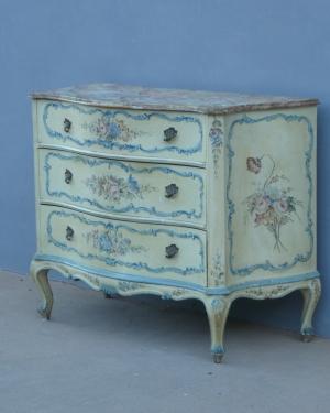 • Comò cassettone tre cassetti laccato e dipinto, ‘900 – L 116,5 cm!
