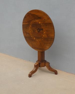 • Tavolino tavolo tondo a vela in palissandro intarsiato, ‘800 – diam.72,5 cm!
