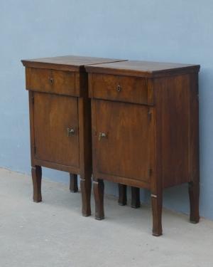 • Coppia di comodini mobiletti lastronati in noce, prima metà ‘800!