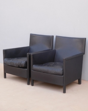 • Coppia di poltrone in ecopelle con cuscino amovibile, anni ’80!