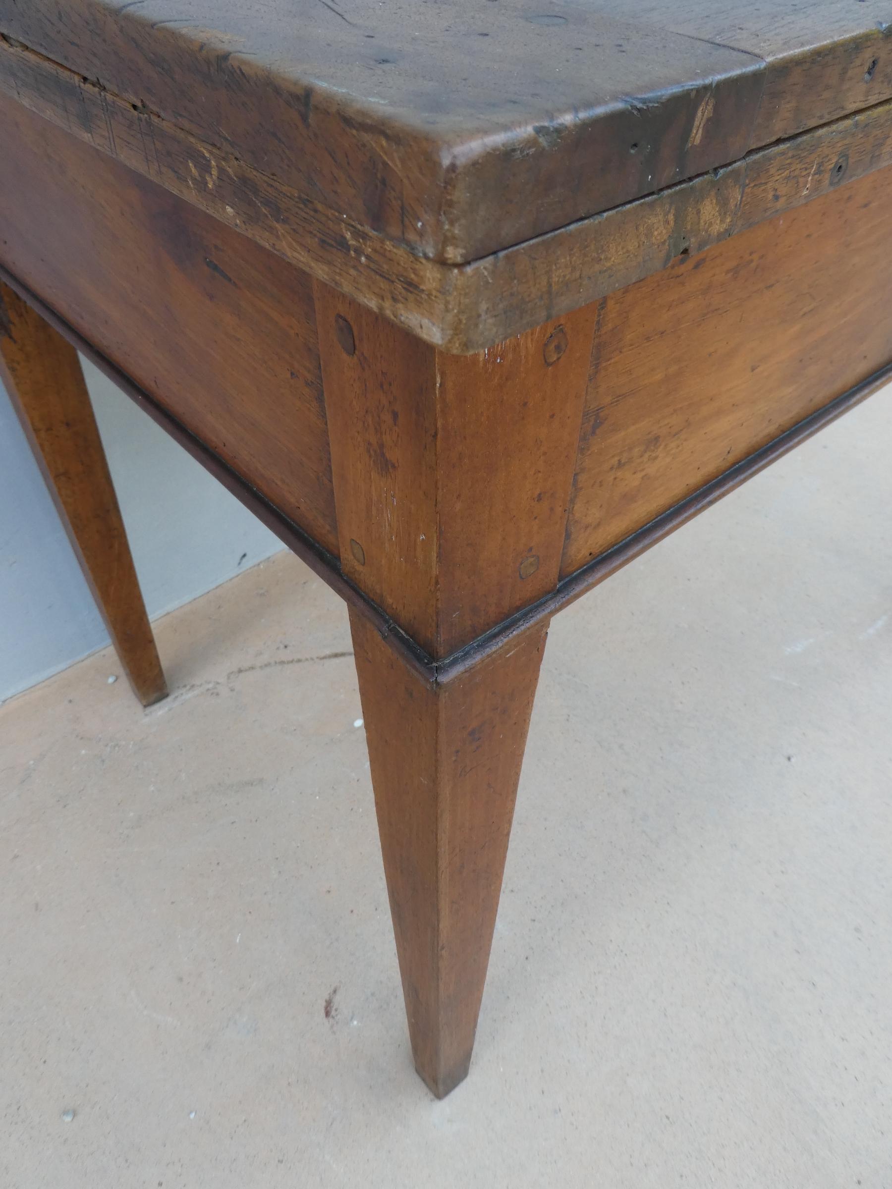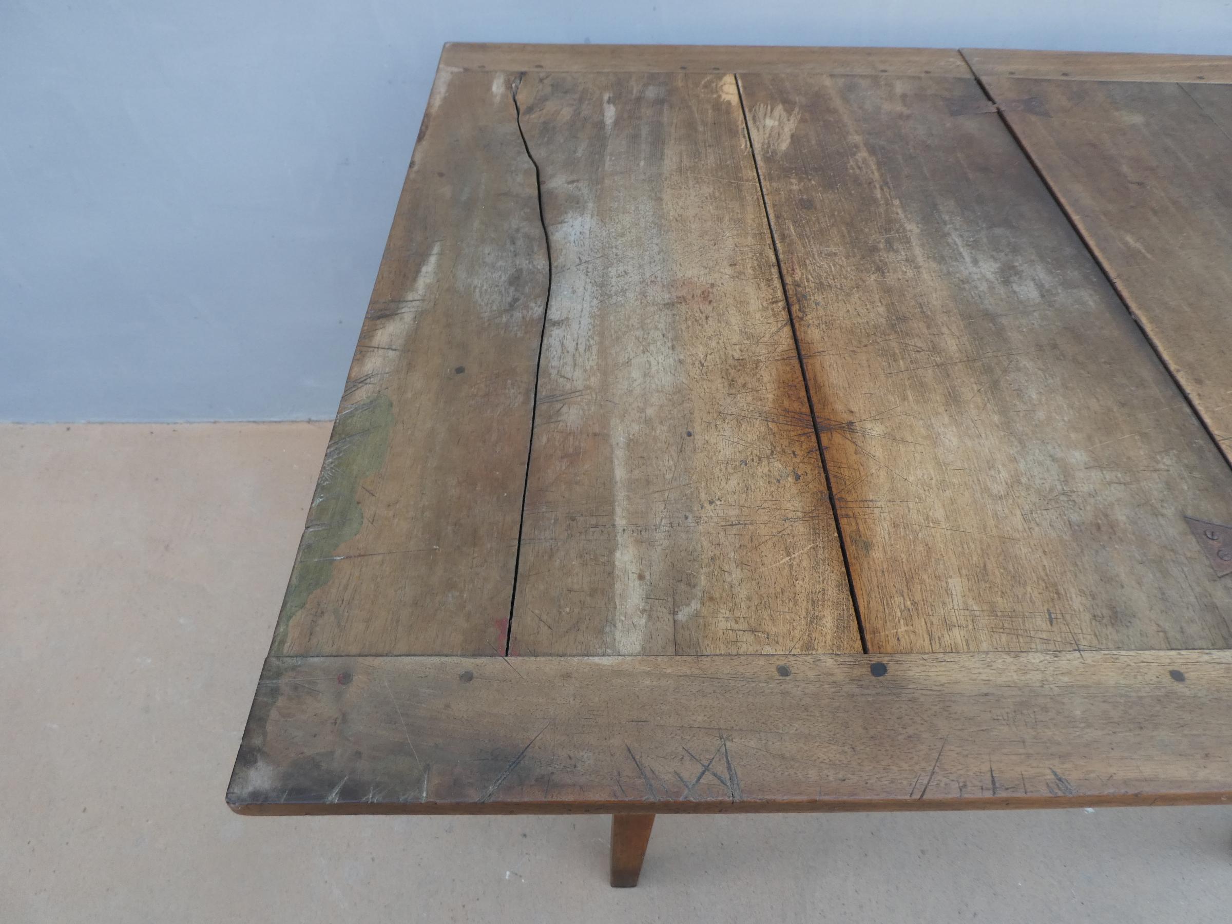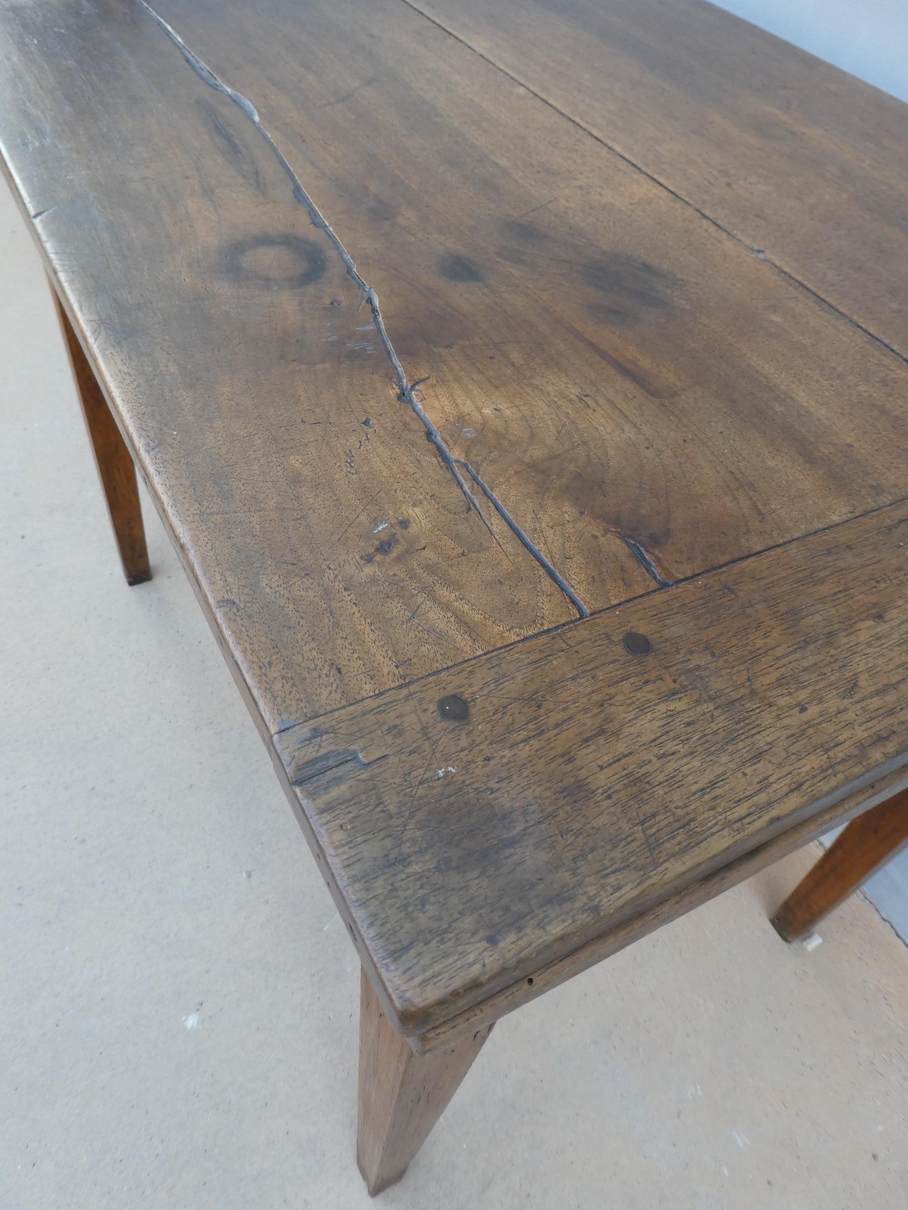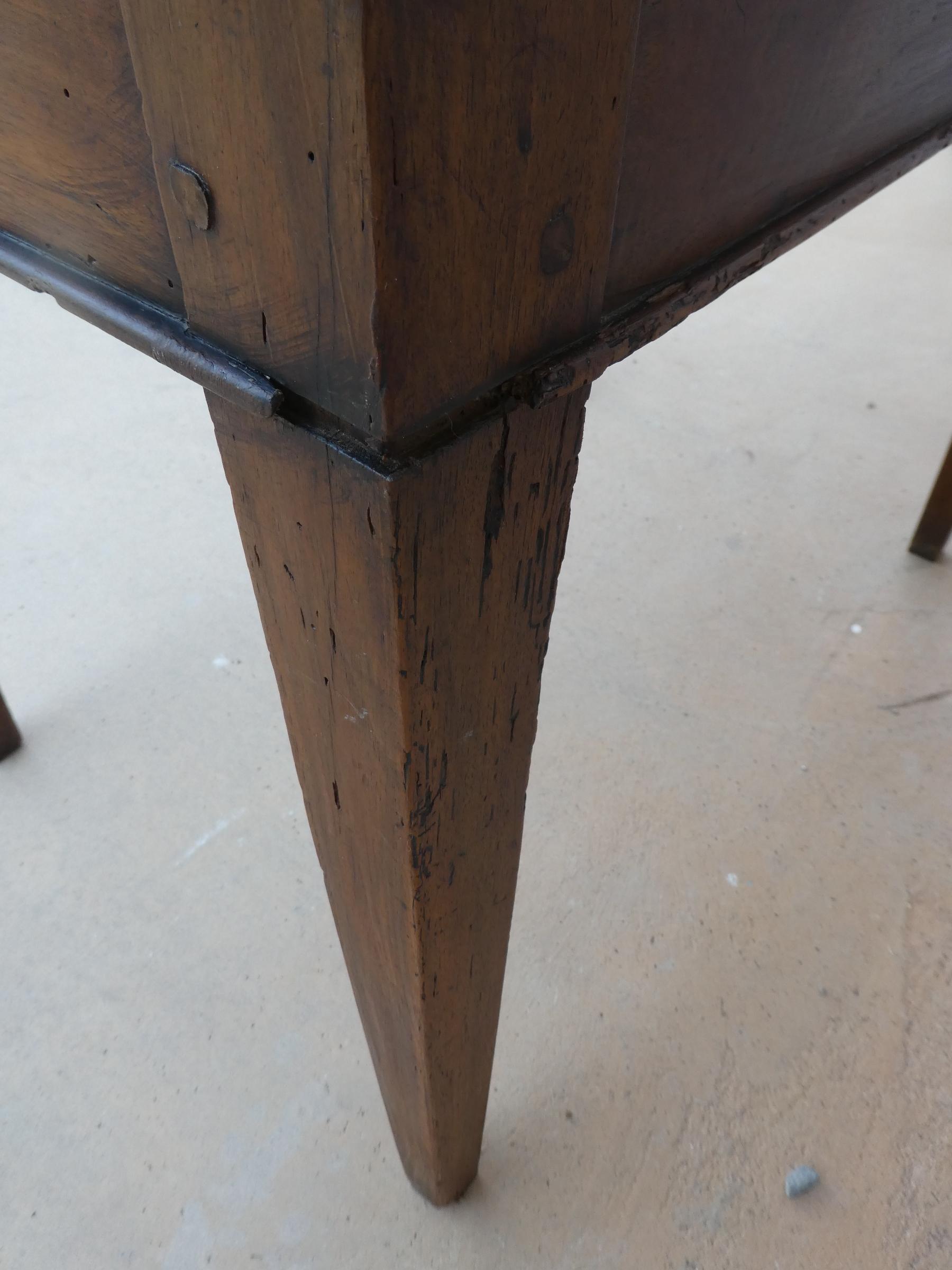 Tavolo tavolino st.Luigi XVI rettangolare doppio con apertura a libro, realizzato in noce massello ed appartenente d’epoca all’800. Il mobile è studiato in modo tale che, ruotando la plancia (vedi foto), e aprendola fino a farla appoggiare alla base sottostante, si allunghi raddoppiando in larghezza la superficie d’appoggio. Necessita di alcuni interventi di restauro – sono presenti fori di tarlo.
