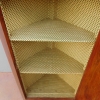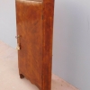Angoliera mobile ad angolo ad un’anta lastronata in mogano, appartenente d’epoca alla fine dell’800. La struttura si presenta semplice ed armoniosa, e vanta proporzioni sapientemente equilibrate. La ricerca di un contraddistinto decoro si rispecchia principalmente sulla scelta d’impreziosire il corpo delicati filetti che spiccano contrastanti sulla raffinata superficie d’appoggio. All’interno ha due ripiani. Necessita di leggeri interventi di restauro.