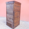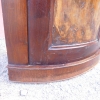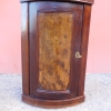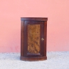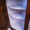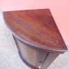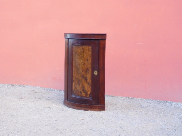 Angoliera mobile ad angolo ad un’anta, particolari dimensioni, mogano, francese. La semplice struttura conferisce una sobria eleganza. La ricerca di un decoro essenziale si riflette anche sulla scelta dei montanti, privi di elementi decorativi. All’interno ha due ripiani. Necessita di alcuni interventi di restauro. Epoca fine ‘800.
