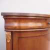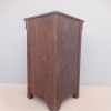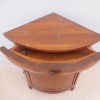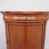 Angoliera mobile ad angolo stile Impero realizzata in noce e dotata di un’antina e un cassetto frontale. La semplice struttura conferisce una sobria eleganza. La ricerca di un decoro mirato si riflette anche sulla scelta dei montanti, arricchiti solamente con leggeri intagli all’estremità superiore. All’interno dispone di un ripiano. Necessita di piccoli interventi di restauro. Epoca metà ‘900.