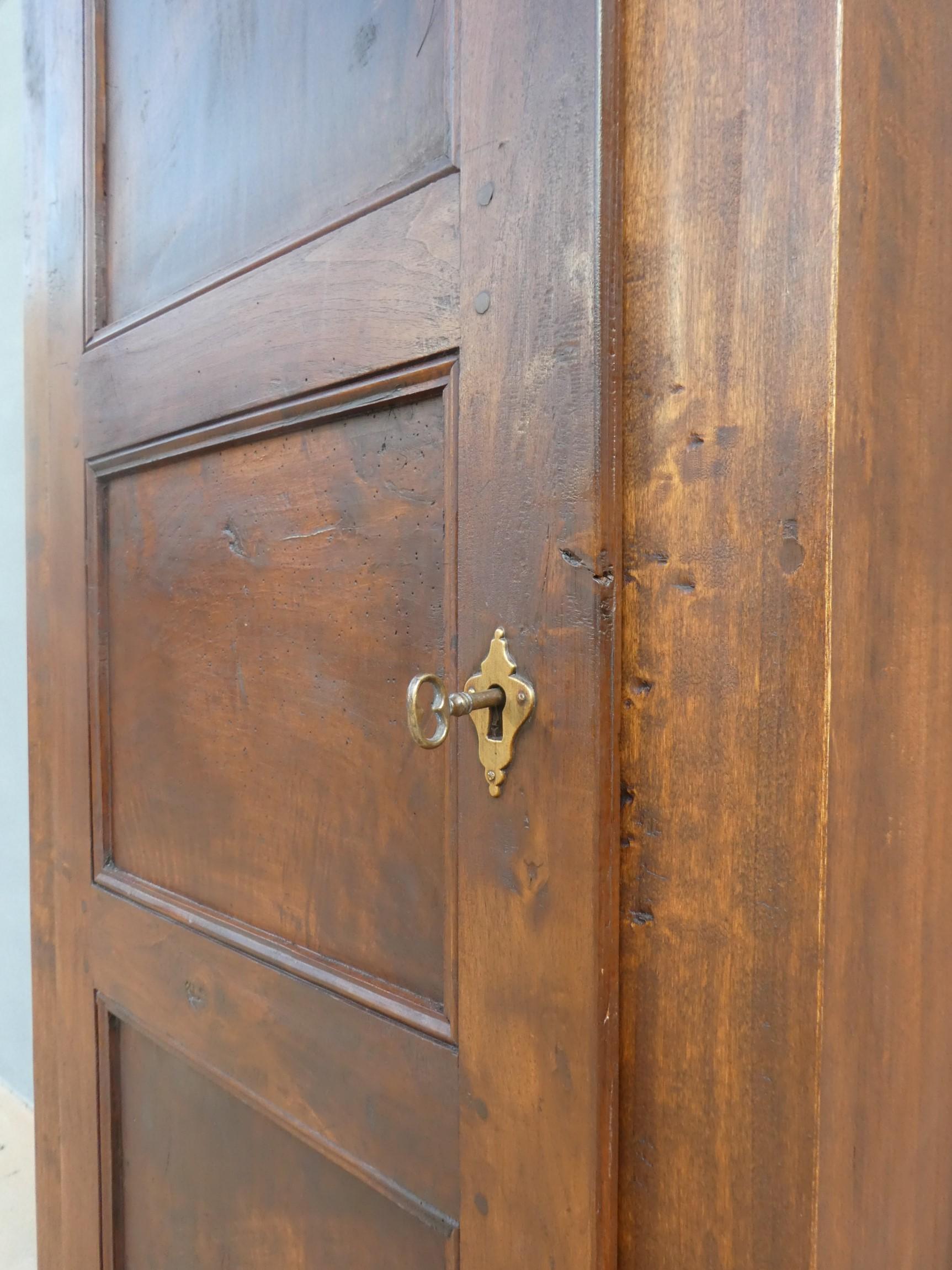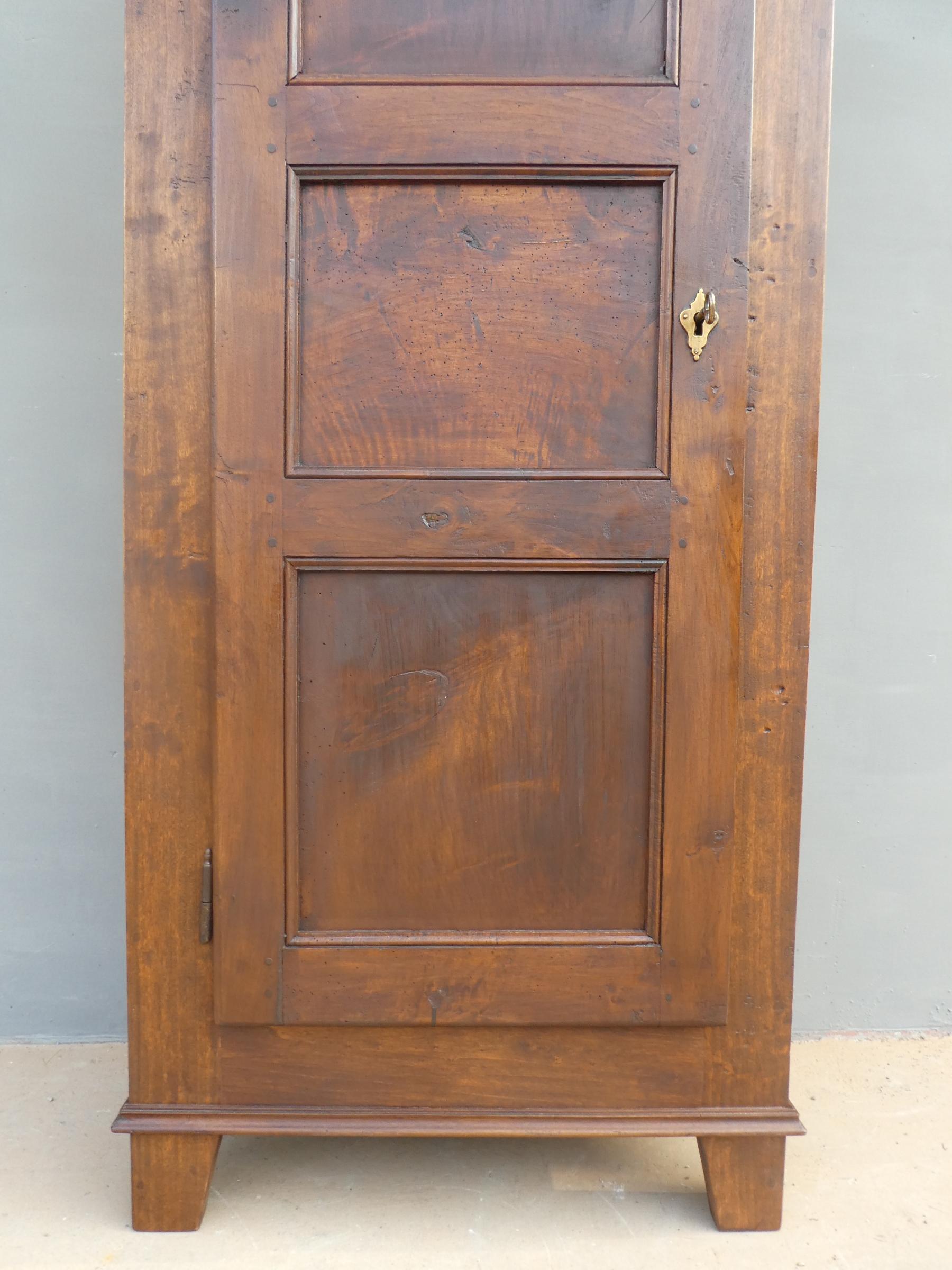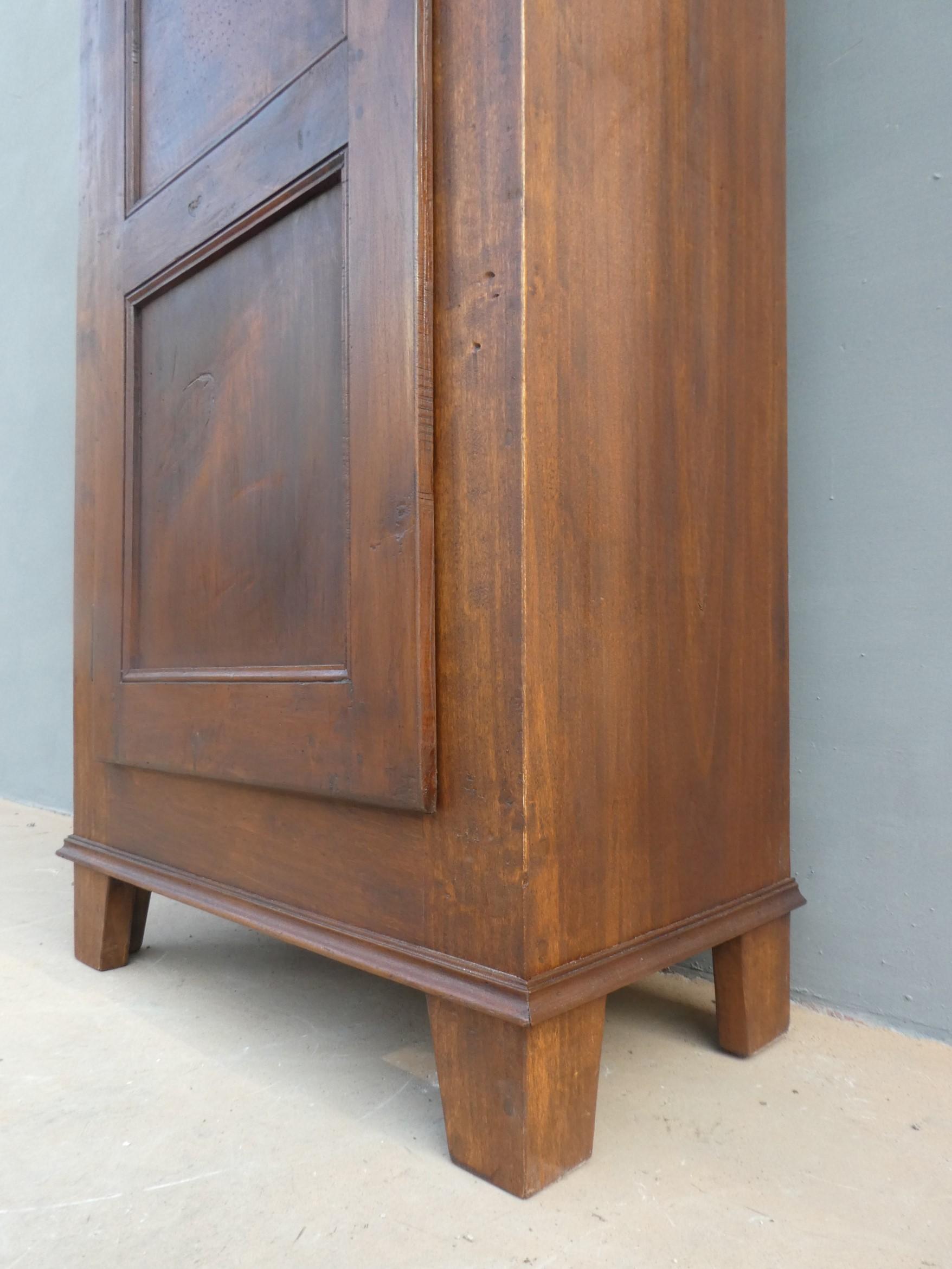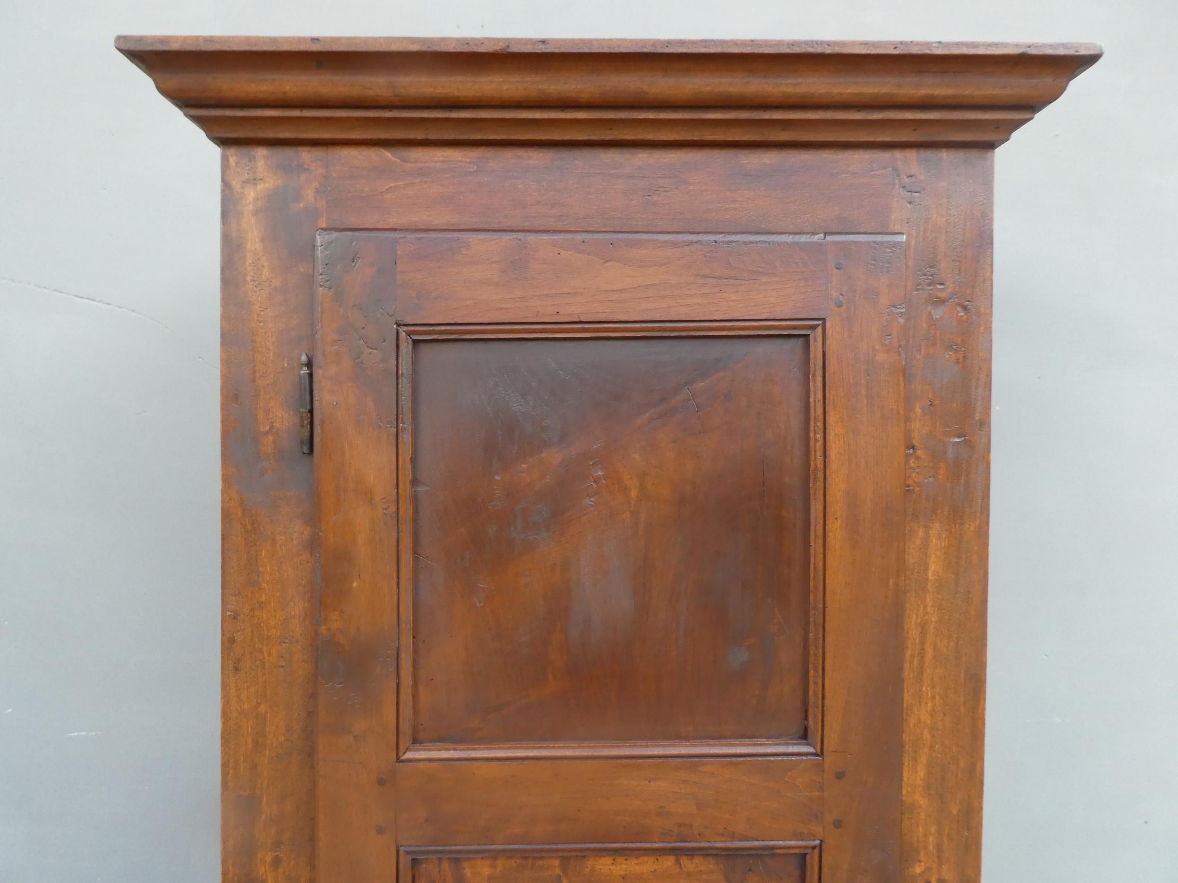 Armadio bonnetiere stipo colonna ad un’anta, realizzato in legno e dotato di due ripiani interni. Il mobile si presenta semplice e lineare, e vanta proporzioni sapientemente equilibrate. La ricerca di un decoro essenziale si riflette anche sulla scelta dei montanti, privi di elementi decorativi. Recente ricostruzione con legno vecchio e nuovo, sono presenti alcuni fori di tarlo.