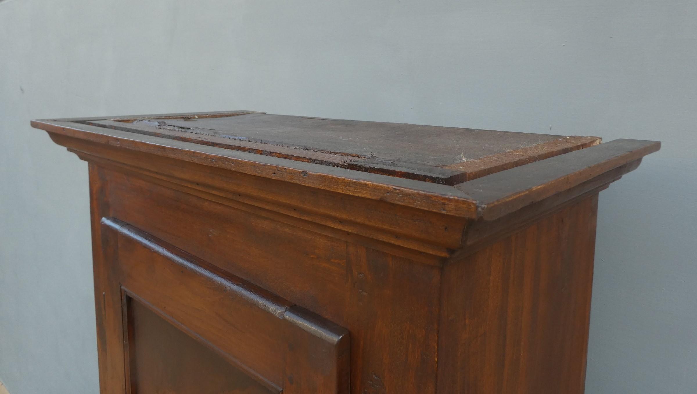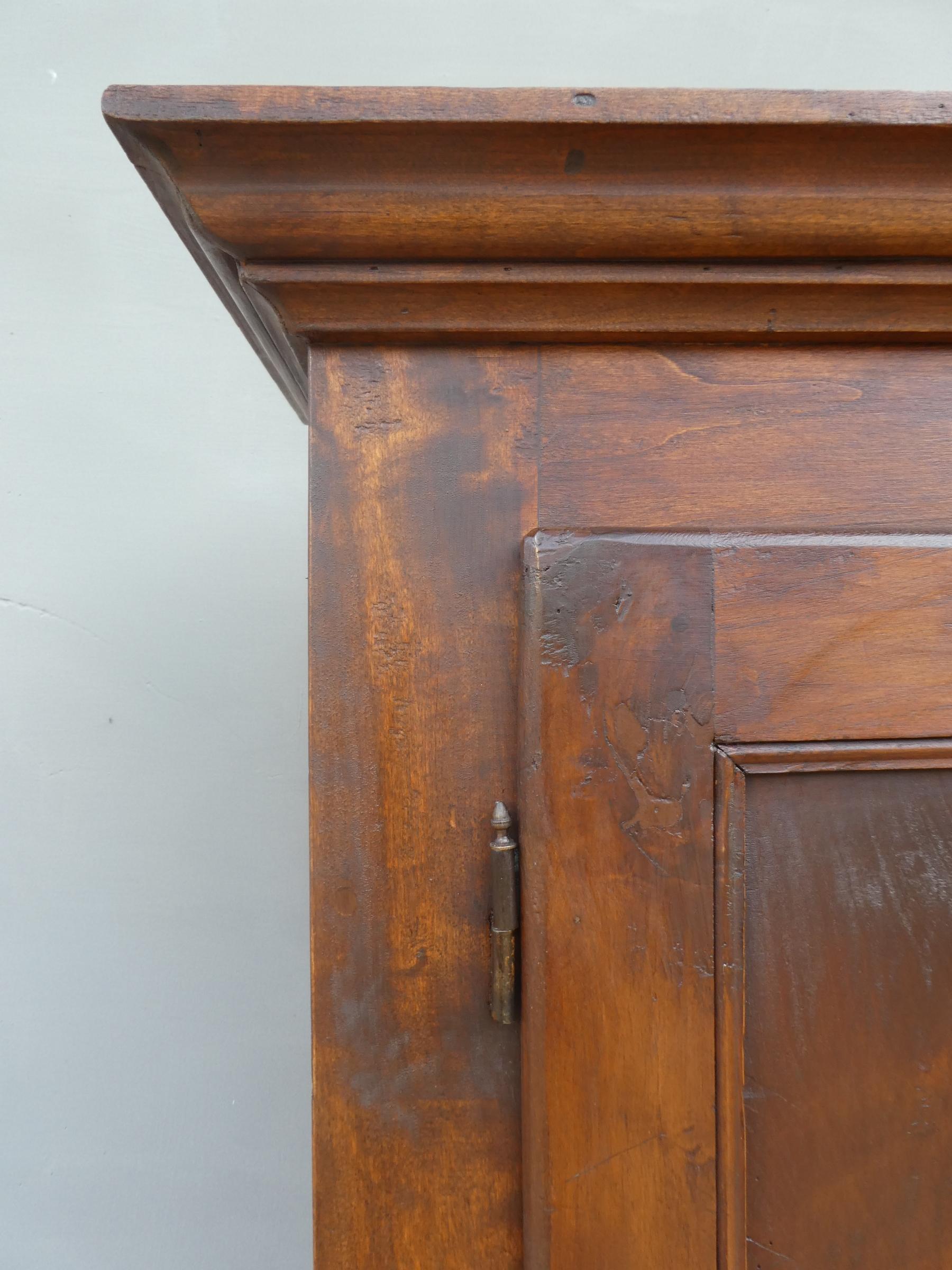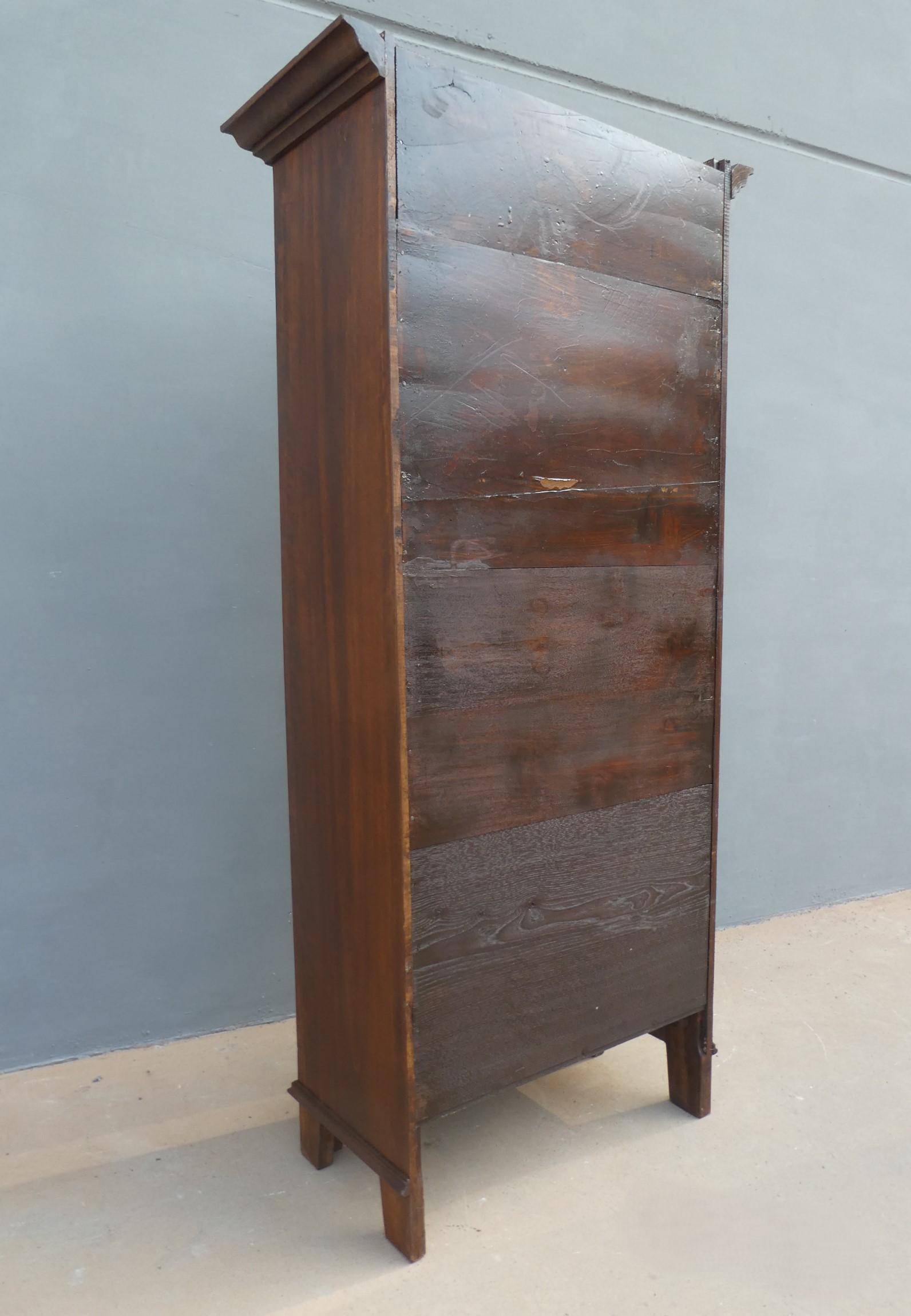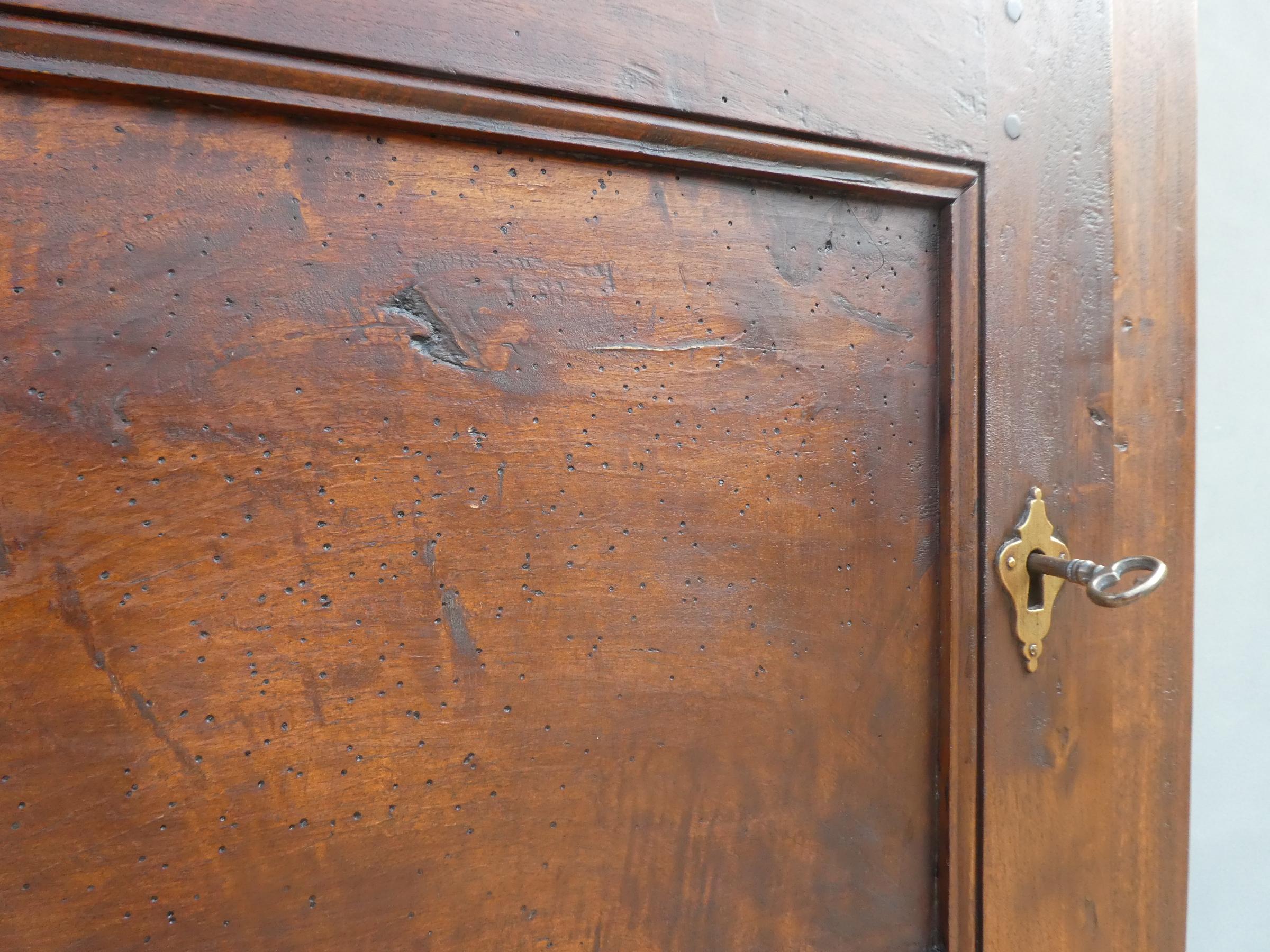 Armadio bonnetiere stipo colonna ad un’anta, realizzato in legno e dotato di due ripiani interni. Il mobile si presenta semplice e lineare, e vanta proporzioni sapientemente equilibrate. La ricerca di un decoro essenziale si riflette anche sulla scelta dei montanti, privi di elementi decorativi. Recente ricostruzione con legno vecchio e nuovo, sono presenti alcuni fori di tarlo.