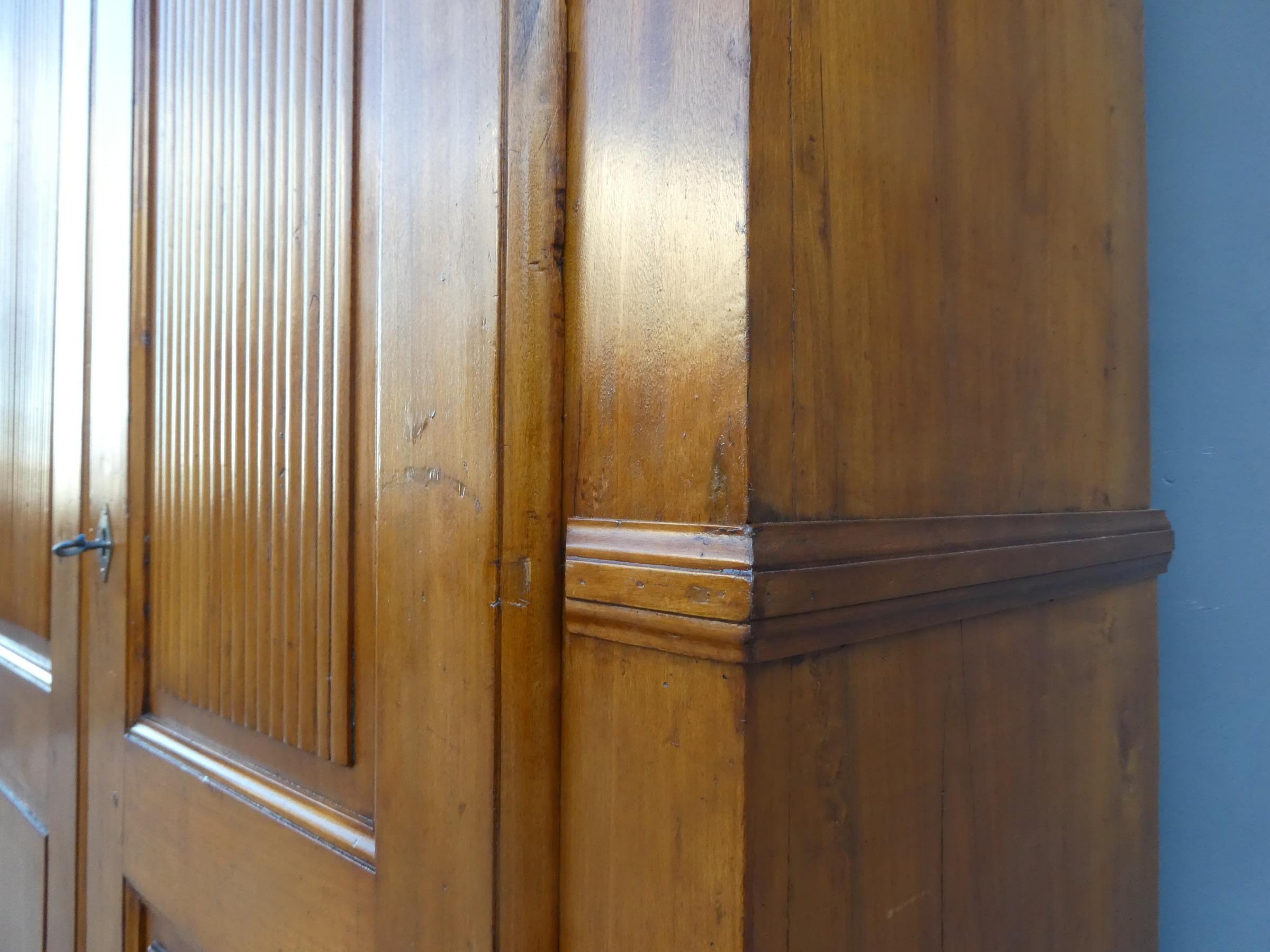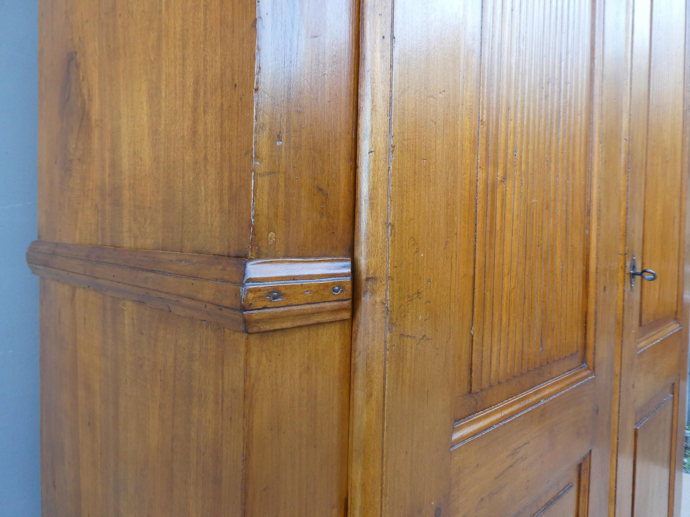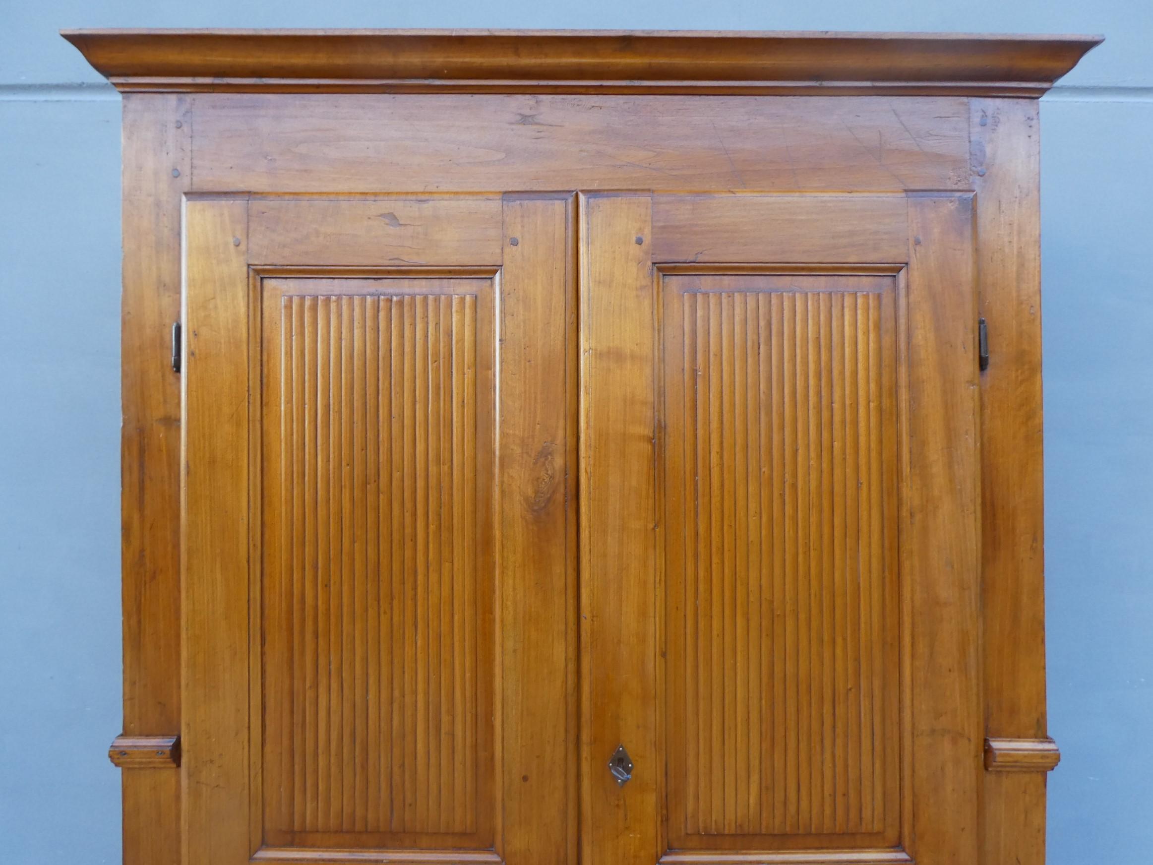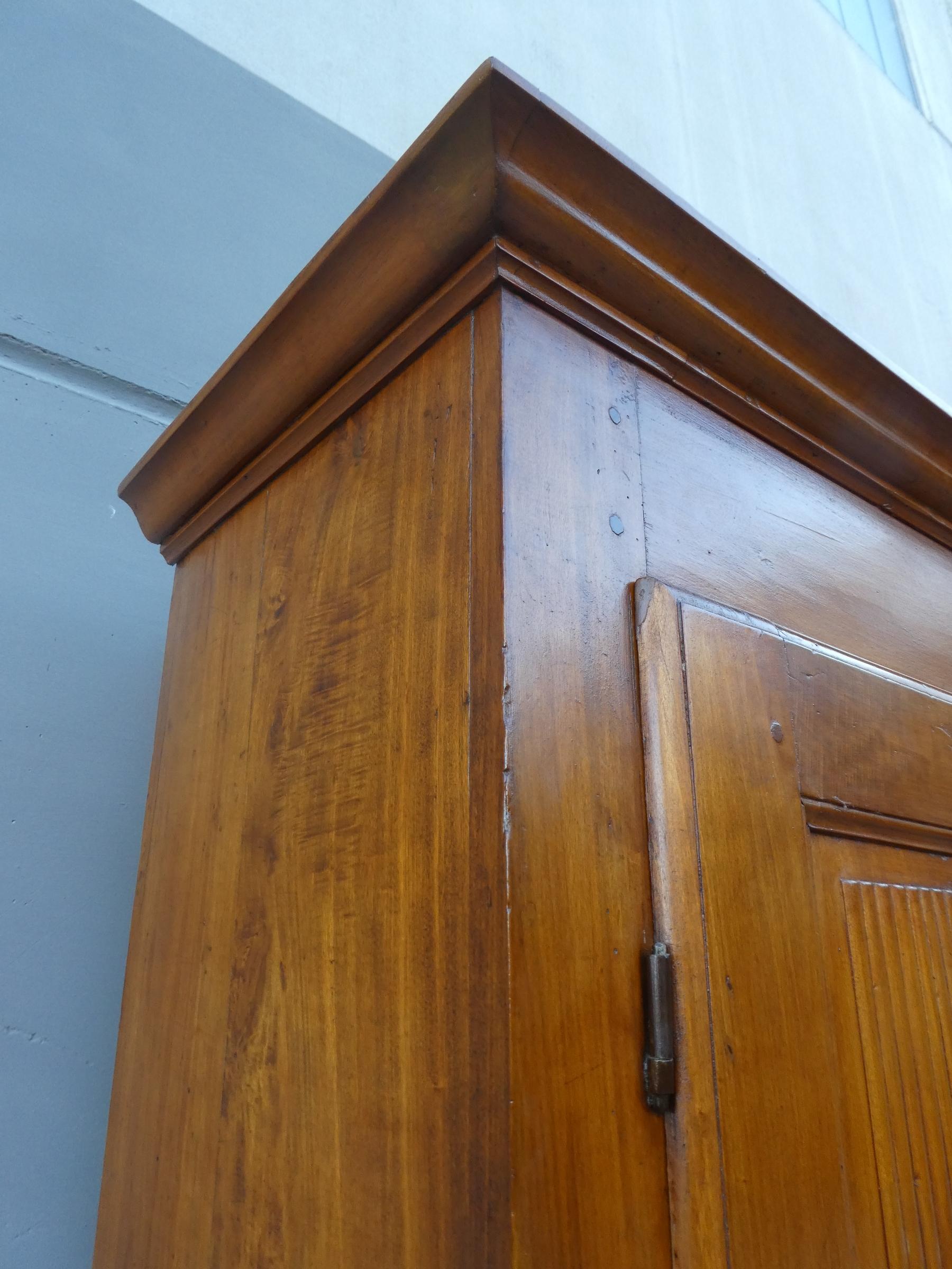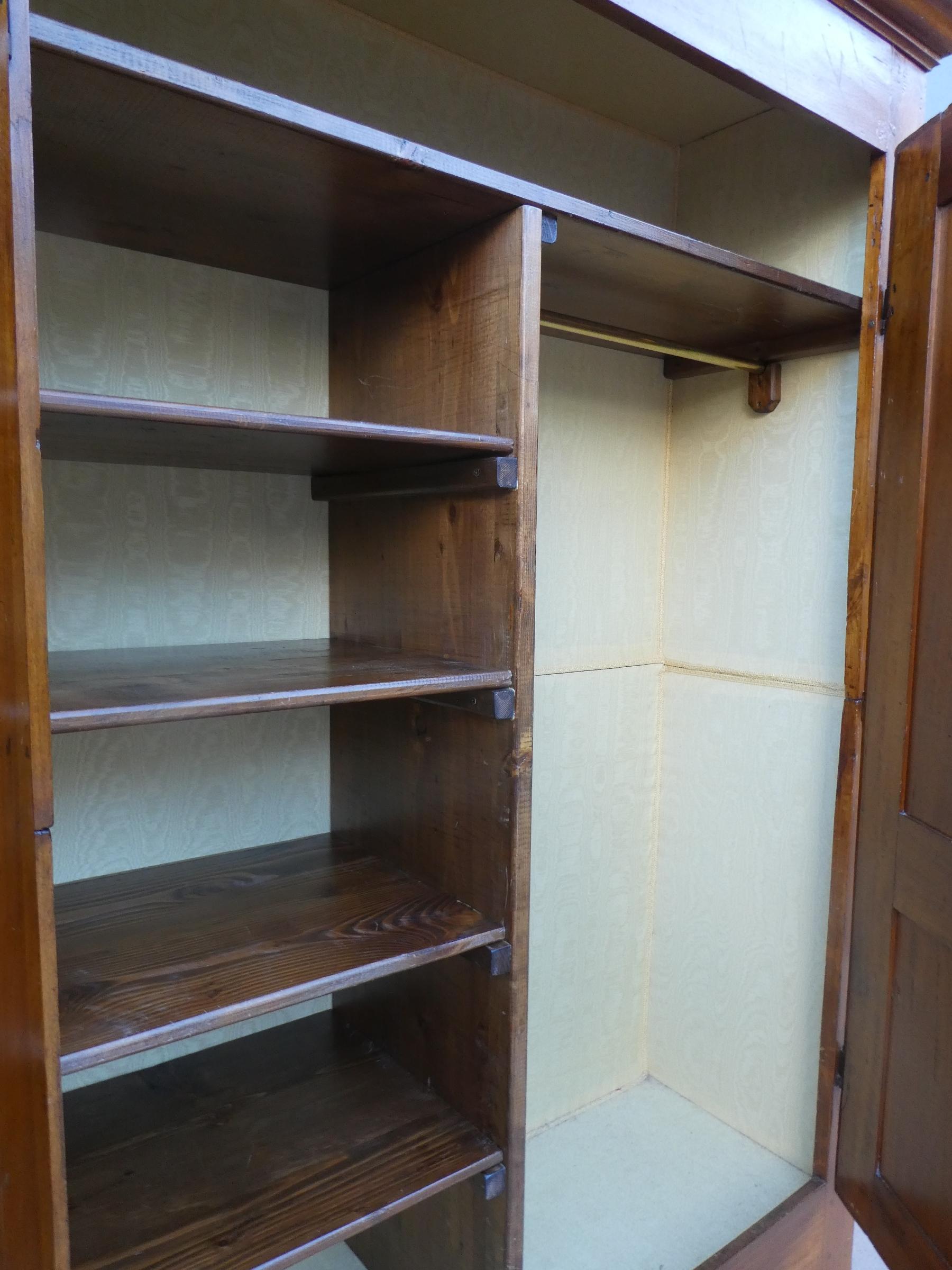 Antico armadio stipo corredato da due ante frontali, realizzato in legno di pioppo ed appartenente d’epoca alla metà dell’ 800. Il mobile si presenta semplice e lineare, e vanta proporzioni armoniose e sapientemente equilibrate. Ciò che lo contraddistingue è indubbiamente la basica lavorazione “grissinata” sui pannelli delle ante, caratteristica dello stile. Dispone di ripiani interni ed una barra appendiabiti laterale. Smontabile in due corpi. Necessita di leggeri interventi di restauro (foto).