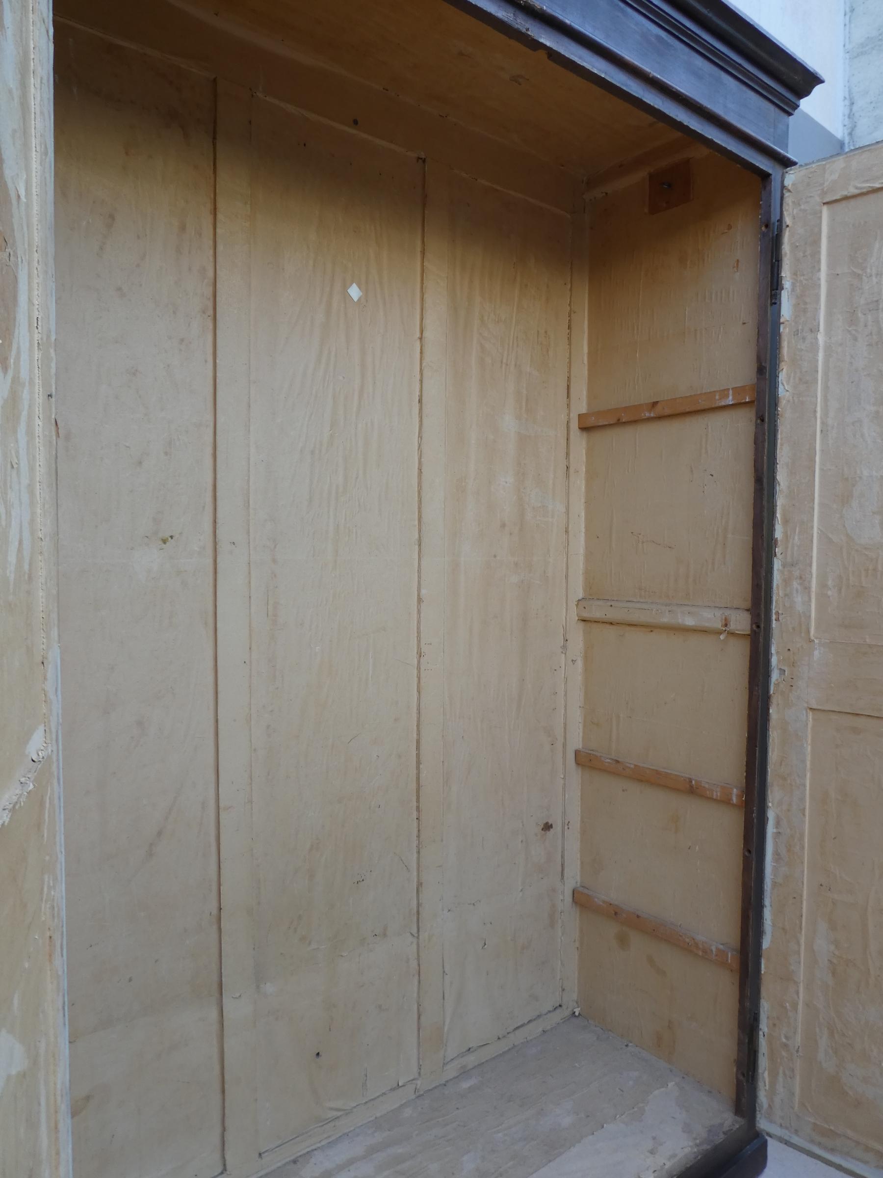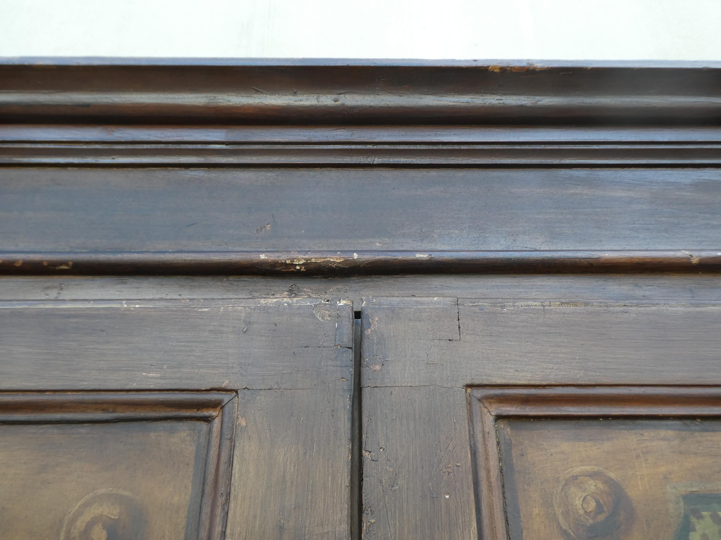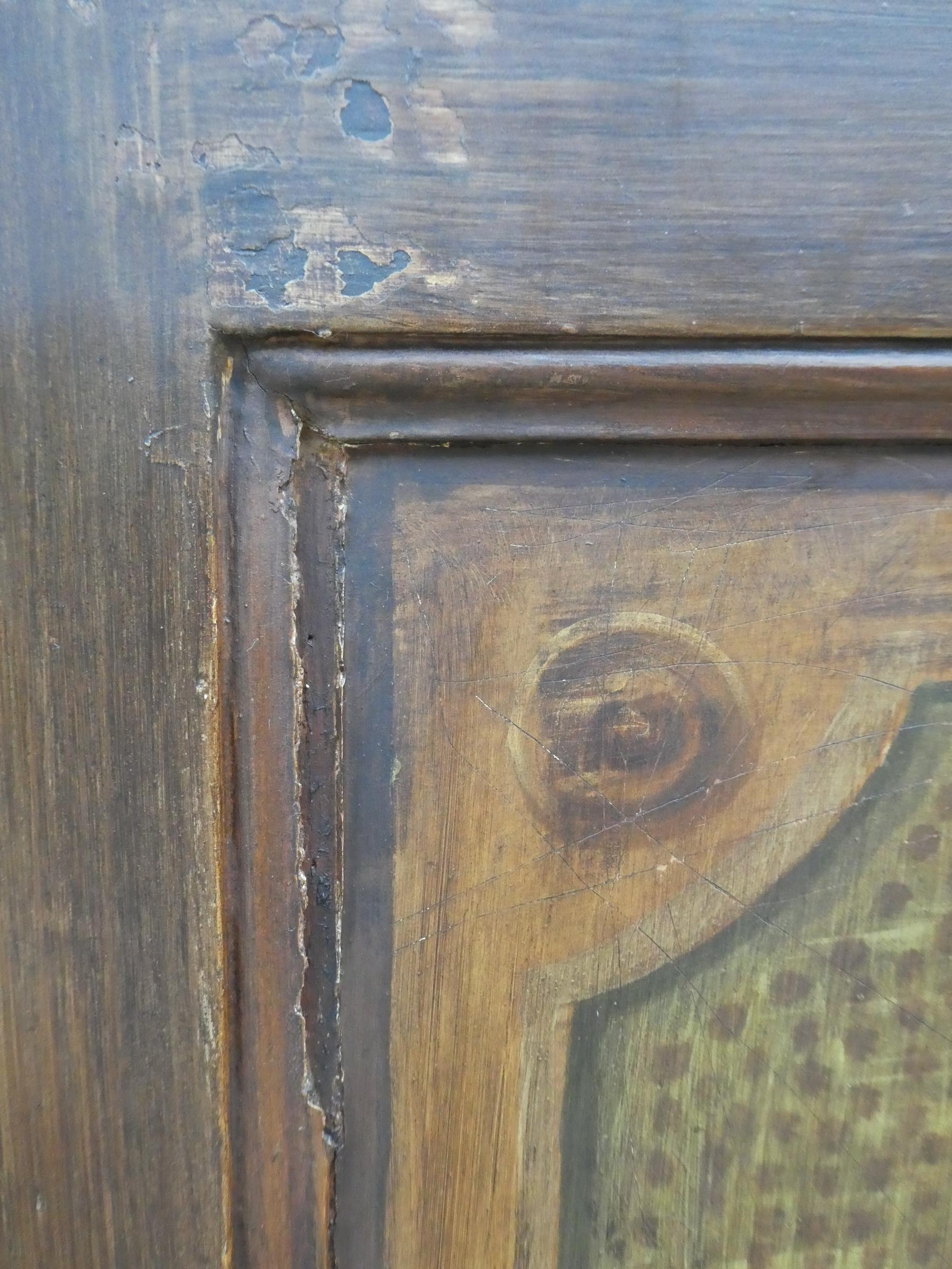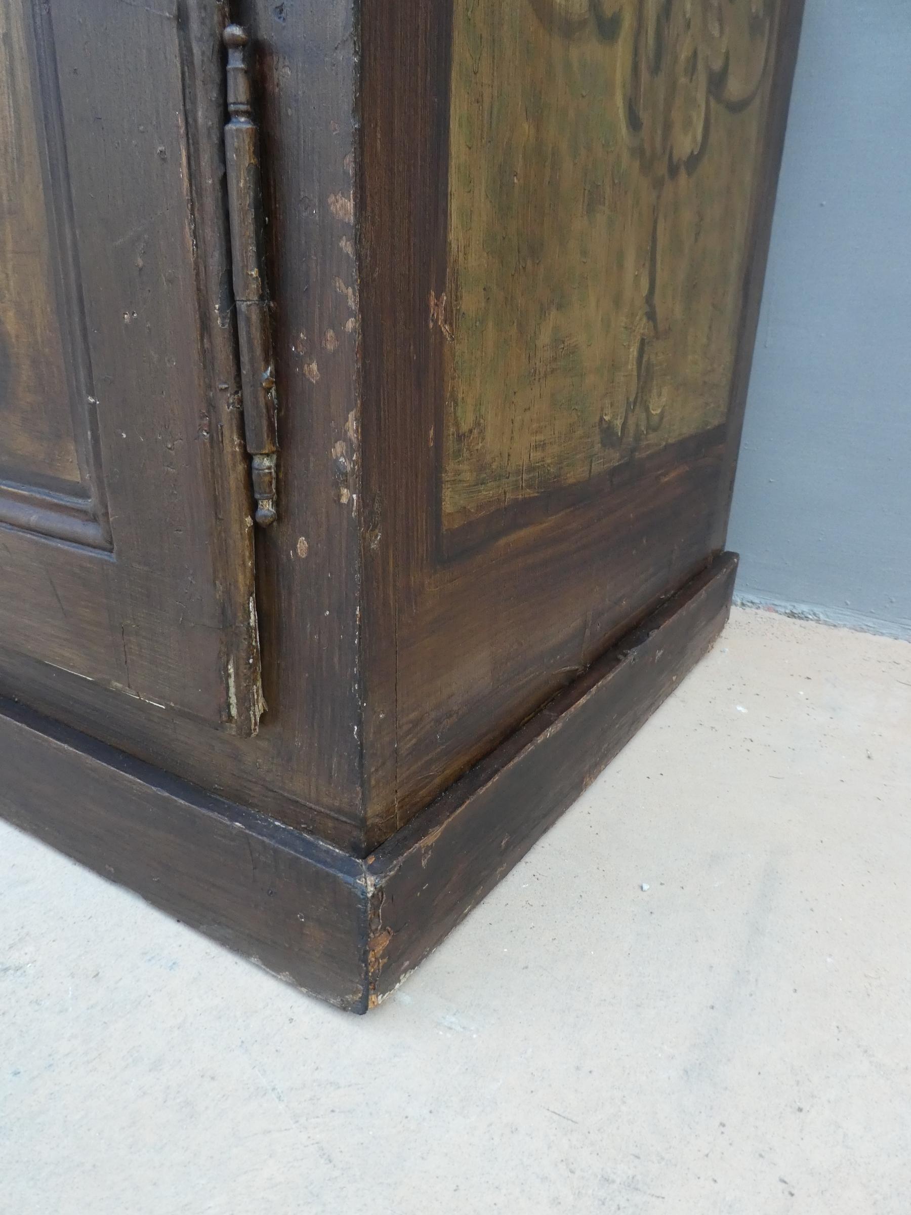 Armadio stipo corredato da due ante frontali ed appartenente d’epoca alla fine dell’800. Semplice ed essenziale nella linea, è arricchito da colorati dipinti che spiccano contrastanti sull’elegante superficie laccata che fa da sfondo. Necessita di qualche interventi di restauro (foto) – non è smontabile.