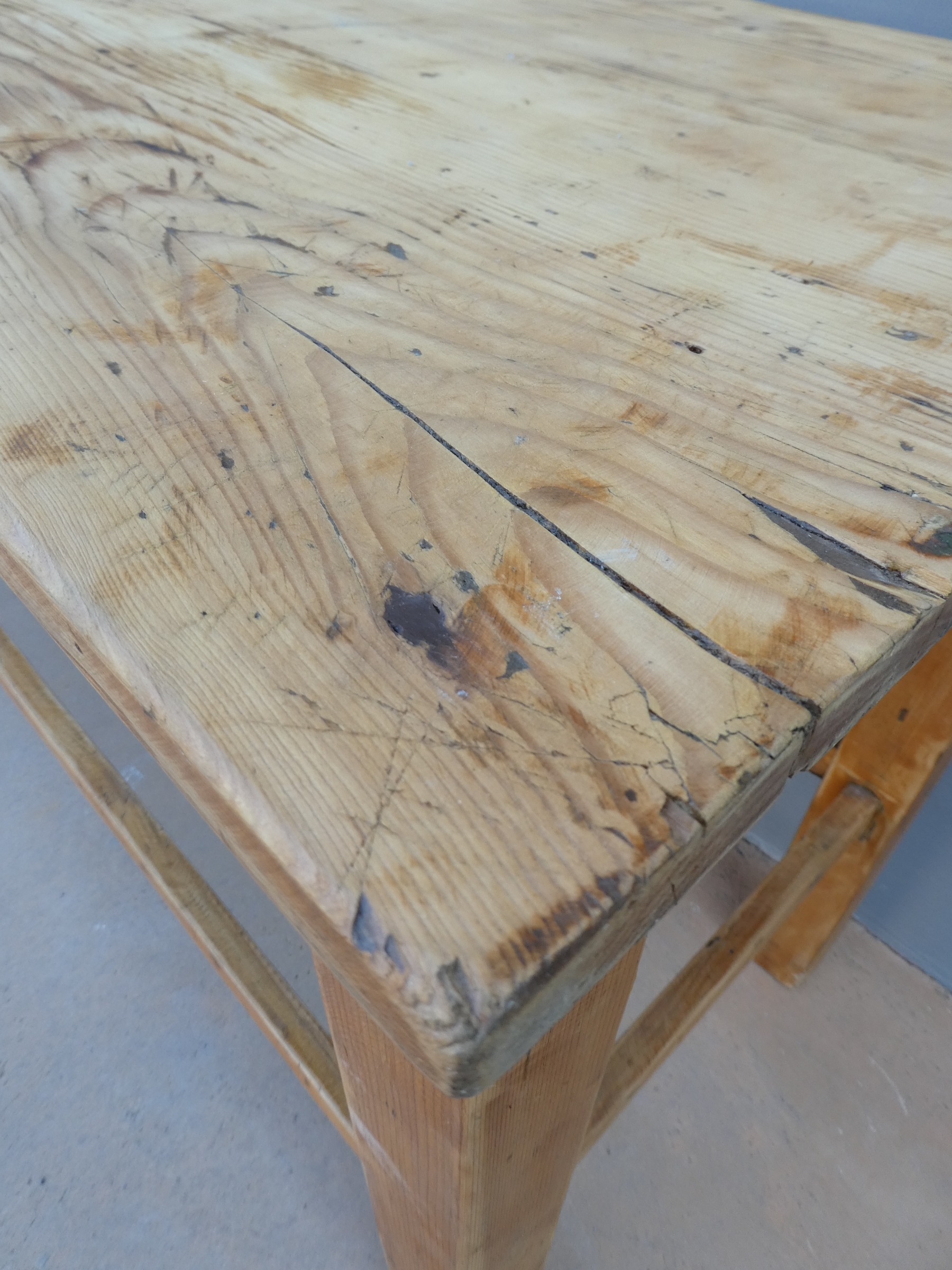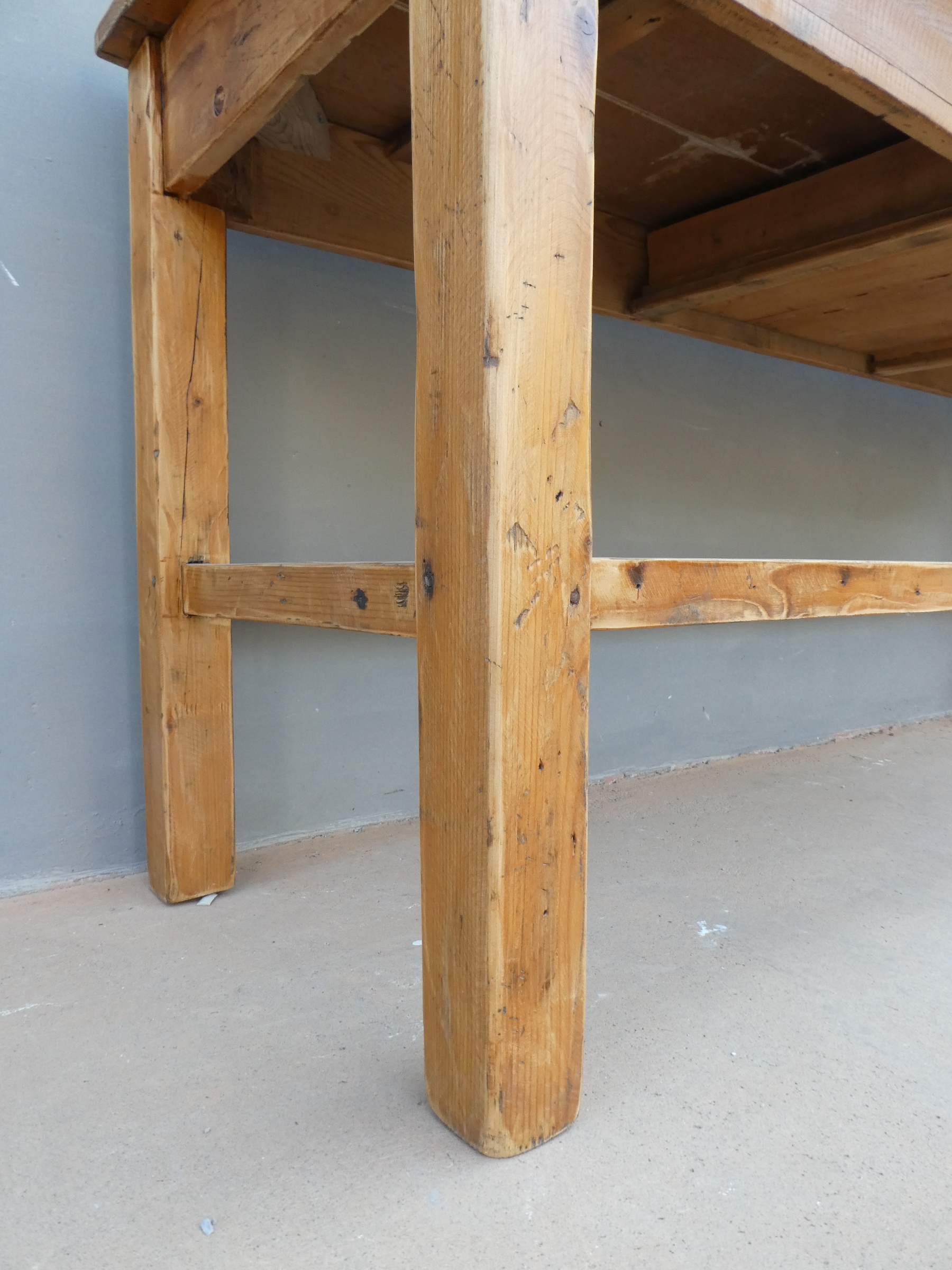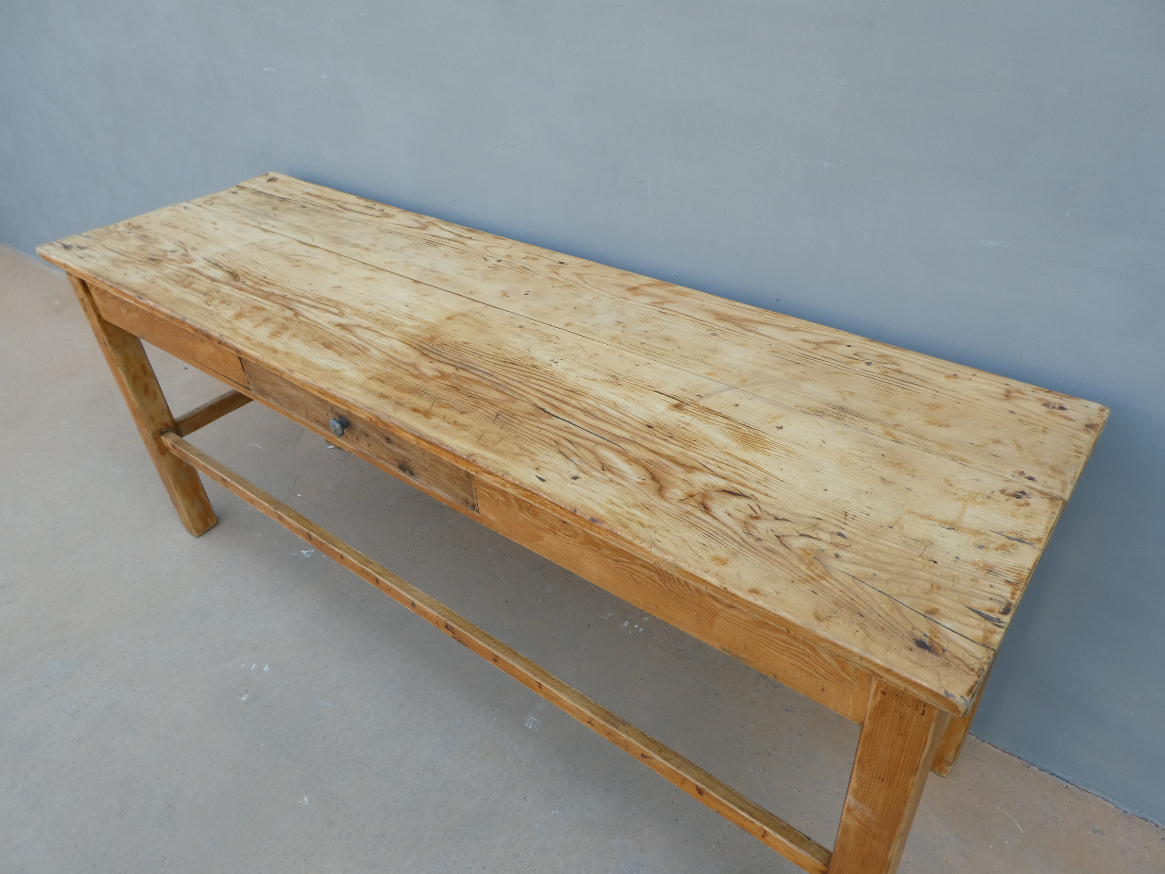 Tavolo bancone rustico realizzato artigianalmente in legno di pino, fornito di un cassetto frontale (realizzato con un altro legno), d’epoca ‘900. Si propone come versatile ed esclusivo elemento d’arredo, capace di dare un tocco d’originalità a qualsiasi ambiente. Necessita di qualche interventi di restauro/presenta segni d’usura – foto.