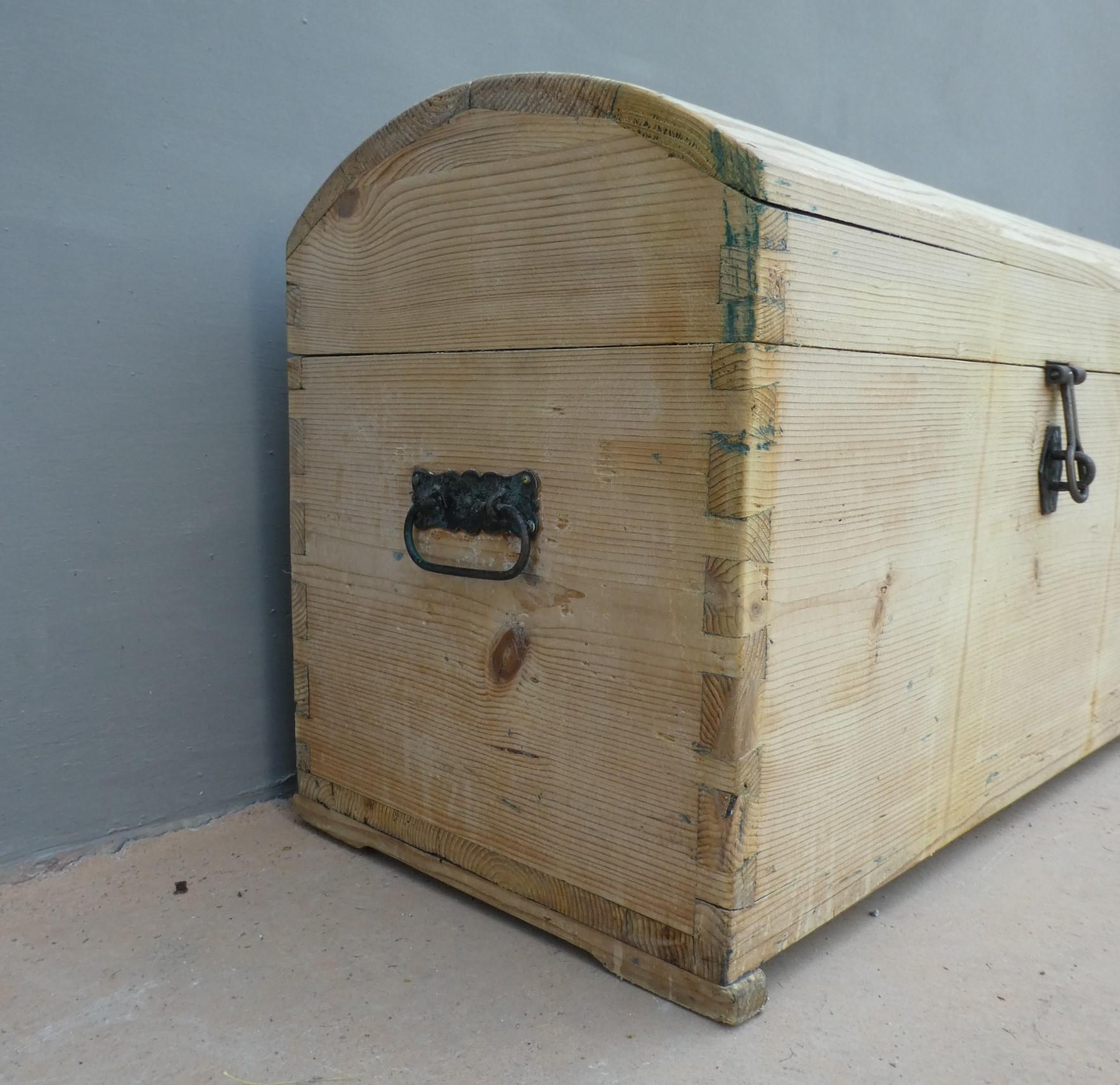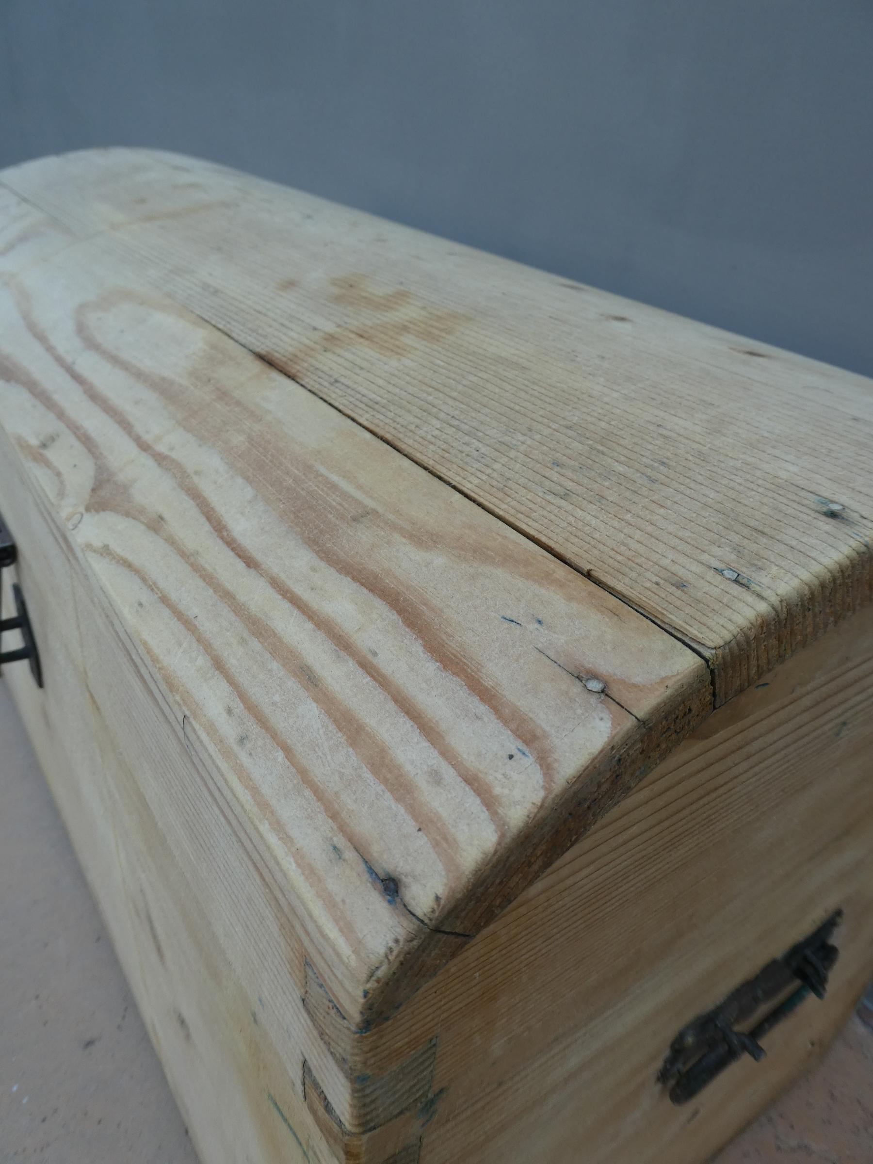 Baule cassapanca contenitore realizzato in legno di abete, dotato di un piano apribile e due maniglie laterali, appartenente d’epoca ai primi del ‘900. Si propone come versatile ed esclusivo elemento d’arredo, capace di dar un tocco d’originalità a qualsiasi ambiente. Necessita di piccoli interventi di restauro.