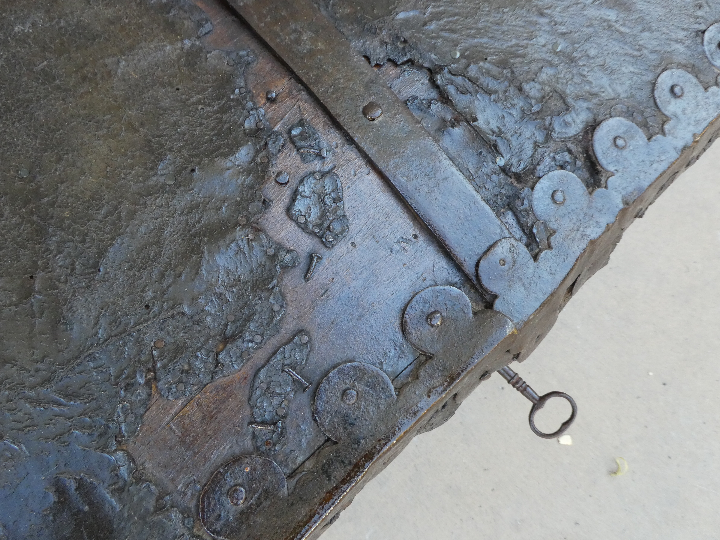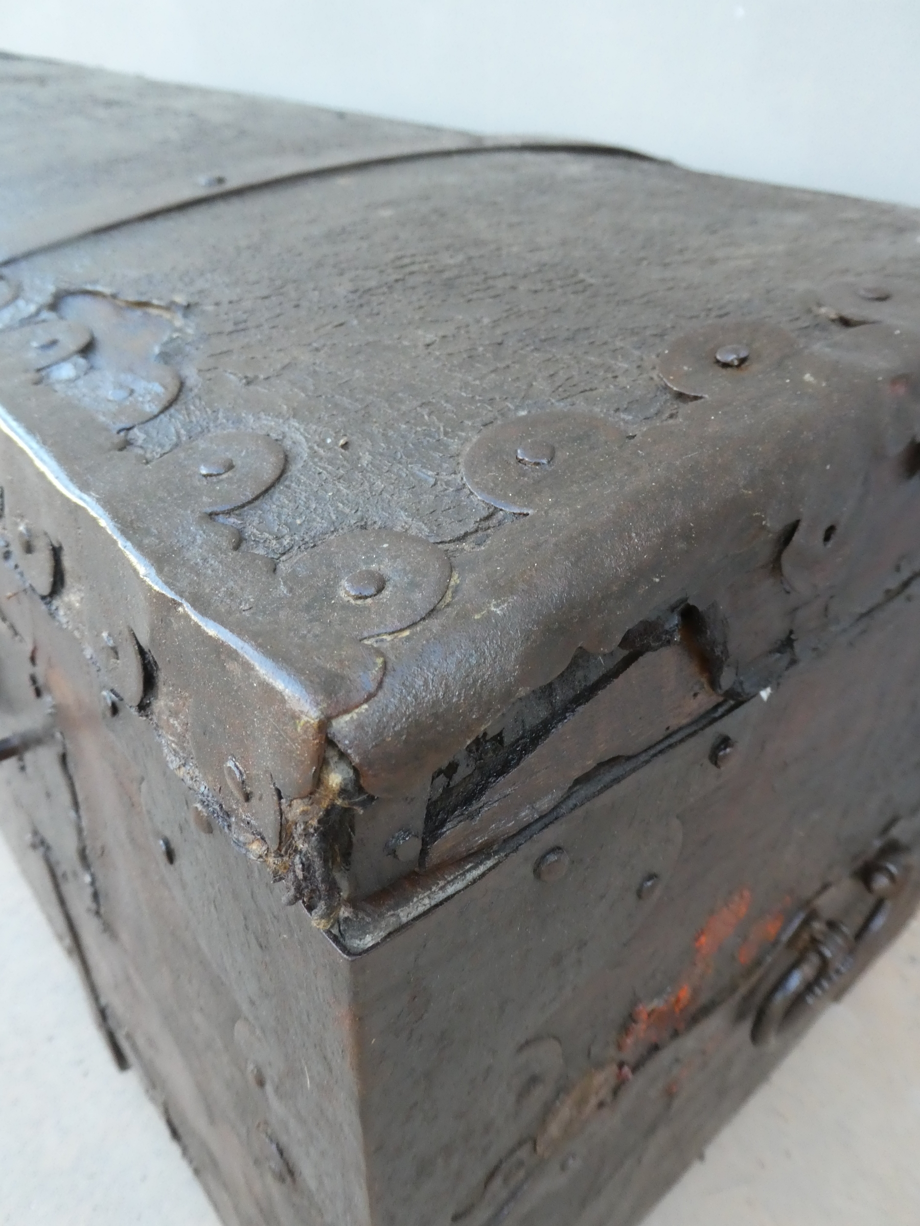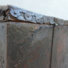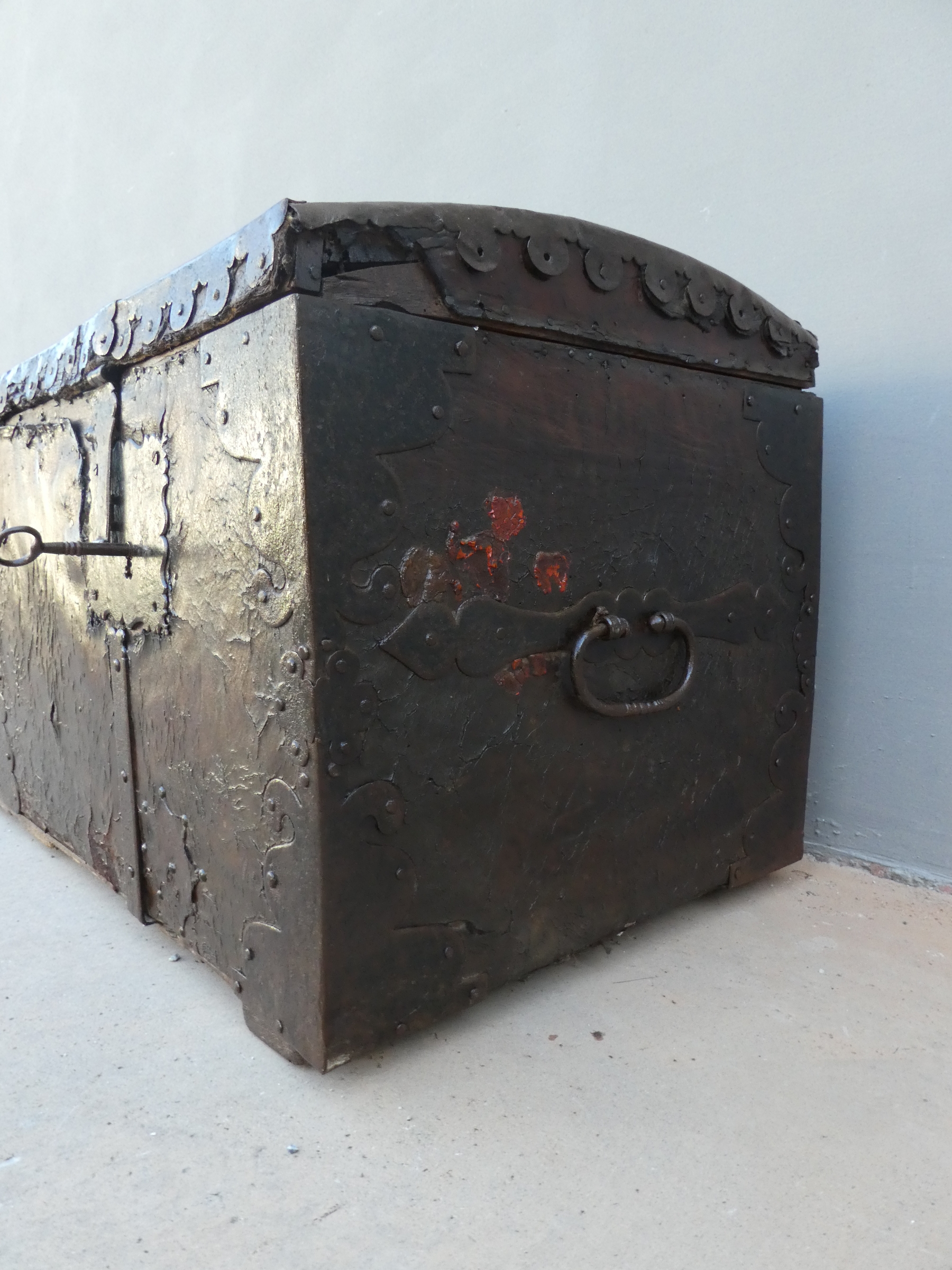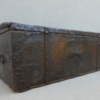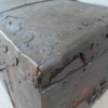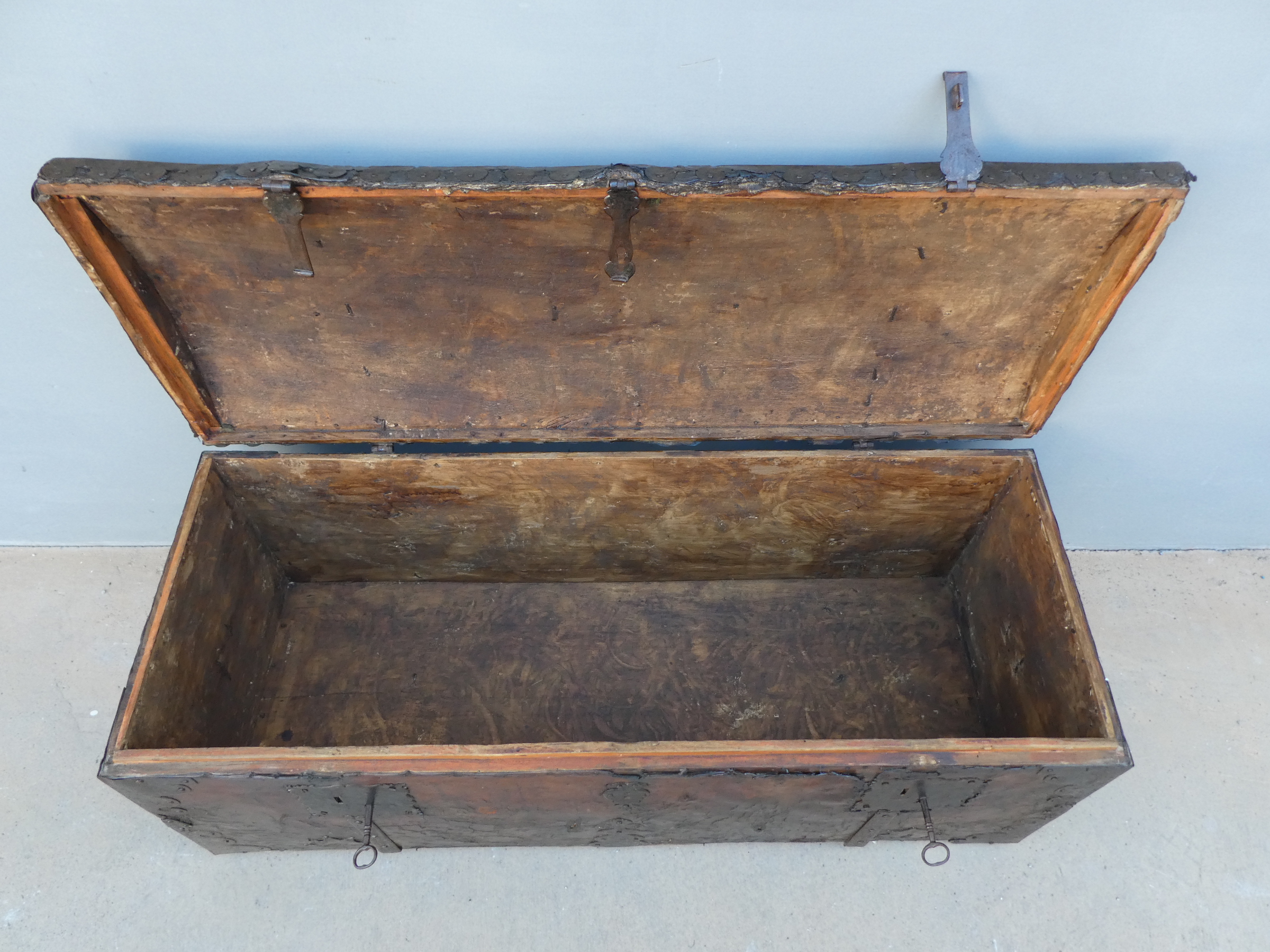 Baule cassapanca contenitore rivestito in pelle, dotato di un piano apribile e due maniglie laterali, epoca ‘800. Si propone come versatile ed esclusivo elemento d’arredo, capace di dar un tocco d’originalità a qualsiasi ambiente. Necessita di alcuni interventi di restauro (foto).