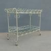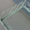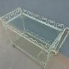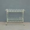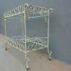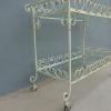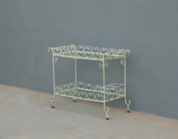 Tavolino rettangolare carrello portabevande con rotelle e doppio piano d’appoggio in vetro (removibile), adatto sia agli ambienti esterni che interni ed appartenente d’epoca alla metà del ‘900 – anni ‘60. Presenta qualche segno d’usura – il vetro è scheggiato in due diversi punti.
