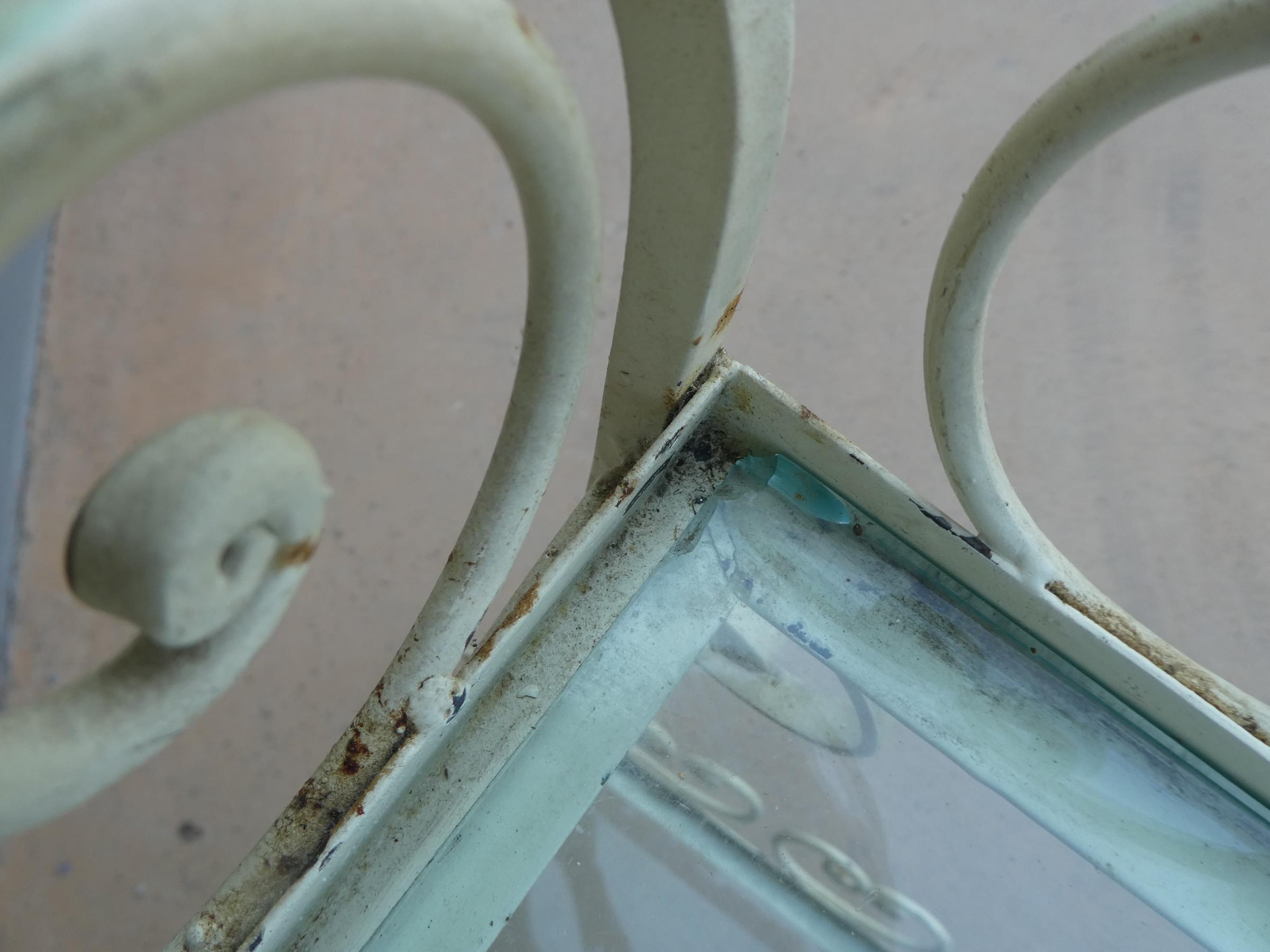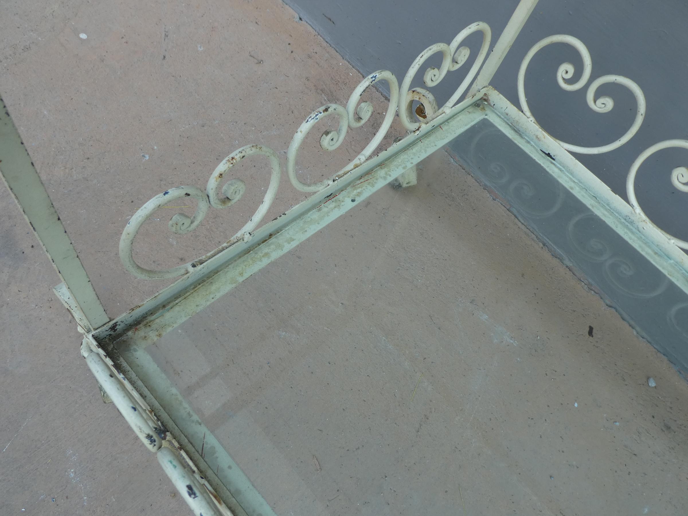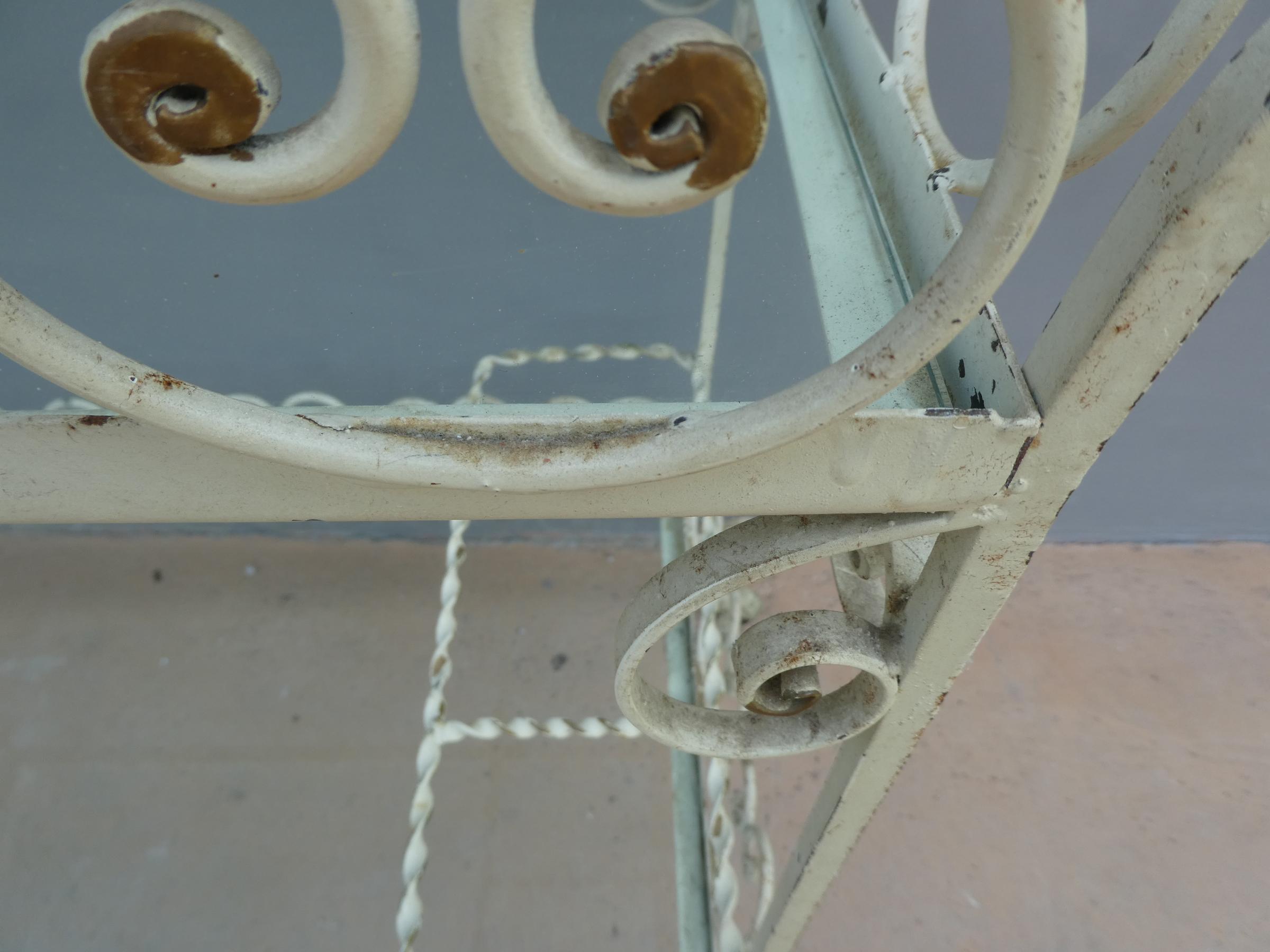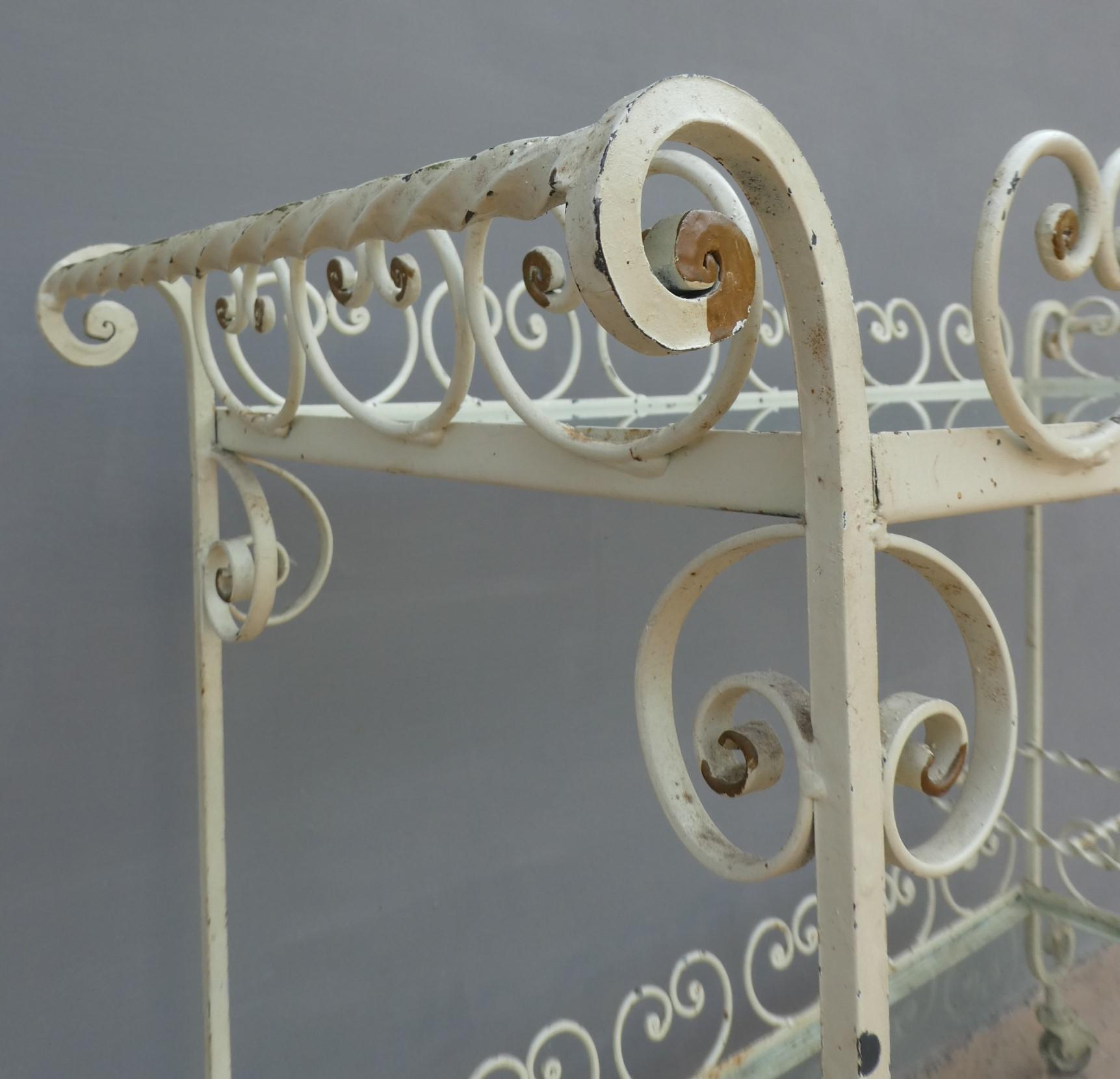Tavolino rettangolare carrello portabevande con rotelle e doppio piano d’appoggio in vetro (removibile), adatto sia agli ambienti esterni che interni ed appartenente d’epoca alla metà del ‘900 – anni ‘60. Presenta qualche segno d’usura – il vetro è scheggiato in due diversi punti.