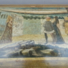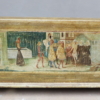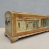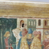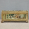 Cassapanca dipinta baule contenitore dotato di un piano apribile ed appartanente d’epoca alla metà del ‘900. Il mobile presenta una decorazione policroma con scene dipinte, che raffigurano figure in ambientazioni storiche o narrative. La presenza di maniglie laterali in ferro suggerisce la sua natura di mobile “trasportabile”. Presenta qualche segno d’usura – foto.