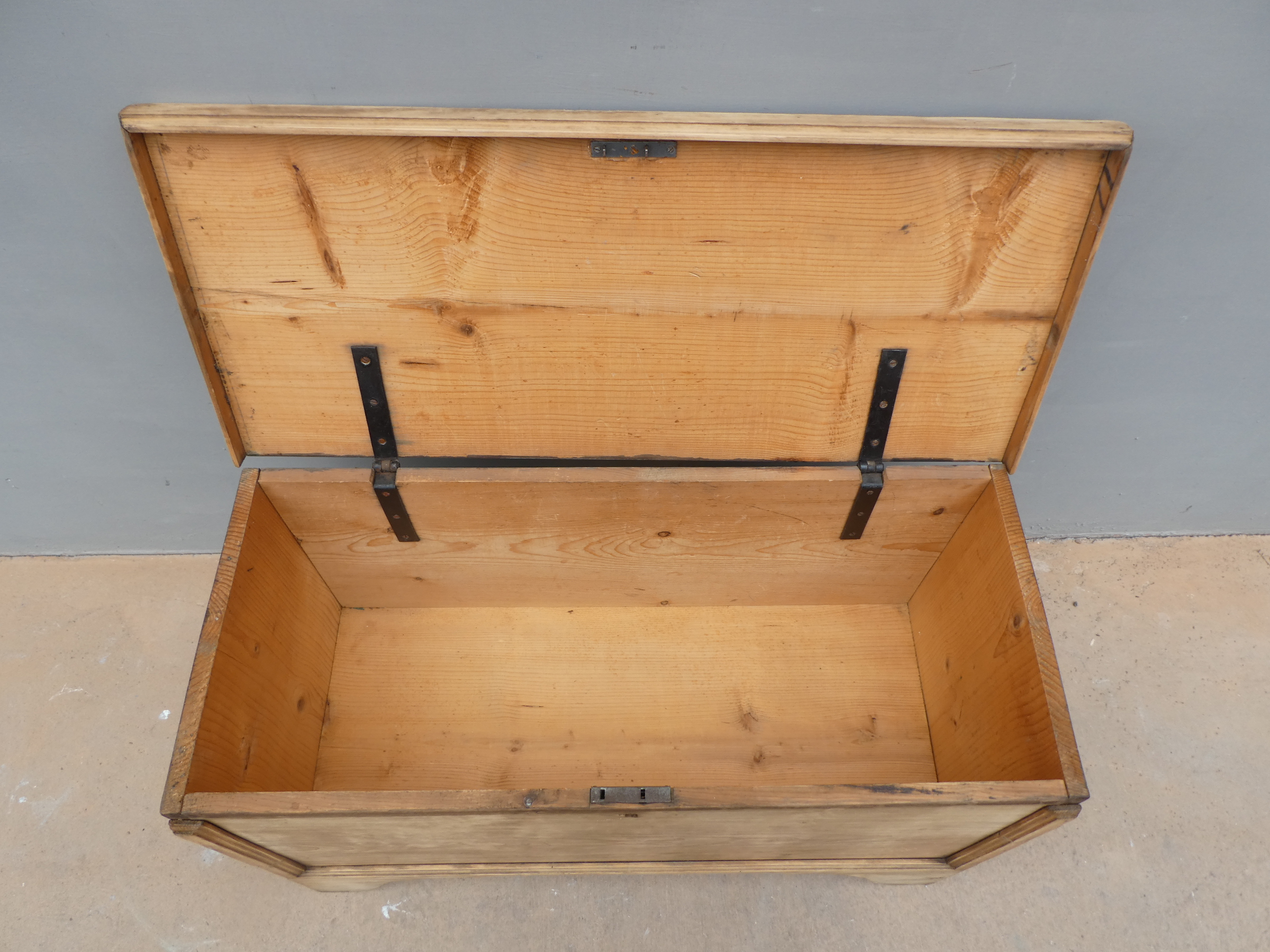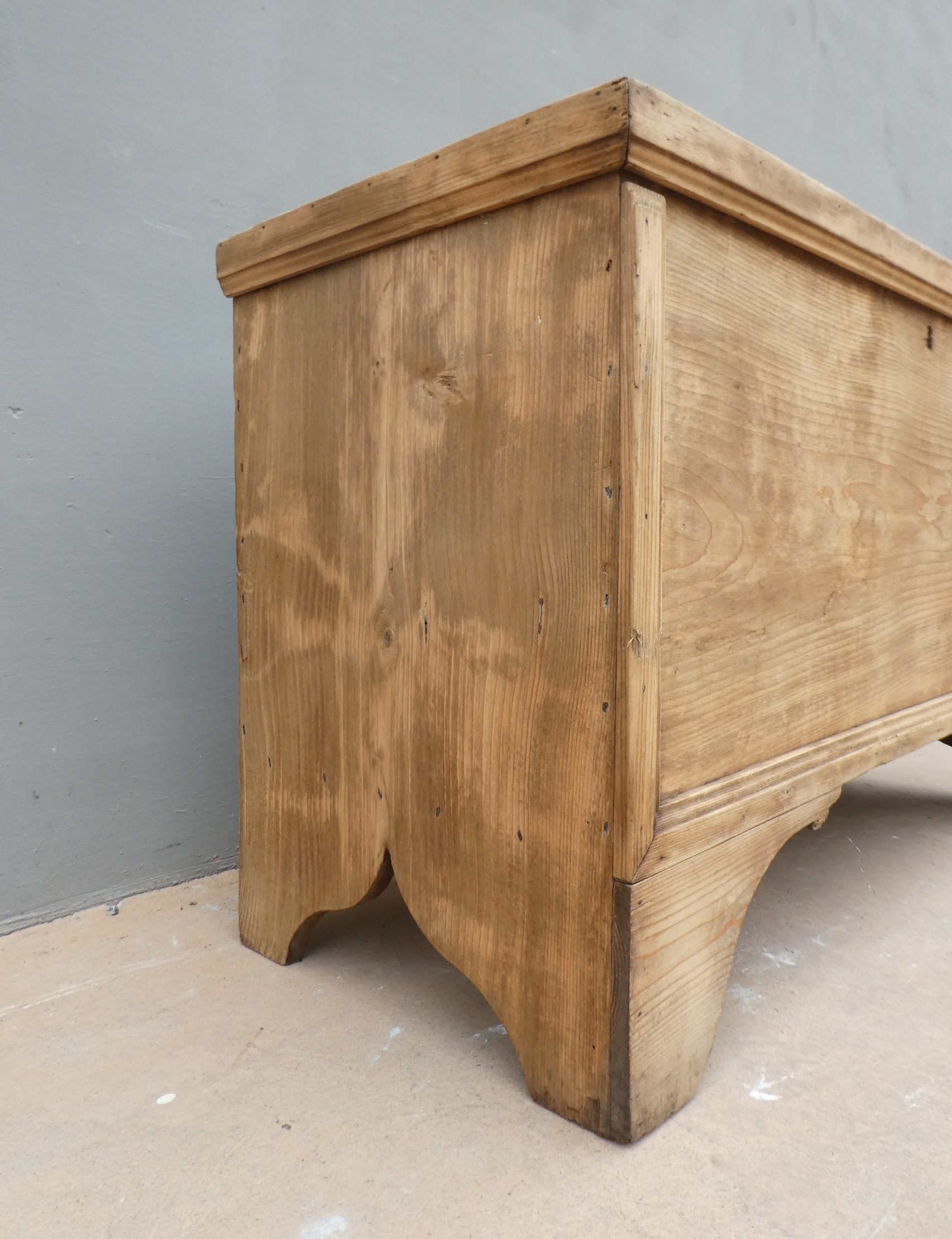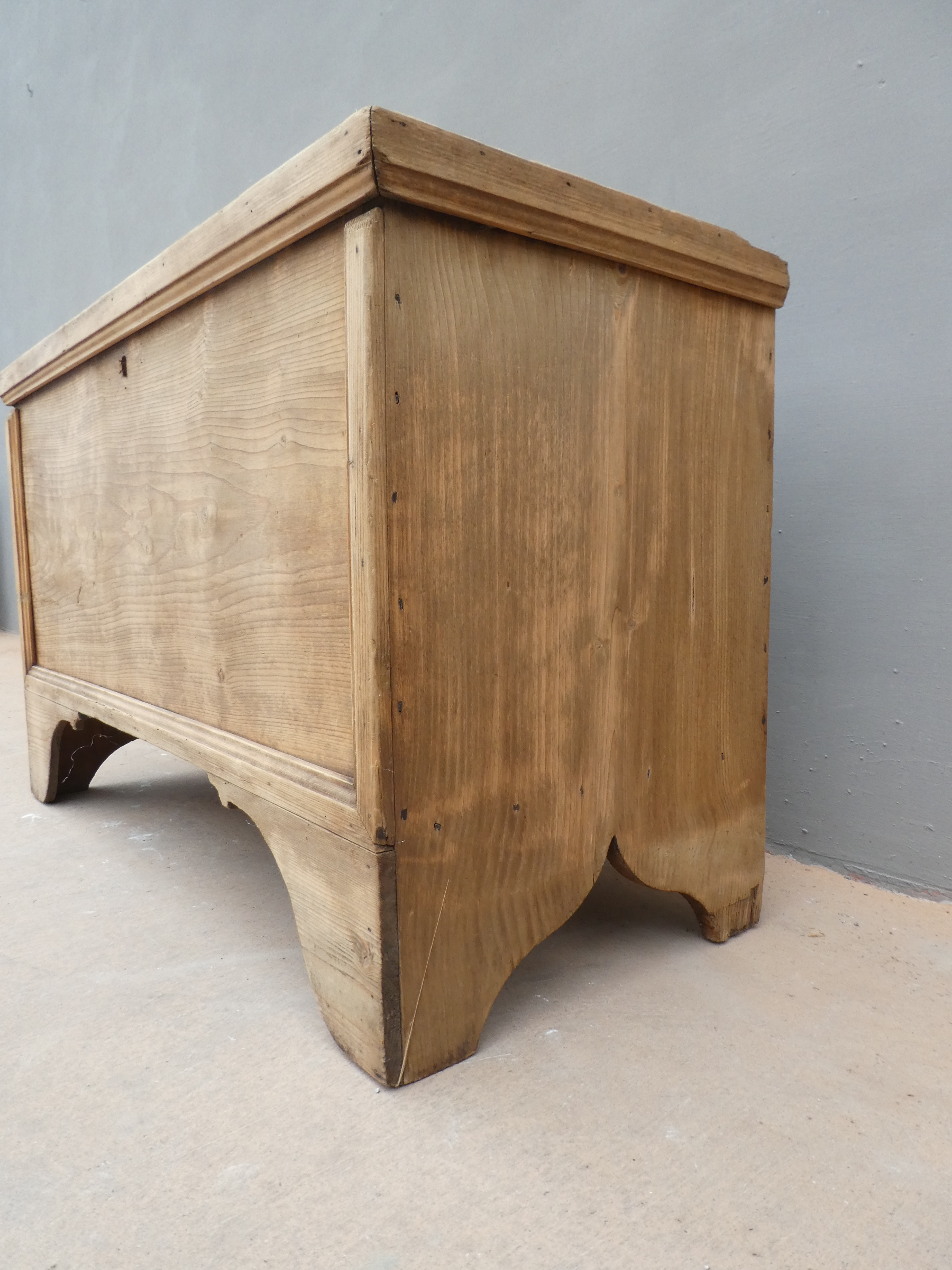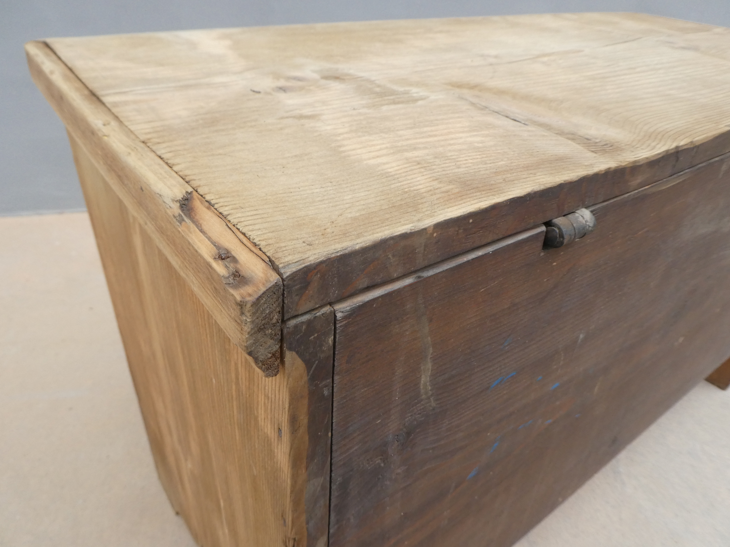 Cassapanca panca rustica mobile contenitore con piano apribile realizzata in legno massello di abete ed appartenente d’epoca alla fine dell’800. La semplice struttura conferisce una sobria eleganza. La ricerca di un decoro essenziale si riflette anche sui montanti, privi di elementi decorativi. Si presenta come un funzionale e versatile elemento d’arredo. Necessita di piccoli interventi di restauro (a propria discrezione – foto).