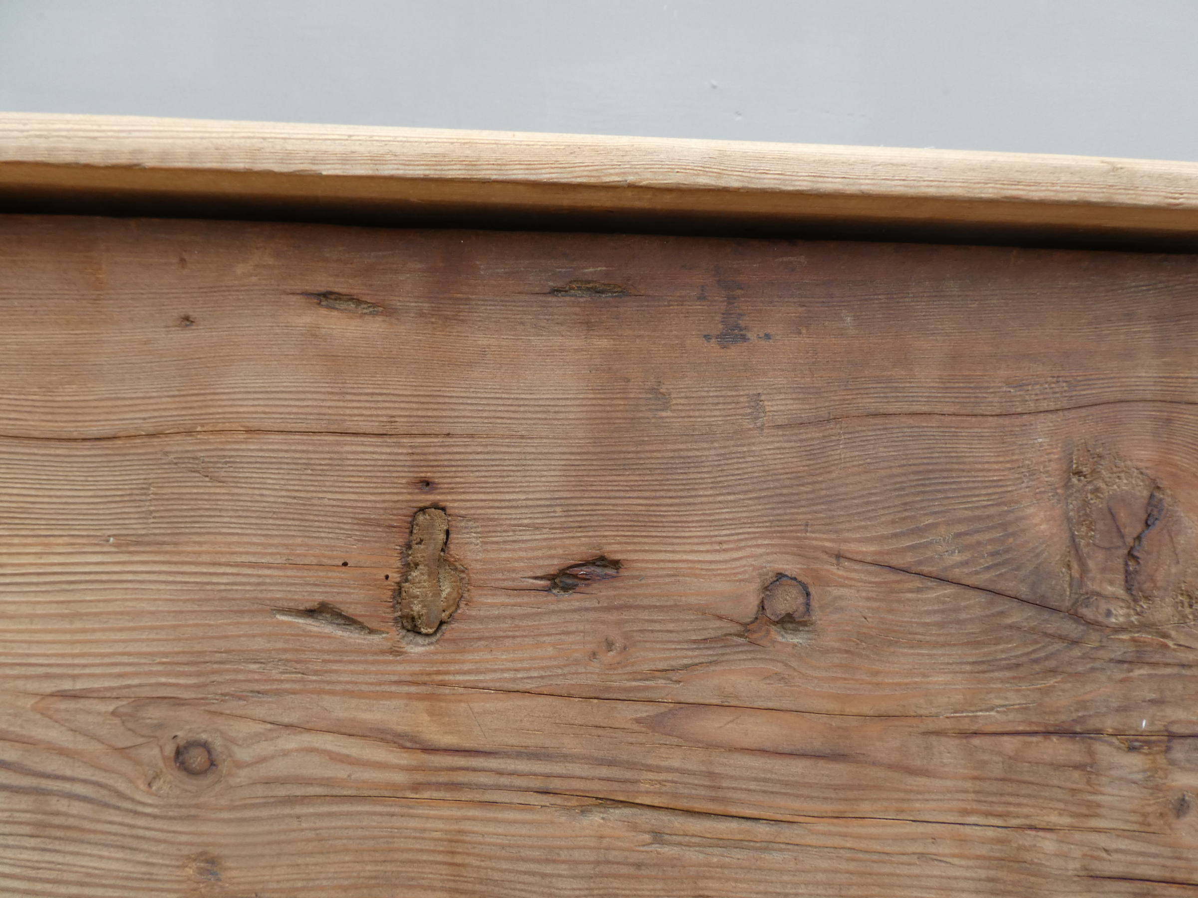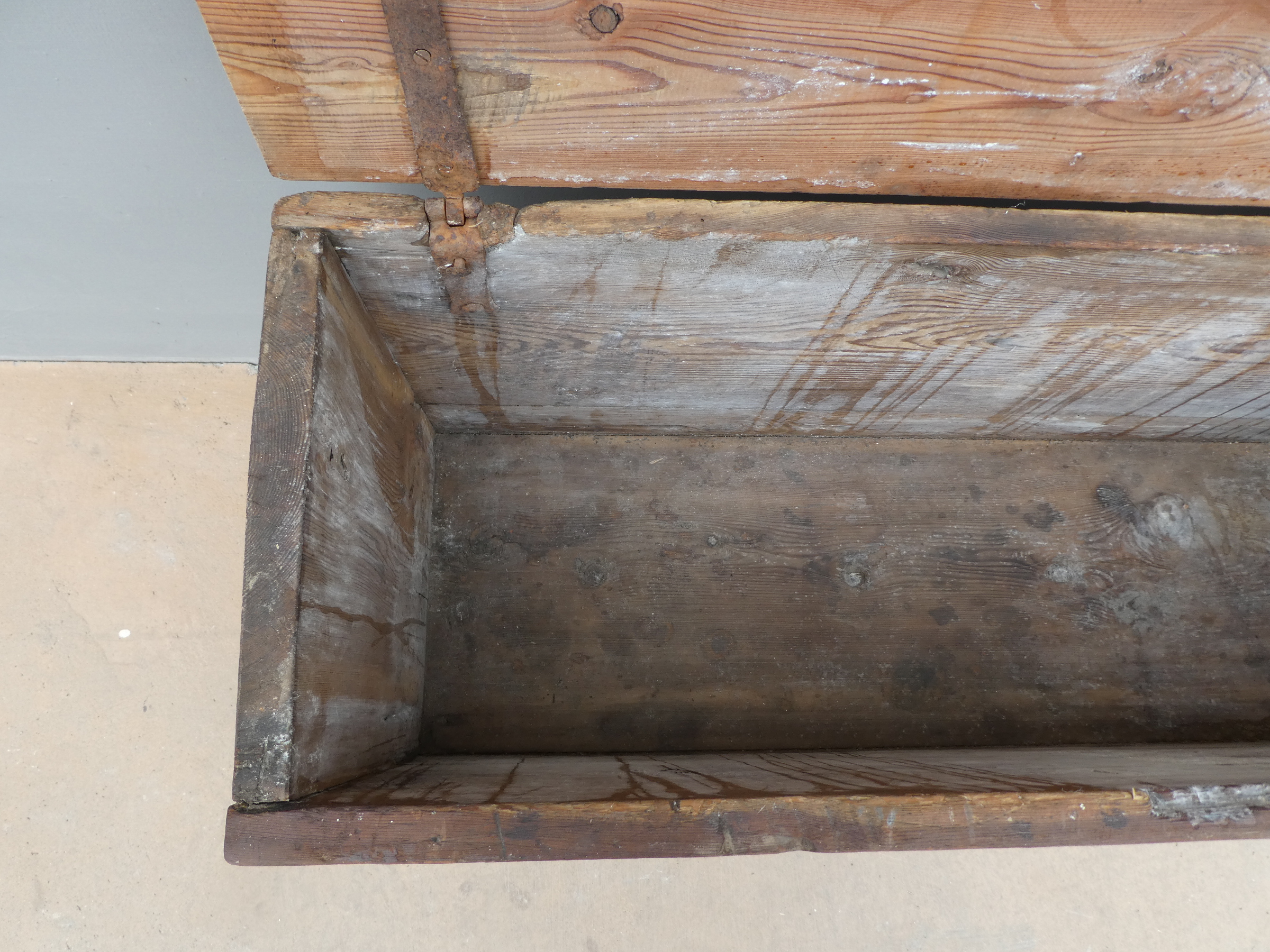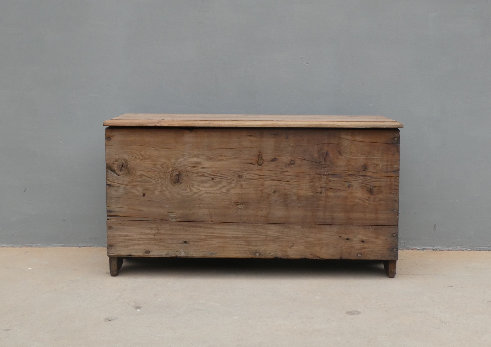 Cassapanca panca rustica mobile contenitore con piano apribile realizzata in legno massello di larice (piano non coevo) ed appartenente d’epoca alla fine dell’800. La semplice struttura conferisce una sobria eleganza. La ricerca di un decoro essenziale si riflette anche sui montanti, privi di elementi decorativi. Si presenta come un funzionale e versatile elemento d’arredo. Necessita di alcuni interventi di restauro (a propria discrezione), sono presenti i fori di tarlo.