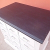 Cassettiera mobile 9 cassetti, particolari dimensioni, laccata e rifinita con la tecnica “Shabby Chic” che prevede l’uso di colori scuri e colori chiari che affiorano dopo il trattamento d’usura. Ciò che rende elegante ed originale questo mobile è il forte contrasto creato dalla lacca chiara utilizzata per il corpo, con quella del piano, decisamente più scura. Rifinita anche sul retro. Epoca metà ‘900.