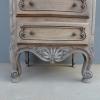 Cassettiera settimanale in legno di noce, stile provenzale francese, corredata da 7 cassetti frontali. La struttura si presenta solida ed armoniosa, e vanta proporzioni sapientemente equilibrate. Ciò che la impreziosisce è indubbiamente la scelta d’arricchire il corpo con delicati intagli, caratteristici dello stile. Necessita di leggeri interventi di restauro, sono presenti fori di tarlo. Dopo la sverniciatura, non è stata data alcuna finitura. Epoca metà ‘900.