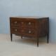 Comò cassettone genovese corredato da tre cassetti frontali ed appartenente d’epoca alla fine del ‘700. L’armoniosa struttura, dove il senso della misura viene rigorosamente rispettato, conferisce una raffinata eleganza. La ricerca di un decoro mirato si rispecchia anche sulla scelta d’impreziosire il corpo con un delicato filetto, che spicca contrastante sull’elegante superficie in noce (massello e lastra) che fa da sfondo. Necessita di alcuni interventi di restauro conservativo, sono presenti fori di tarlo.