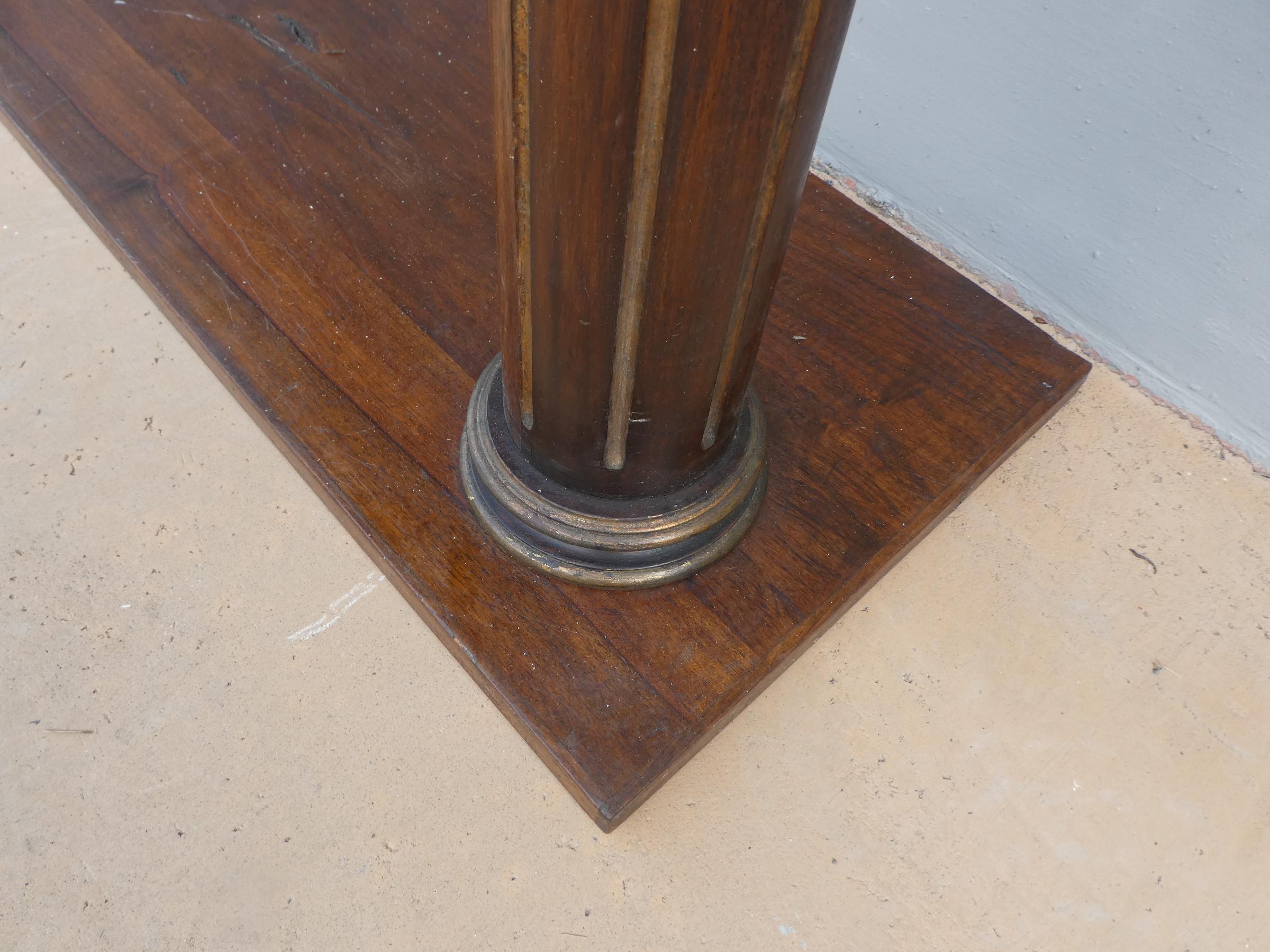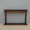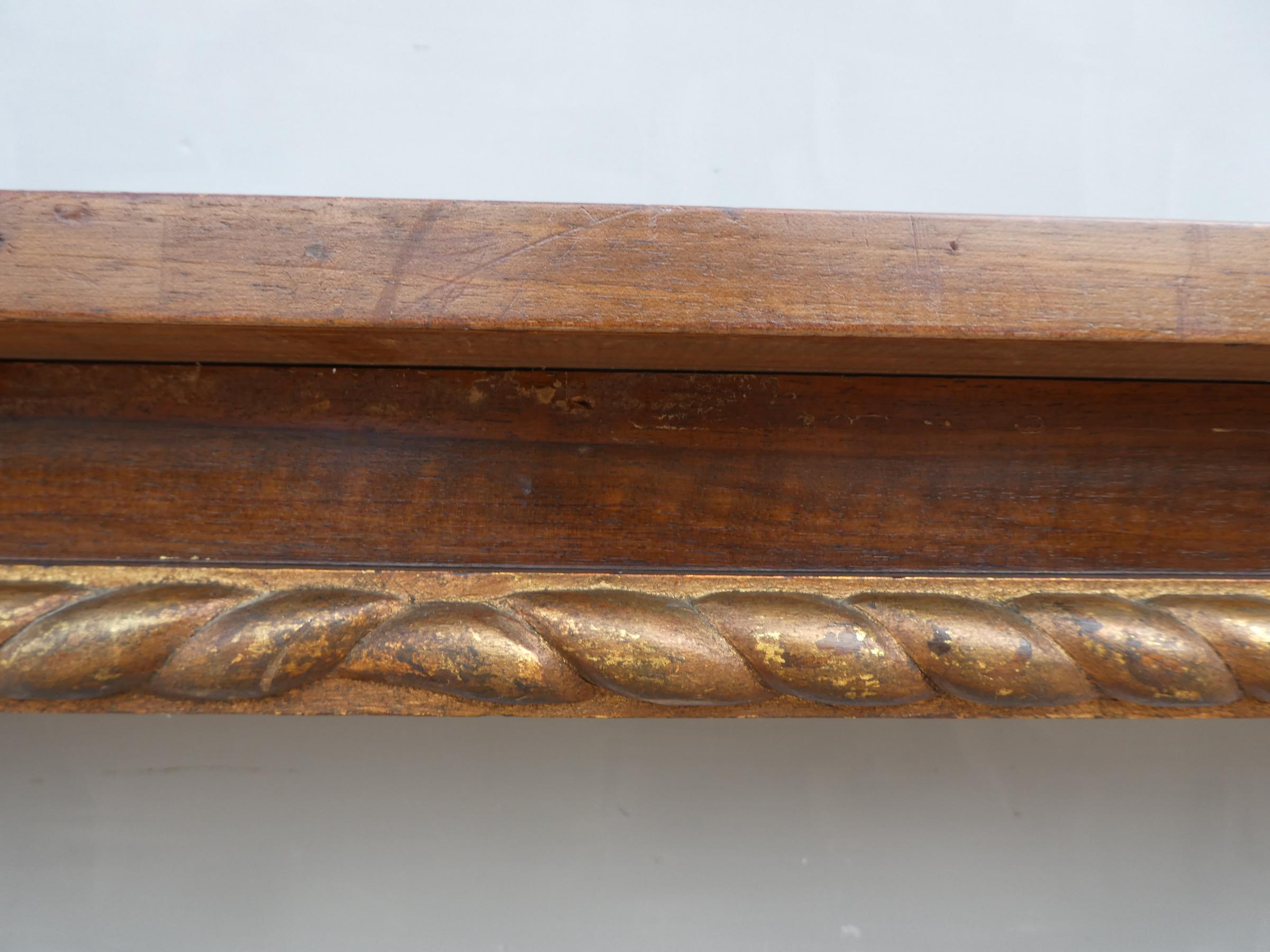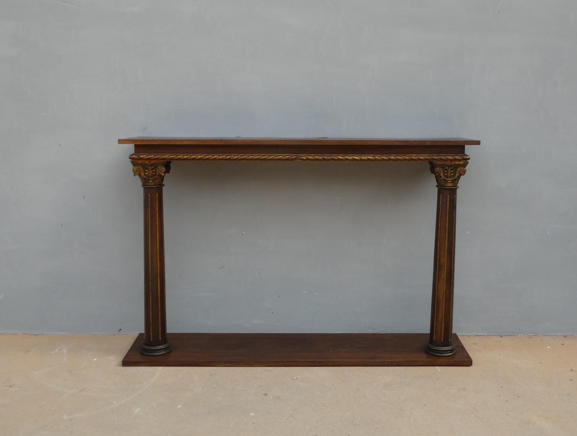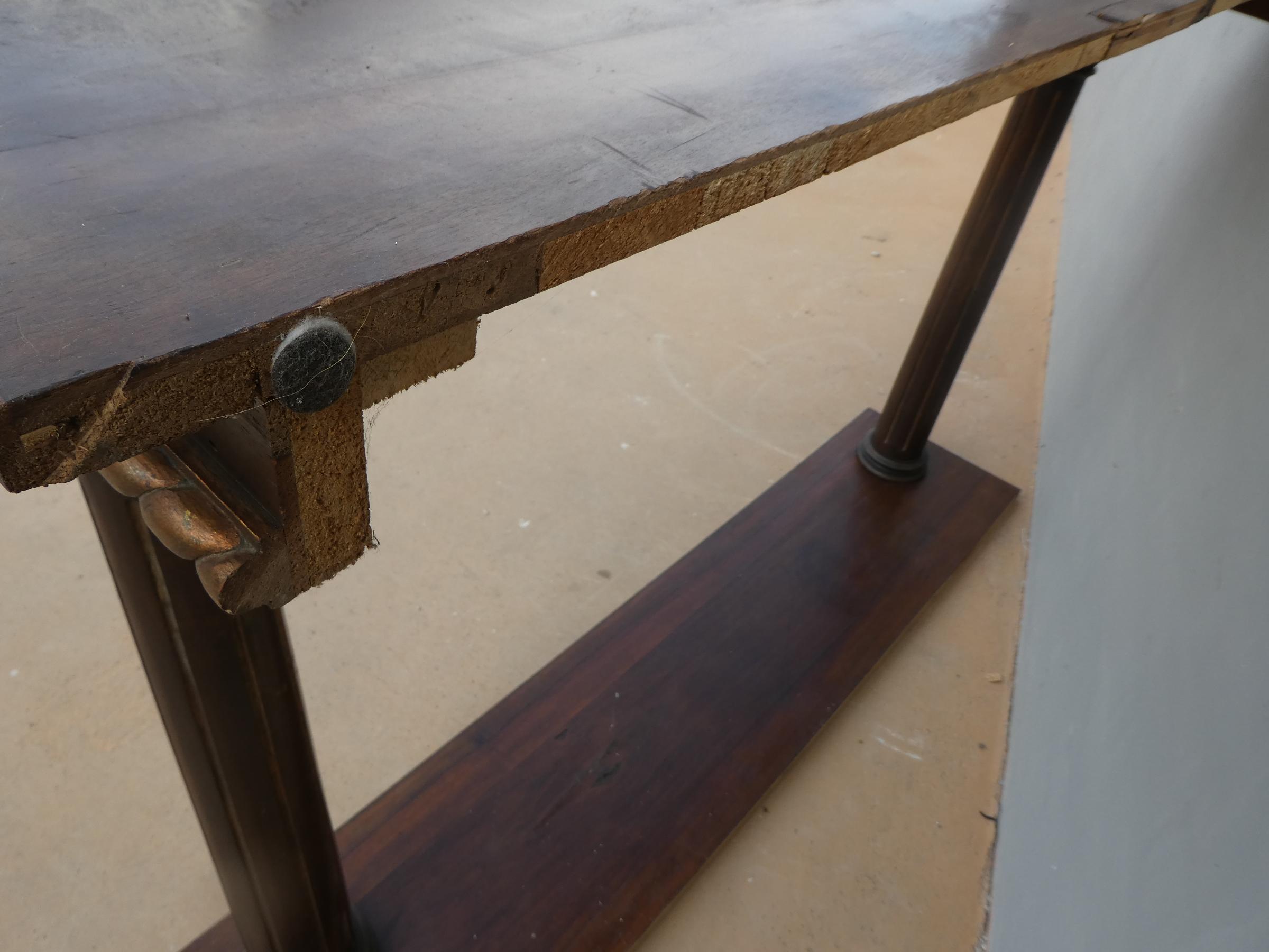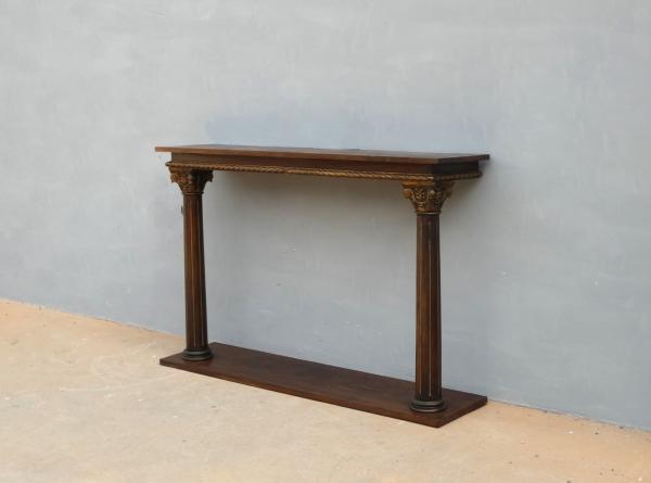 Console da parete mobile da ingresso in stile, appartenente d’epoca al ‘900. Semplice e lineare nella linea, si contraddistingue indubbiamente per la scelta dei raffinati montanti che sorreggono la struttura, minuziosamente intagliati e rifiniti all’estremità. Necessita di leggeri interventi di restauro (foto) – interamente smontabile.