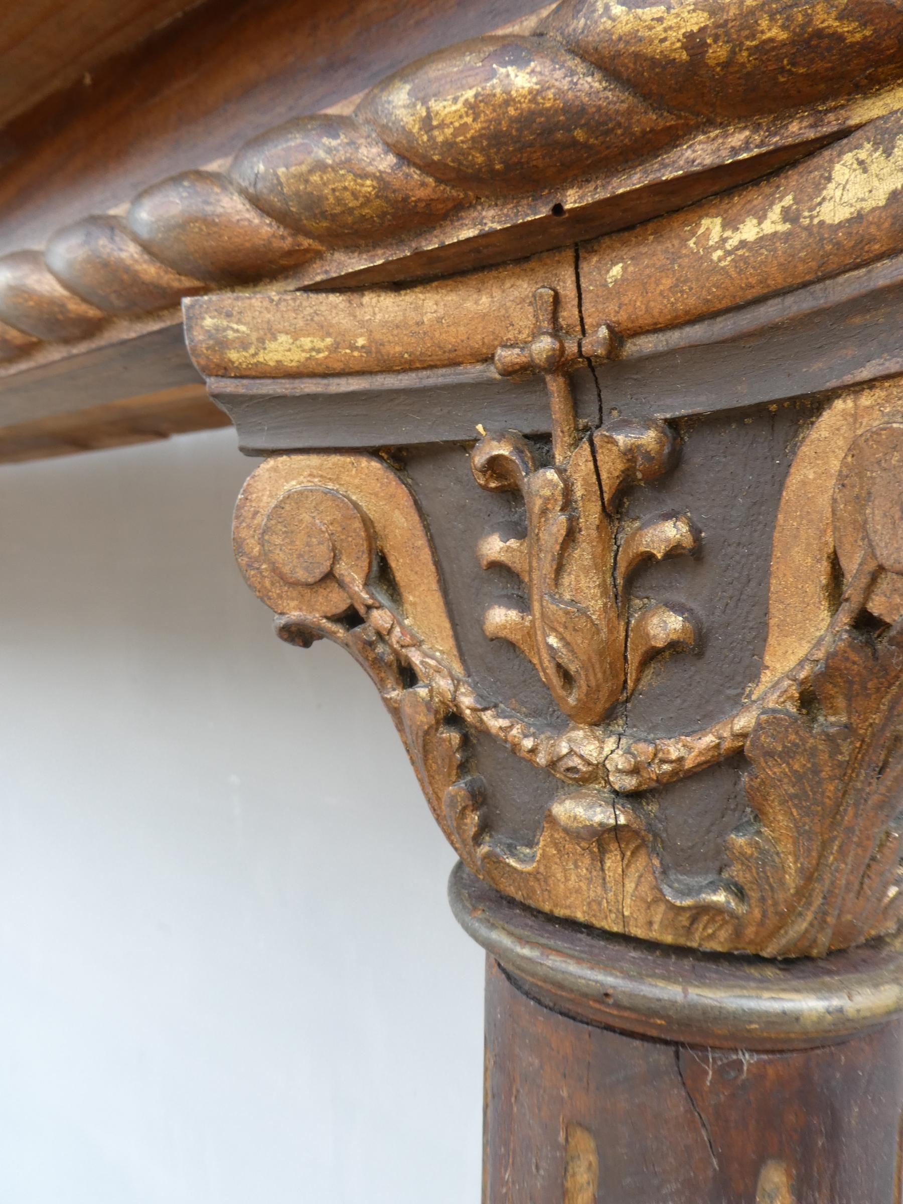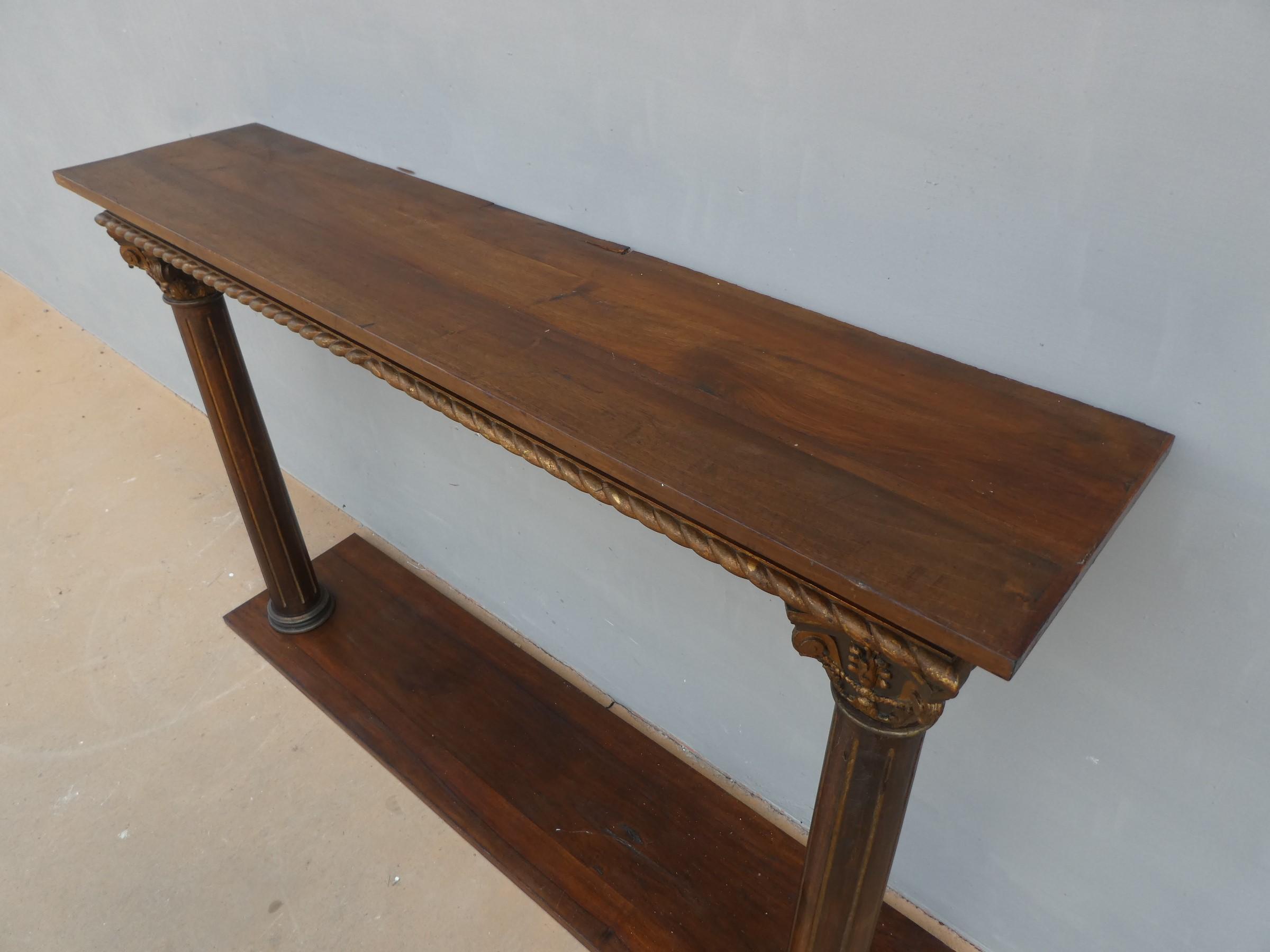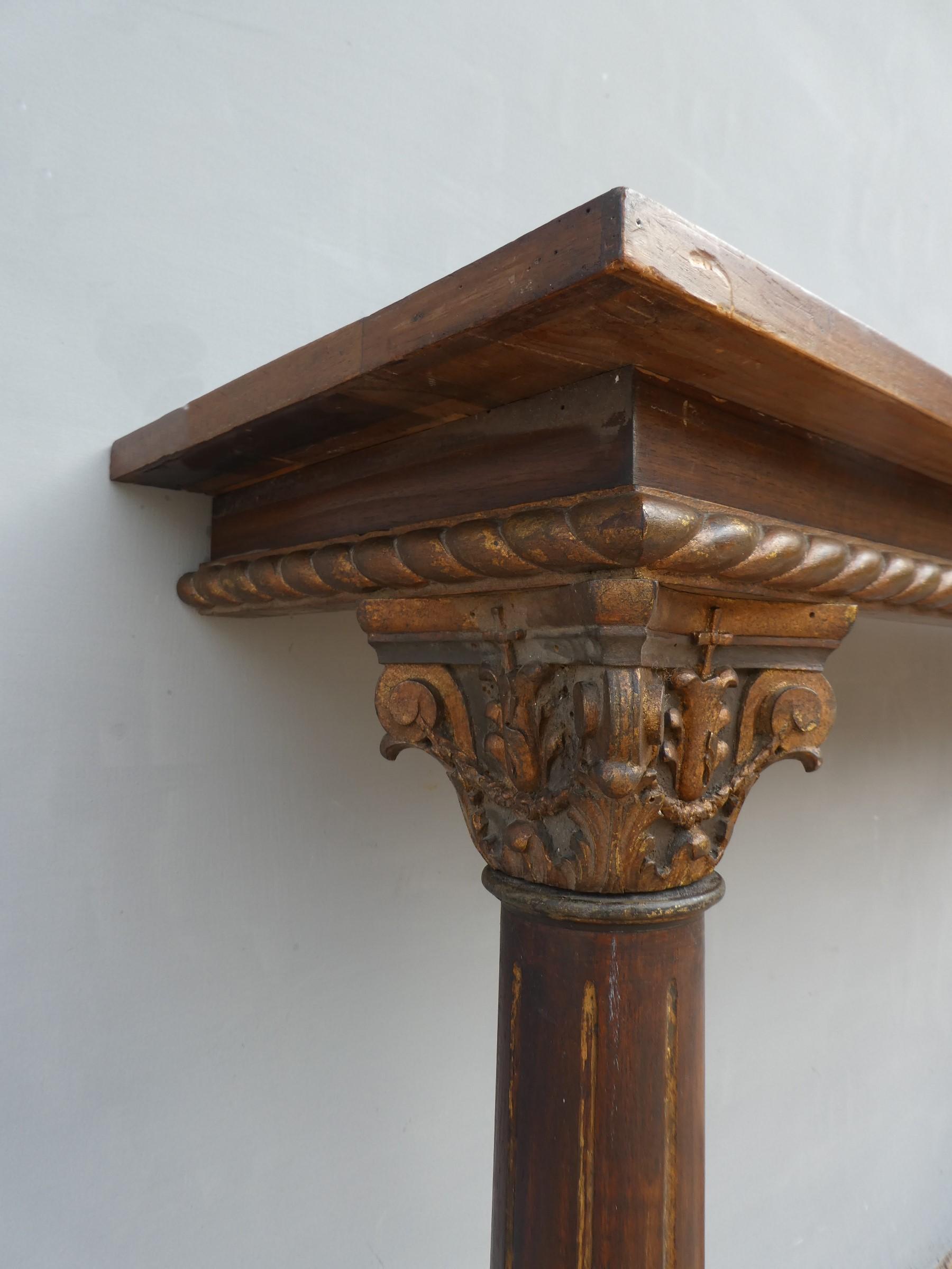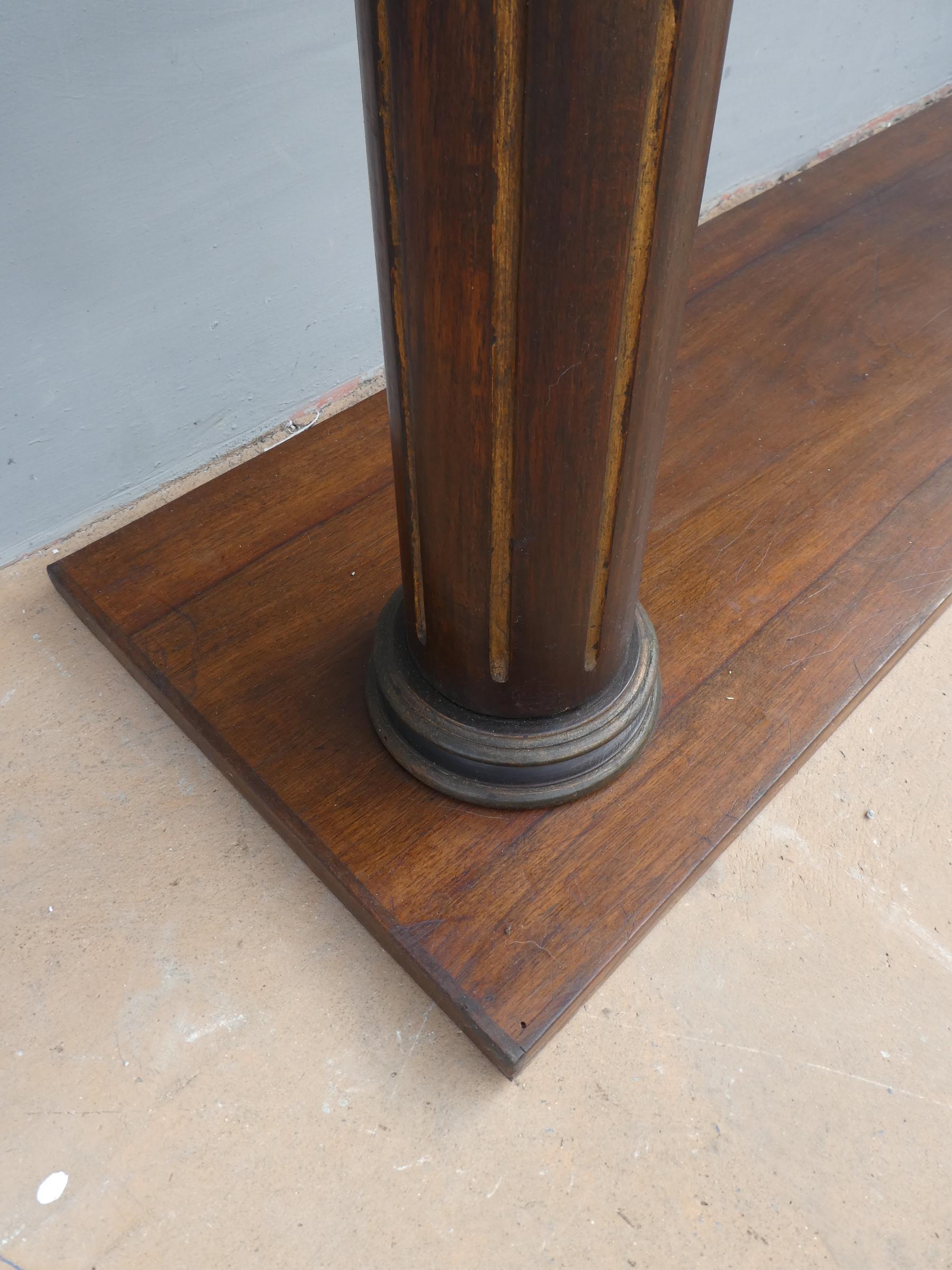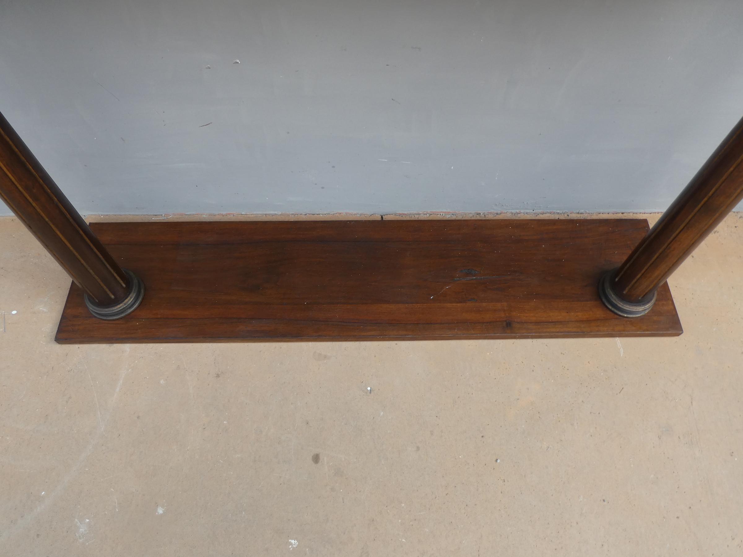 Console da parete mobile da ingresso in stile, appartenente d’epoca al ‘900. Semplice e lineare nella linea, si contraddistingue indubbiamente per la scelta dei raffinati montanti che sorreggono la struttura, minuziosamente intagliati e rifiniti all’estremità. Necessita di leggeri interventi di restauro (foto) – interamente smontabile.