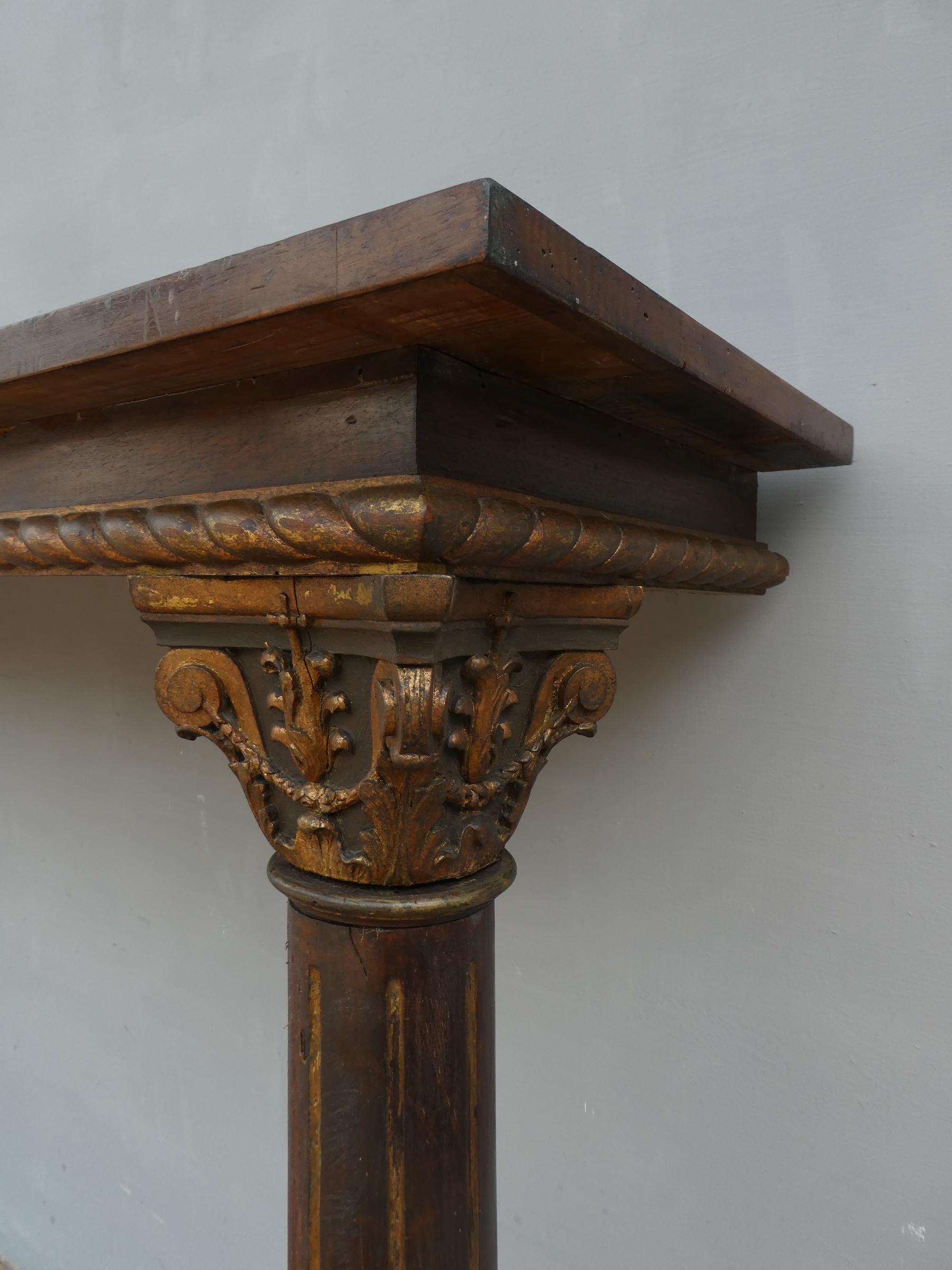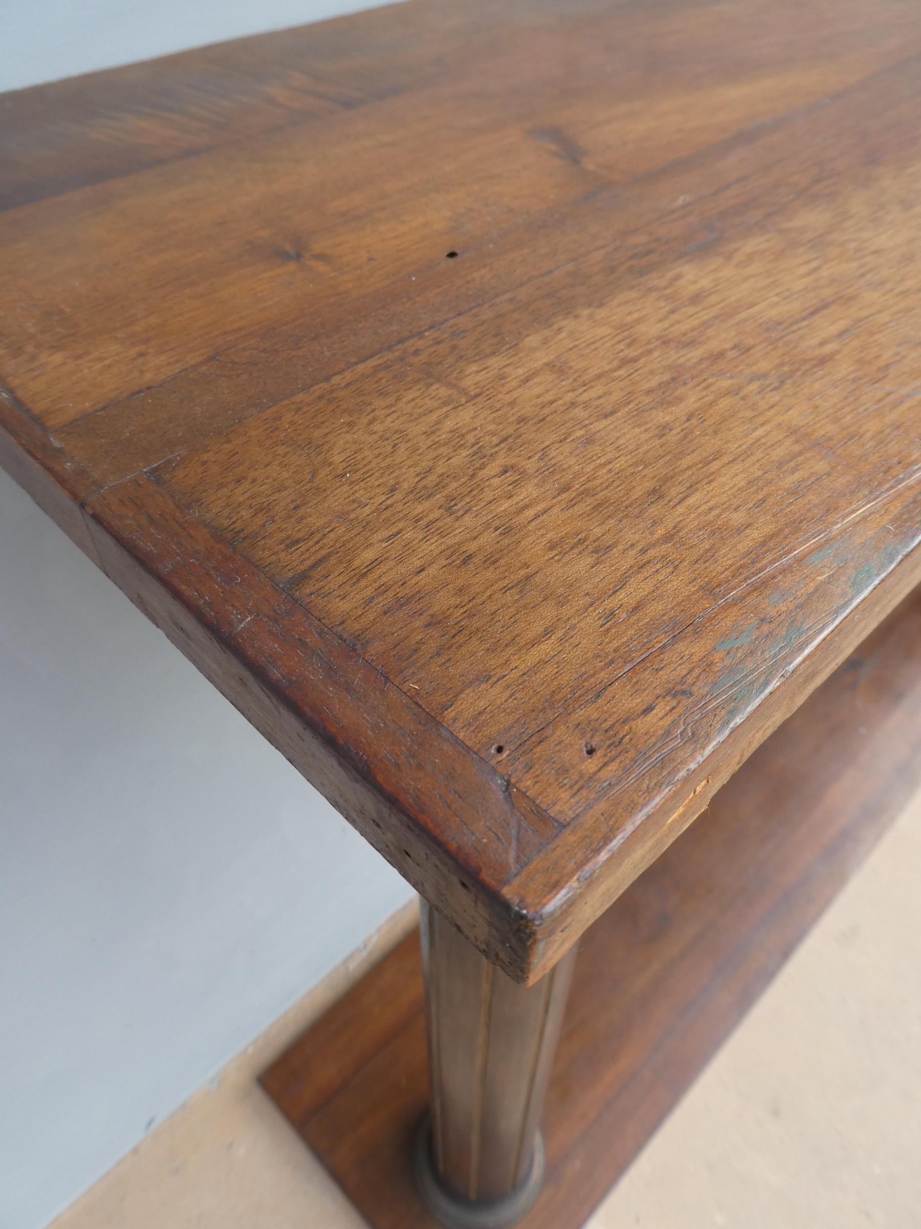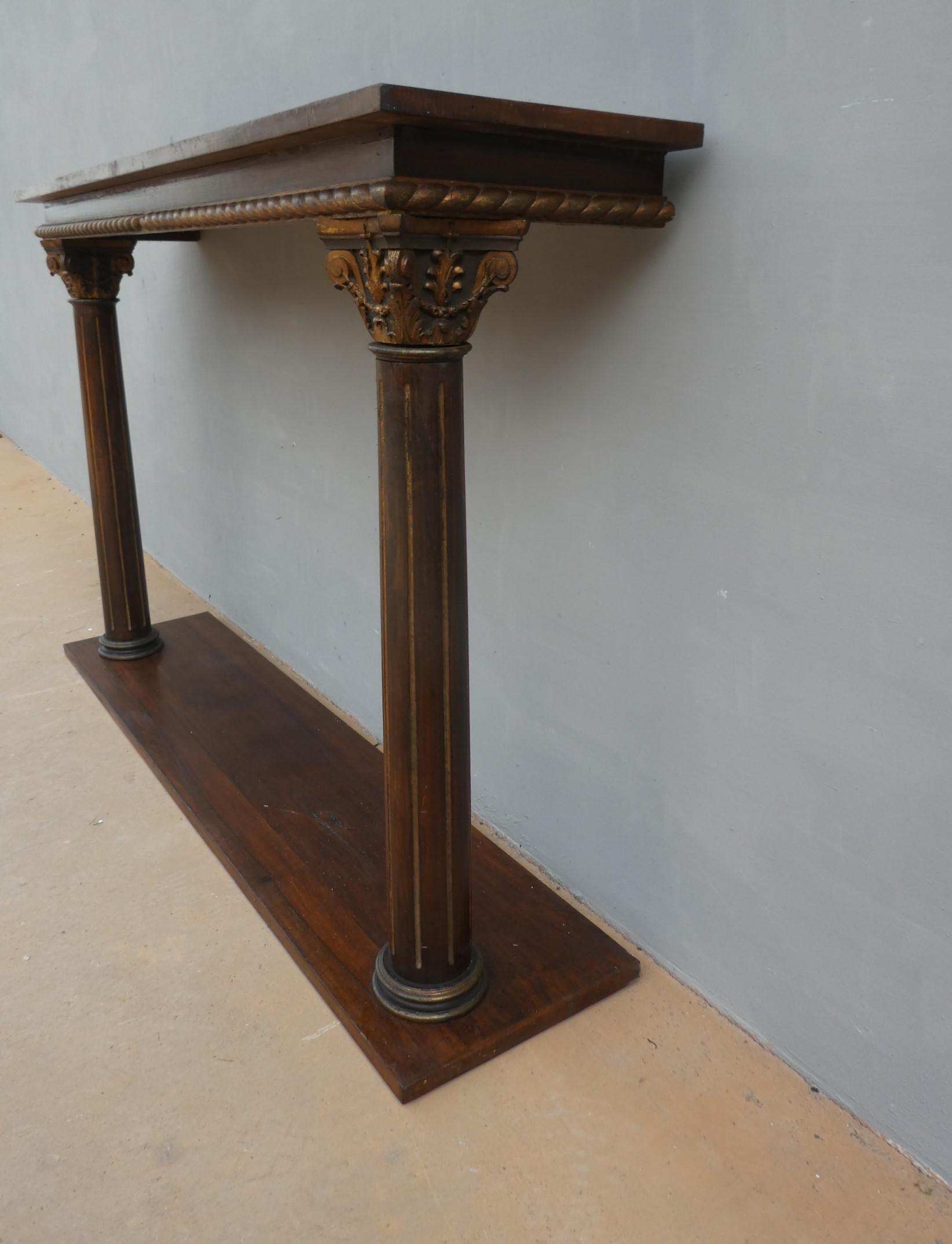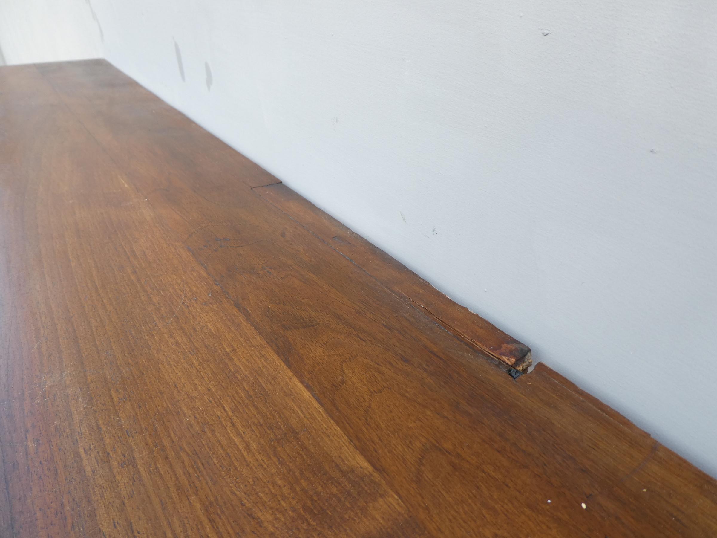 Console da parete mobile da ingresso in stile, appartenente d’epoca al ‘900. Semplice e lineare nella linea, si contraddistingue indubbiamente per la scelta dei raffinati montanti che sorreggono la struttura, minuziosamente intagliati e rifiniti all’estremità. Necessita di leggeri interventi di restauro (foto) – interamente smontabile.