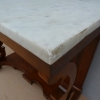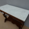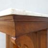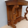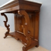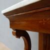 Console mobile d’appoggio ligure st.Carlo X, dotata di un piano d’appoggio in marmo ed appartenente d’epoca alla seconda metà dell’800. La struttura si presenta solida ed armoniosa, e vanta proporzioni sapientemente equilibrate. La ricerca di un decoro mirato si riflette anche sulla scelta d’impreziosire il corpo con delicati intarsi, che spiccano contrastanti sulla raffinata superficie in noce che fa da sfondo. Necessita di leggeri interventi di restauro.