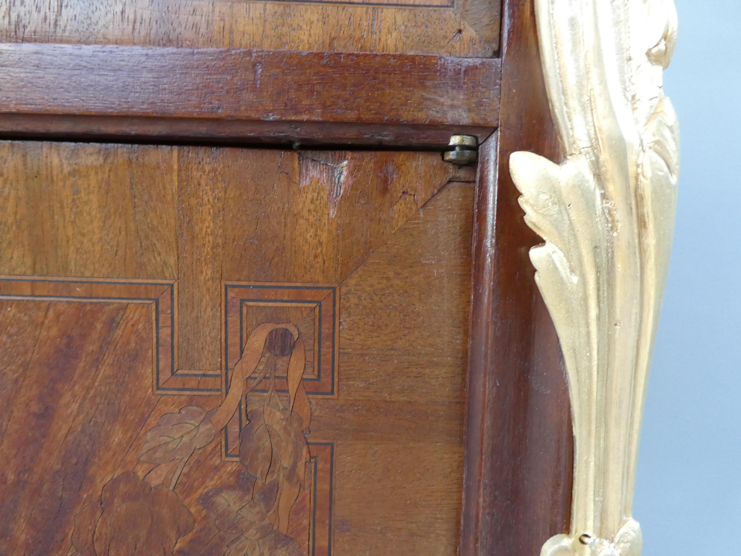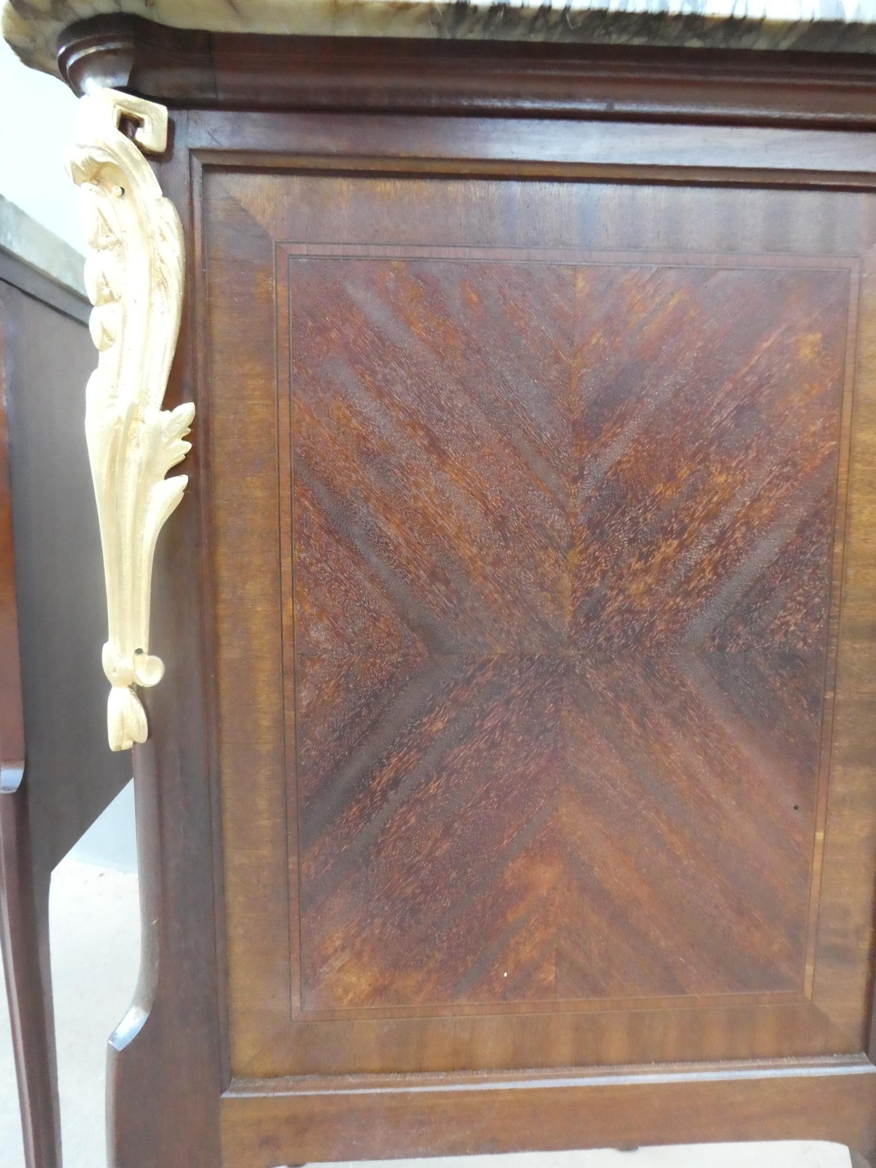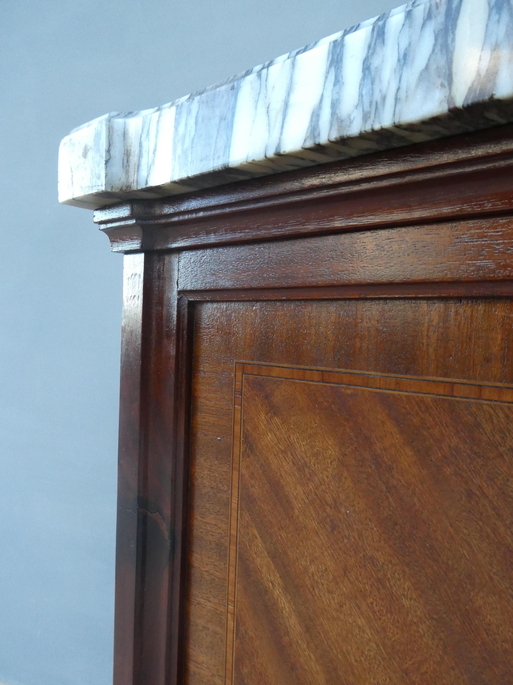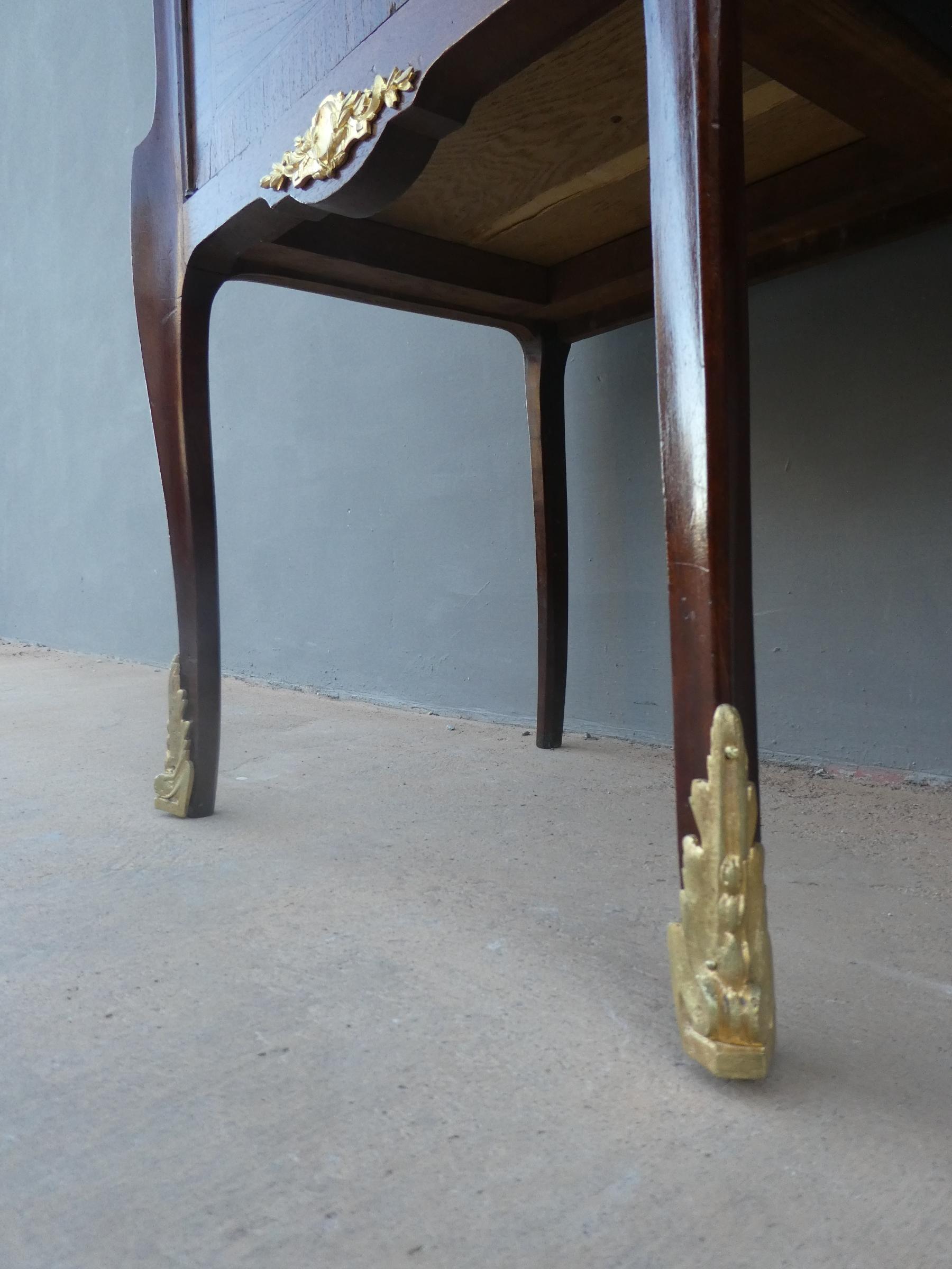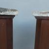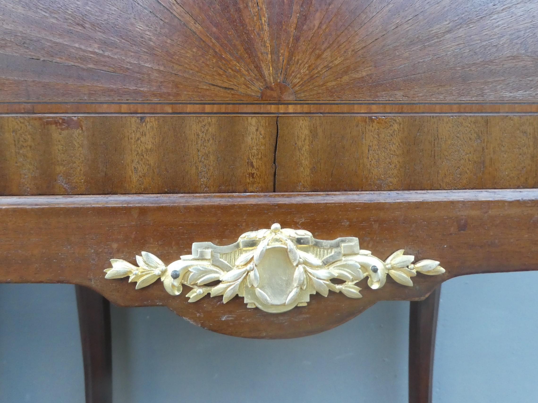 Coppia di comodini mobiletti in stile Luigi XV dotati di un’antina e un cassetto frontale, appartenenti d’epoca alla prima metà del ‘900. Eleganti ed armoniosi nella linea, ottengono il loro effetto decorativo grazie all’uso dai delicati intarsi/filetti, che spiccano contrastanti sull’elegante superficie in mogano che fa da sfondo, e delle lucenti applicazioni dorate che, oltre ad avere un scopo decorativo, hanno il compito di proteggere le parti più vulnerabili del mobile. Necessitano di qualche intervento di restauro (foto).