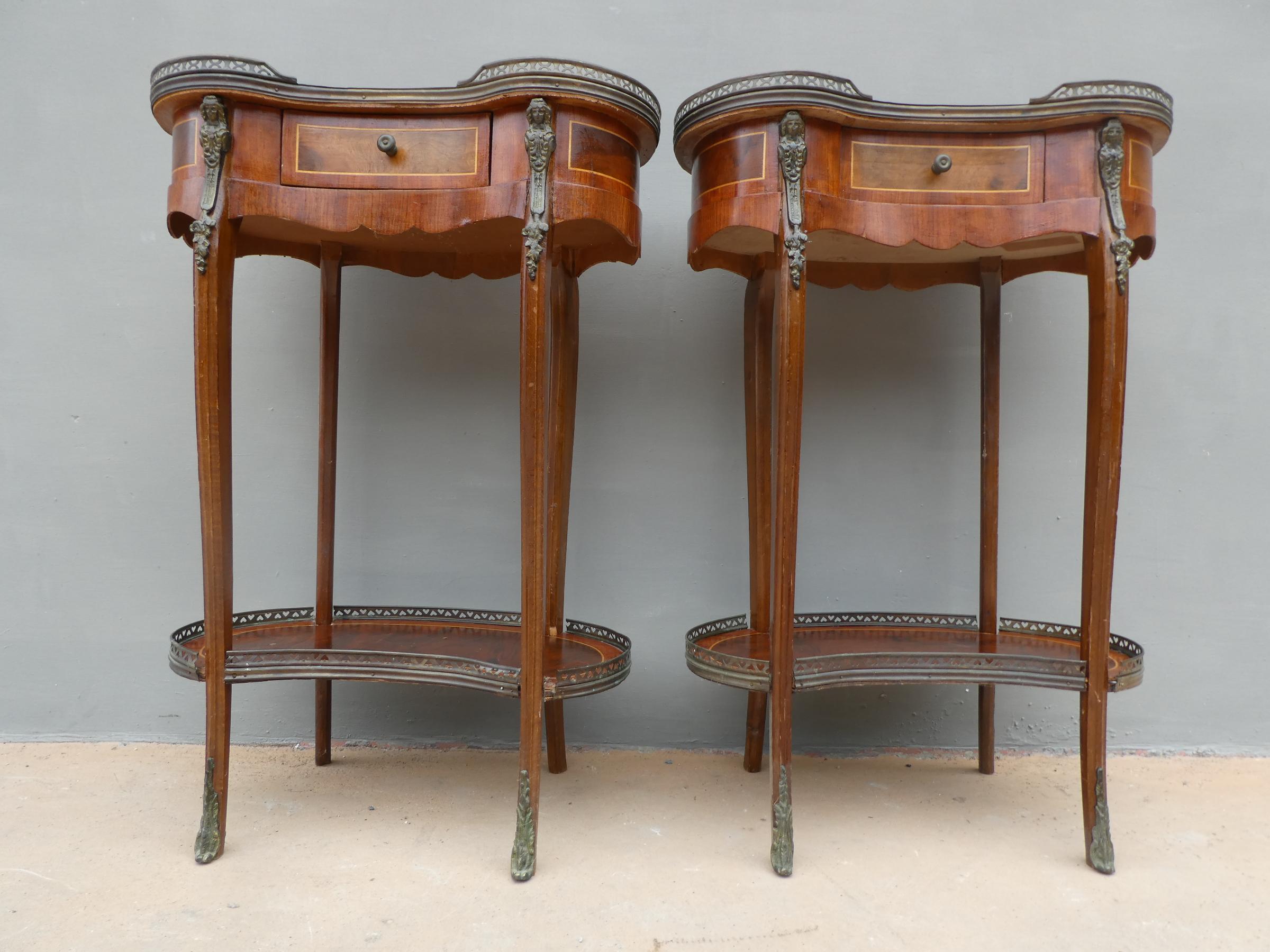 Coppia di comodini a fagiolo tavolini filettati con cassetto, ‘900!