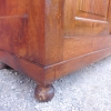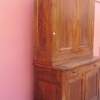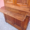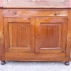 Credenza buffet doppia con alzata a due ante, impreziosita dai caratteristici pannelli ‘grissinati’, dotata di un cassetto centrale e di un’asse a sfilo estraibile, appartenente d’epoca alla metà dell’800. La struttura si presenta semplice e lineare, e vanta proporzioni sapientemente equilibrate. La ricerca di un decoro mirato si riflette anche sulla scelta d’utilizzare la noce, una nota essenza caratterizzata da fitte venature di tonalità più scura. Due piccoli pezzi di cornice sono stati rifatti nel tempo. Necessita d’interventi di restauro e sono presenti fori di tarlo.