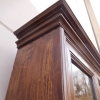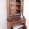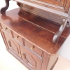 Credenza buffet doppio corpo con alzata a vetri e tre cassetti frontali, realizzata in legni misti, appartenente d’epoca alla fine dell’800. La semplicità della struttura, dove il senso della misura viene rigorosamente rispettato, è il risultato di una sobria eleganza. La ricerca di un decoro essenziale si rispecchia anche sulla scelta dei montanti, privi di elementi decorativi. Dispone di ripiani interni. Divisibile in due corpi (base + alzata). Necessita di alcuni interventi di restauro e sono presenti fori di tarlo.