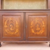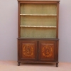 Libreria mobile con alzata a giorno e vetri laterali, particolari dimensioni, epoca fine ‘800. La struttura si presenta semplice e lineare, e vanta proporzioni sapientemente equilibrate. Ciò che la contraddistingue, oltre a creare un forte impatto decorativo, sono i delicati dipinti che risaltano contrastanti sulla scura superficie laccata che fa da sfondo. Necessita di alcuni interventi di restauro – le antine inferiori sono attualmente chiuse e non dispone di chiave.