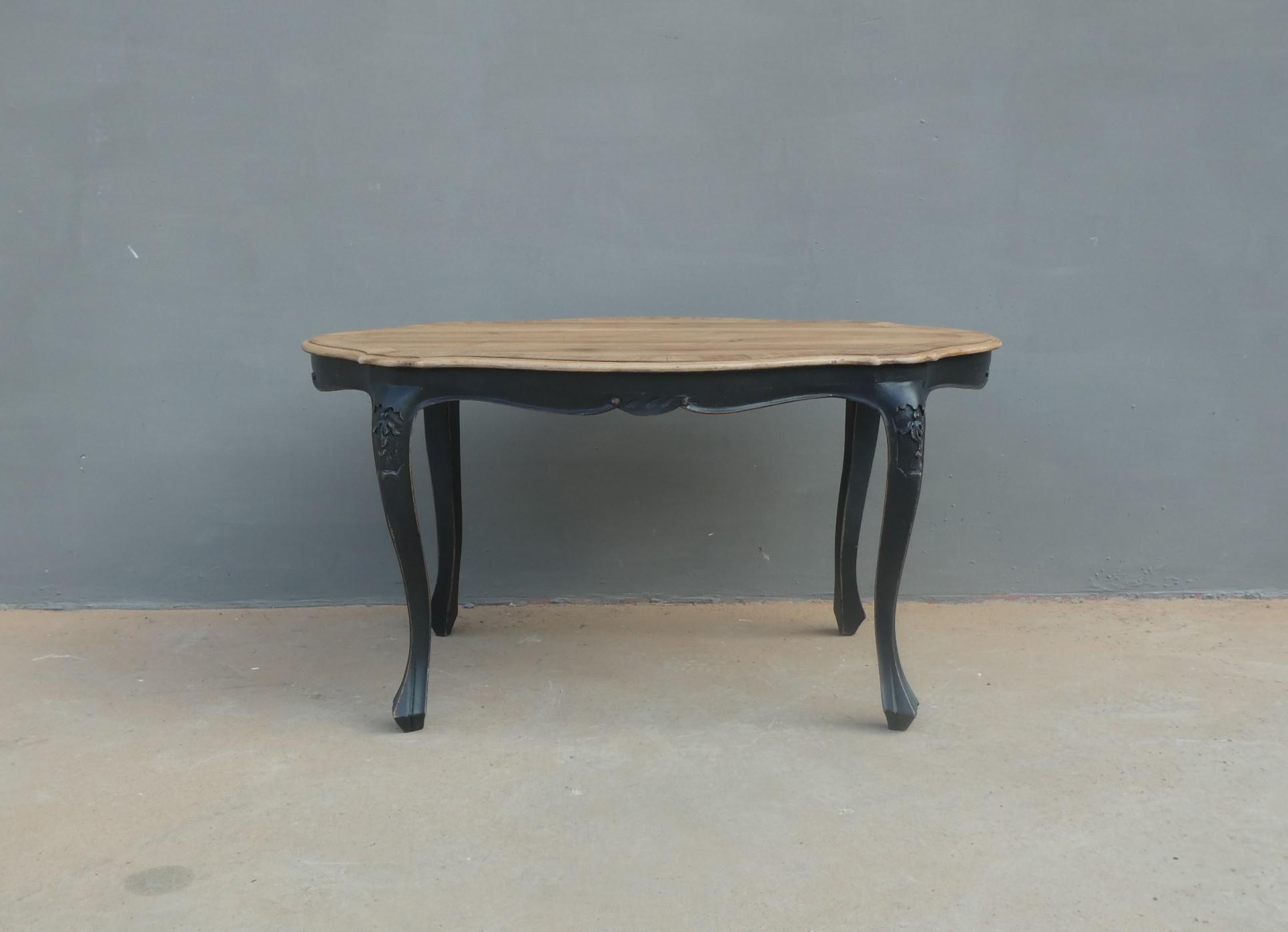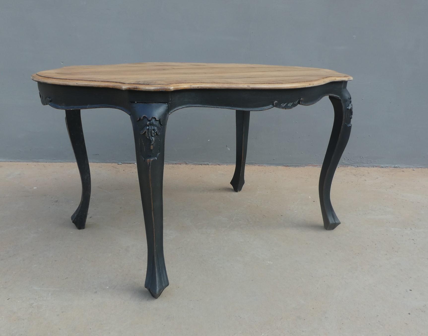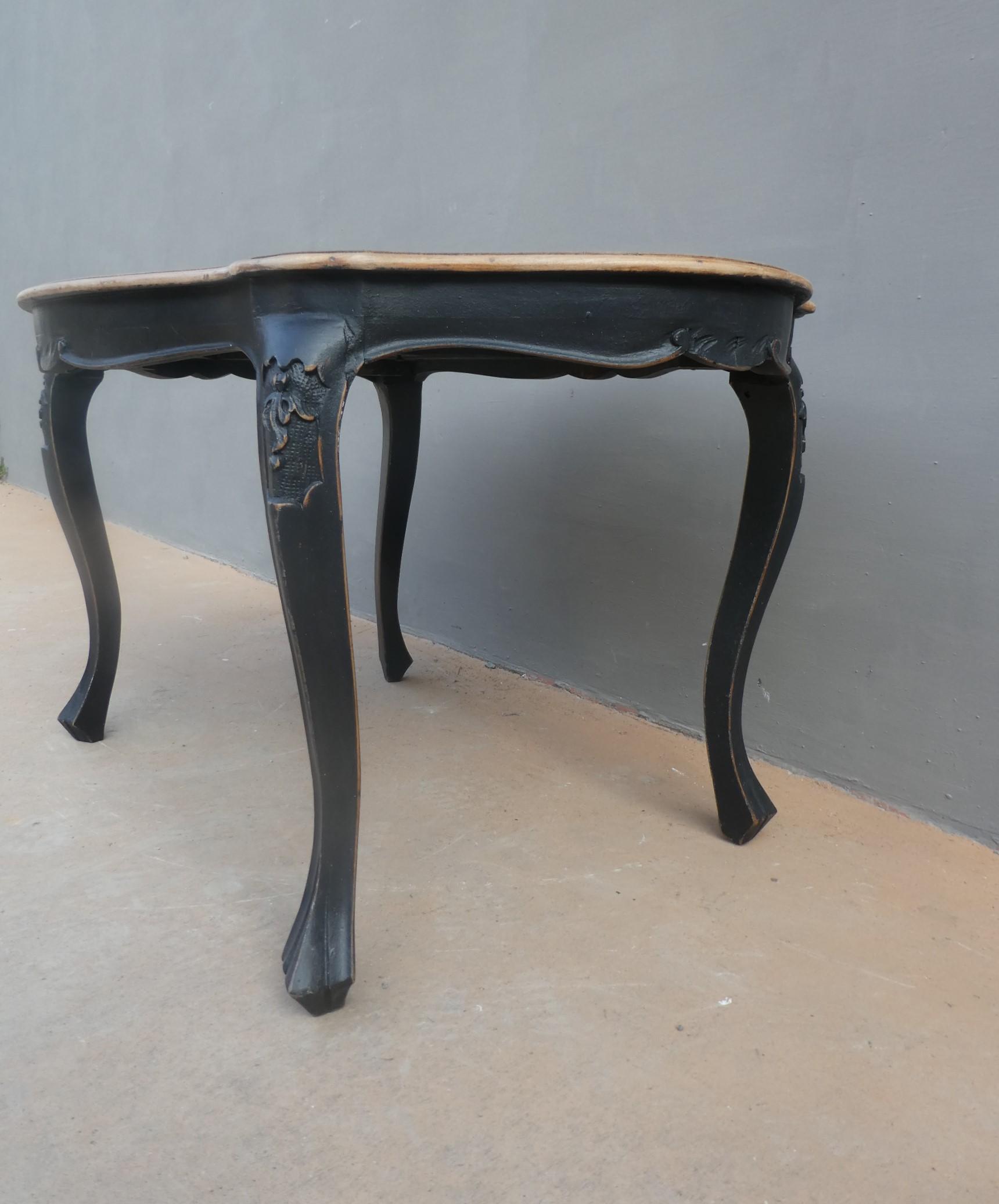 Tavolino basso da salotto st.provenzale, laccato e rifinito con la tecnica “Shabby Chic”. Ciò che rende elegante ed originale questo mobiletto, è il contrasto dato dalla lacca scura utilizzata per il cavalletto delle gambe, con il piano impiallacciato a noce, lasciato a legno, ed impreziosito con delicati filetti. Epoca metà ‘900.