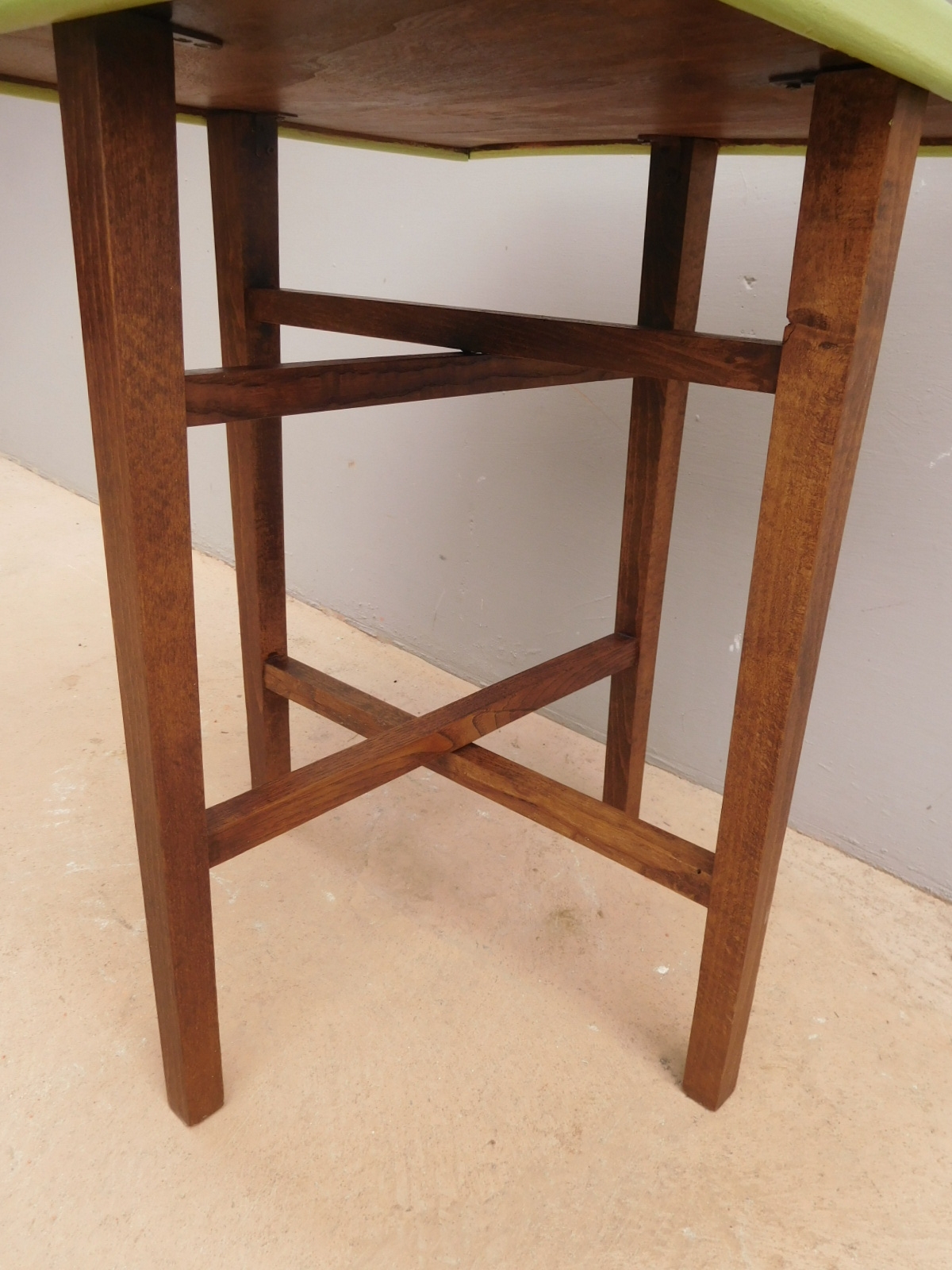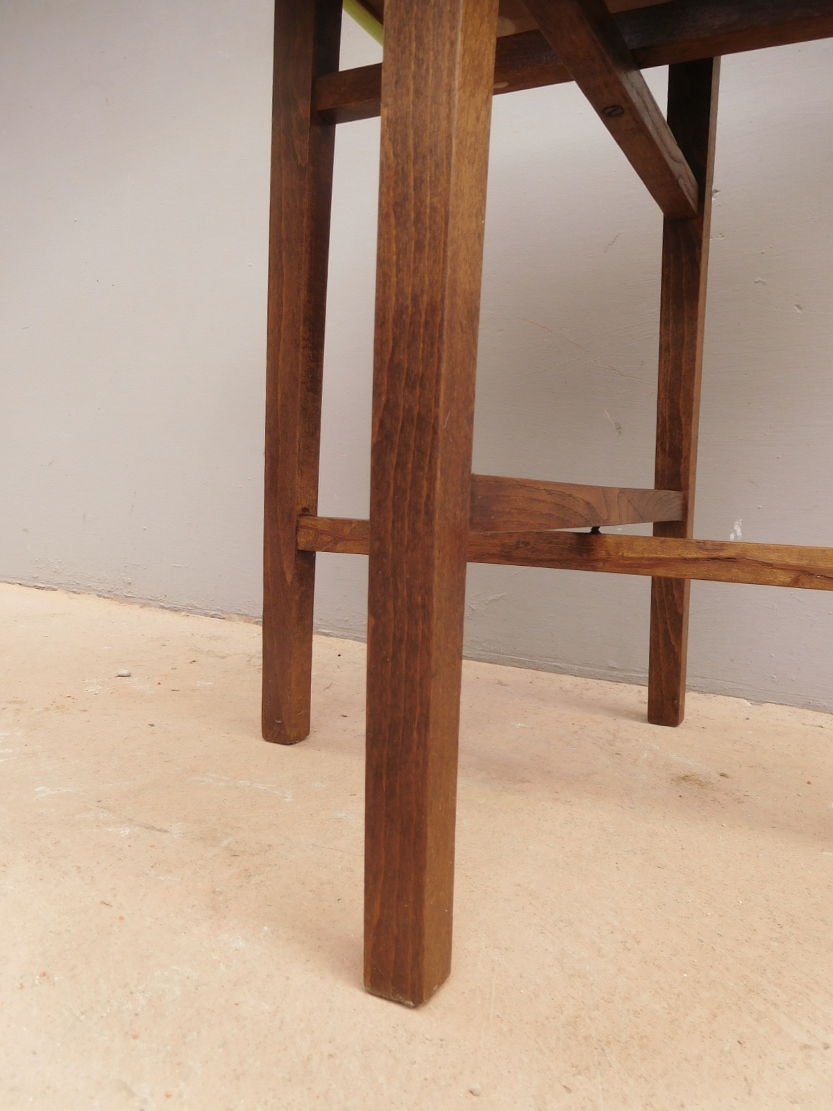 Tavolino etager quadrato con ripiano d’appoggio (recentemente) laccato. Questo genere di mobile è caratterizzato da geometricità e grande leggerezza. La struttura, infatti, sorretta da quattro lineari montanti in legno, e priva di decorazioni, si presenta semplice ed essenziale. Epoca seconda metà ‘900 – modernariato anni ’60.
