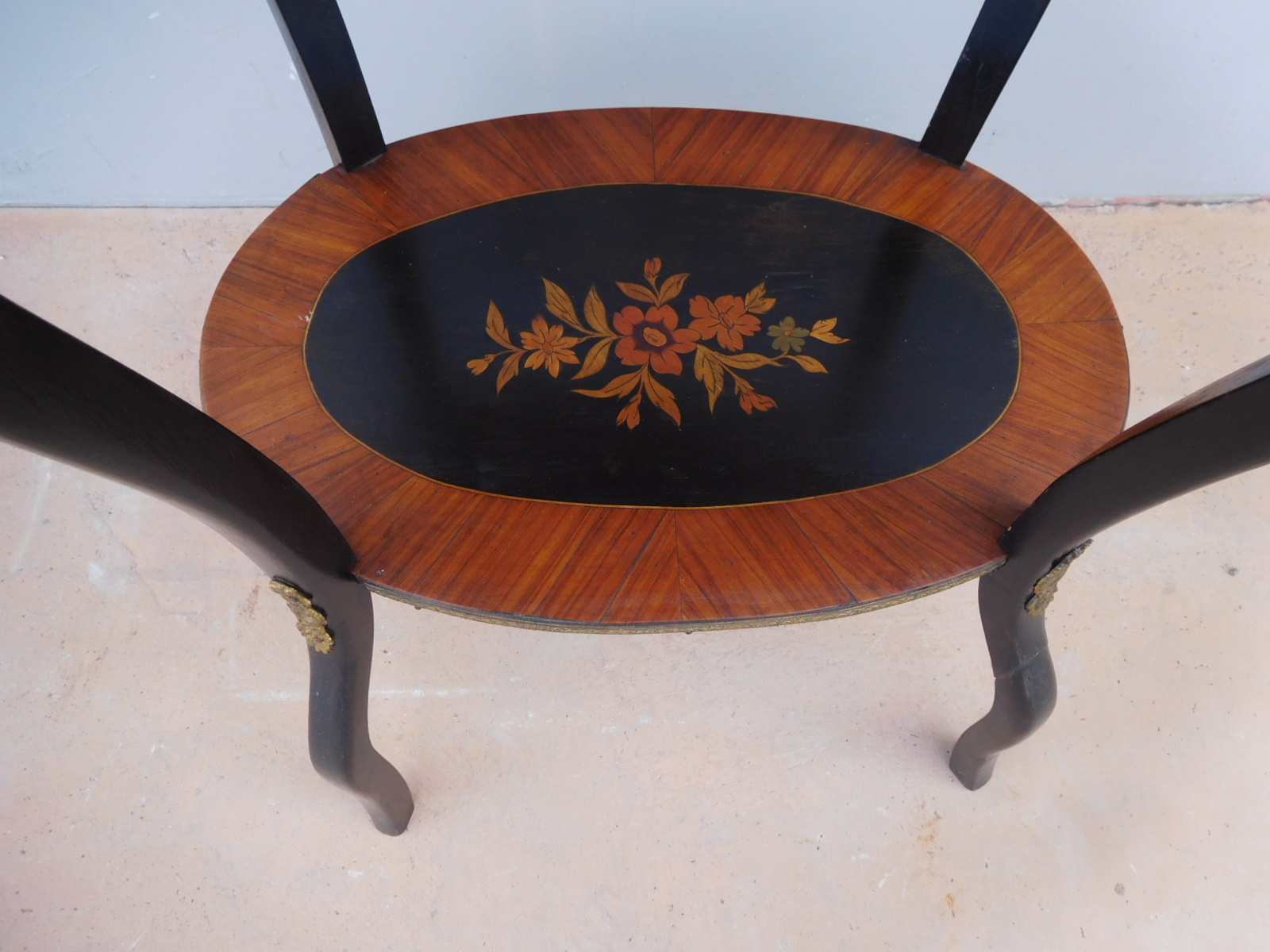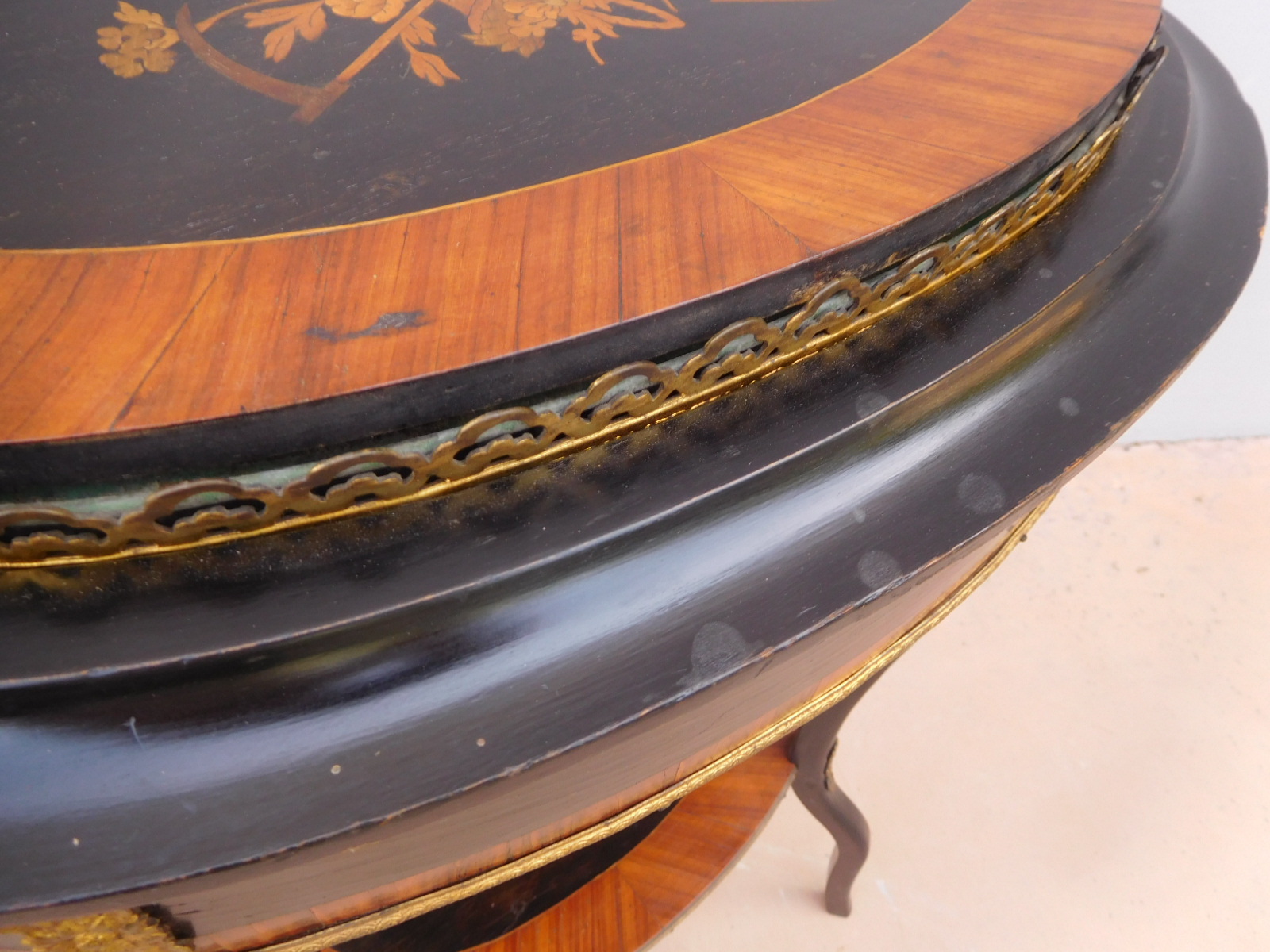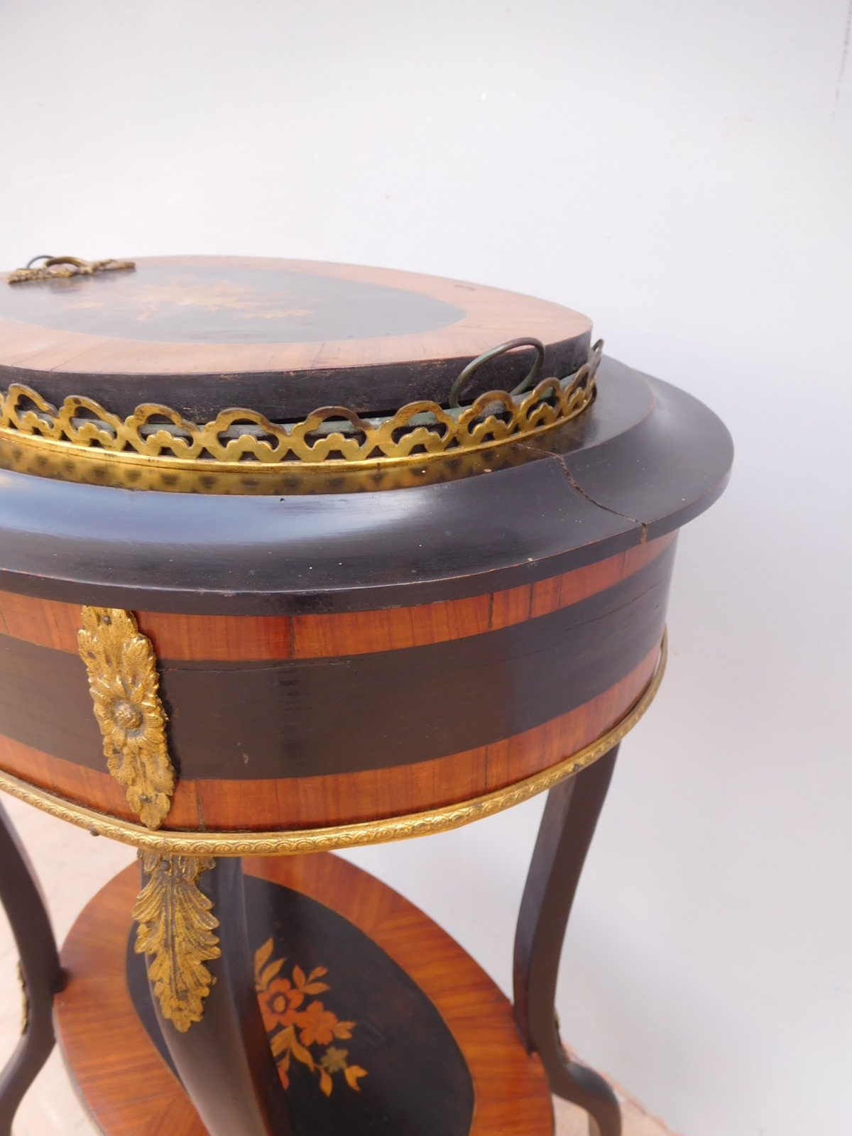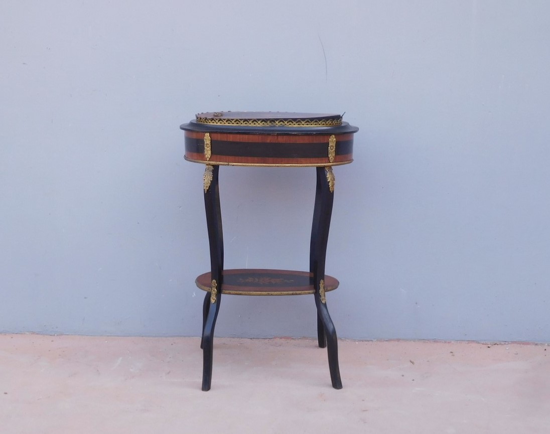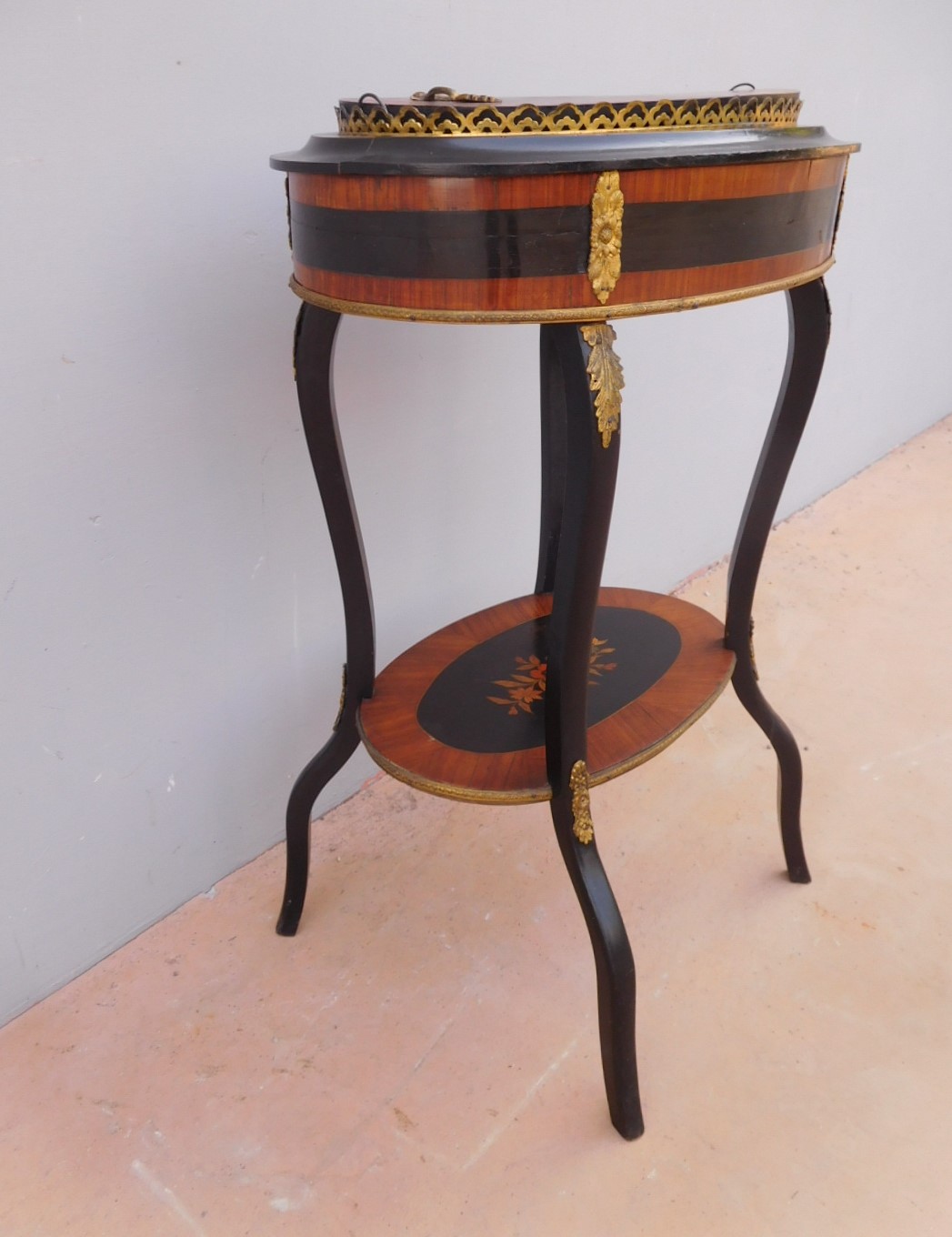 Tavolino fioriera ovale con piano apribile Napoleone III intarsiata, fine ‘800!