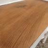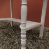 Tavolino toilette con cassetto frontale, maniglie laterali, laccata e rifinita con la tecnica Shabby Chic che prevede l’uso di colori chiari e colori più scuri che affiorano dopo il trattamento di usura, francese. Ciò che rende elegante ed originale questo mobile, è il contrasto creato dalla lacca bianca utilizzata per il corpo, con quella del piano in noce, lasciato a legno. Rifinita sul retro. Sono presenti piccoli fori di tarlo. Epoca fine ‘800.